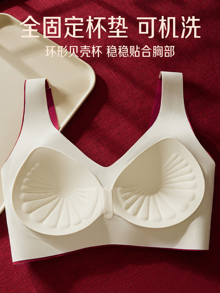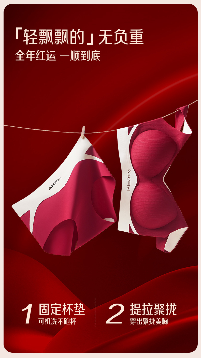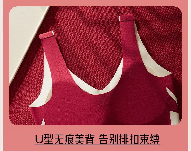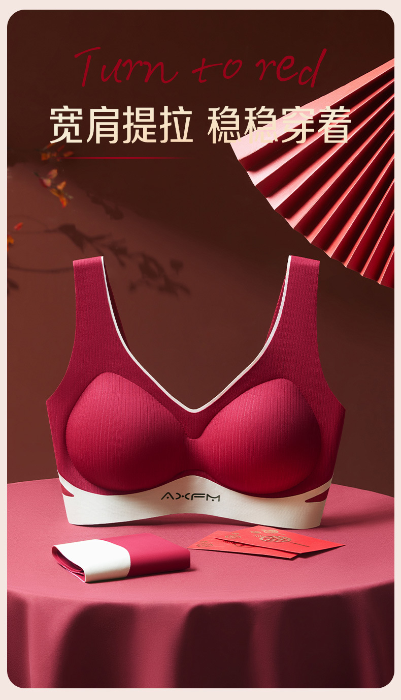 【红运红❗️本命年内衣套装,】幸运波尔多红,3D立体罩杯圆润力挺,柔软细腻不扎肤,U型美背贴身不露痕迹,生姜精华油暖身蓄热持续,固定杯新款无痕软支撑文胸内裤套装女宽肩背心QQ