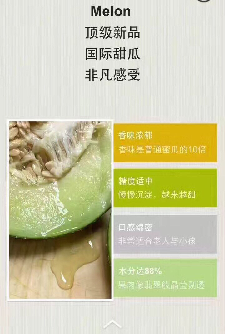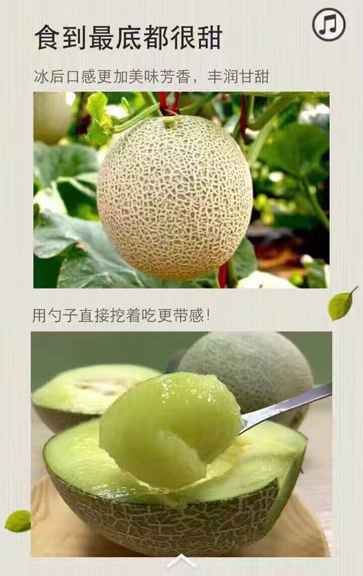 每颗玫珑瓜都经过了漫长成熟期!从开花授粉 到瓜熟蒂落,通过一天天的阳光雨露,积累下来了大量糖分和汁水。水分高达88%的牛3蜜瓜比普通蜜瓜/玫珑瓜更香甜。果肉如翡翠般晶莹剔透,蜜甜软糯 汁水丰盈 果肉绵密,满足你对甜蜜的不将就,香甜的果汁汩汩而出 ,滋润了你每一寸疲惫的心田!![]()