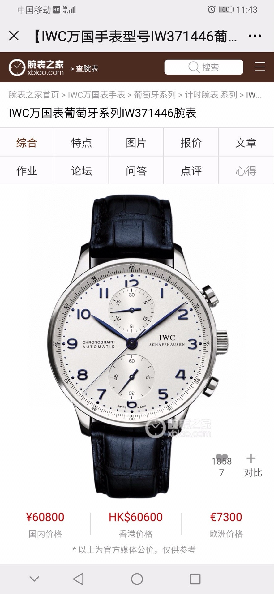 万国IWC葡萄牙系列计时机械腕表,葡萄牙计时码表属于万国经典表款中前五的存在。外观设计上典则俊雅,表壳大小与厚度尺寸也都适中,因此葡计成为了诸多表迷梦寐以求的表款