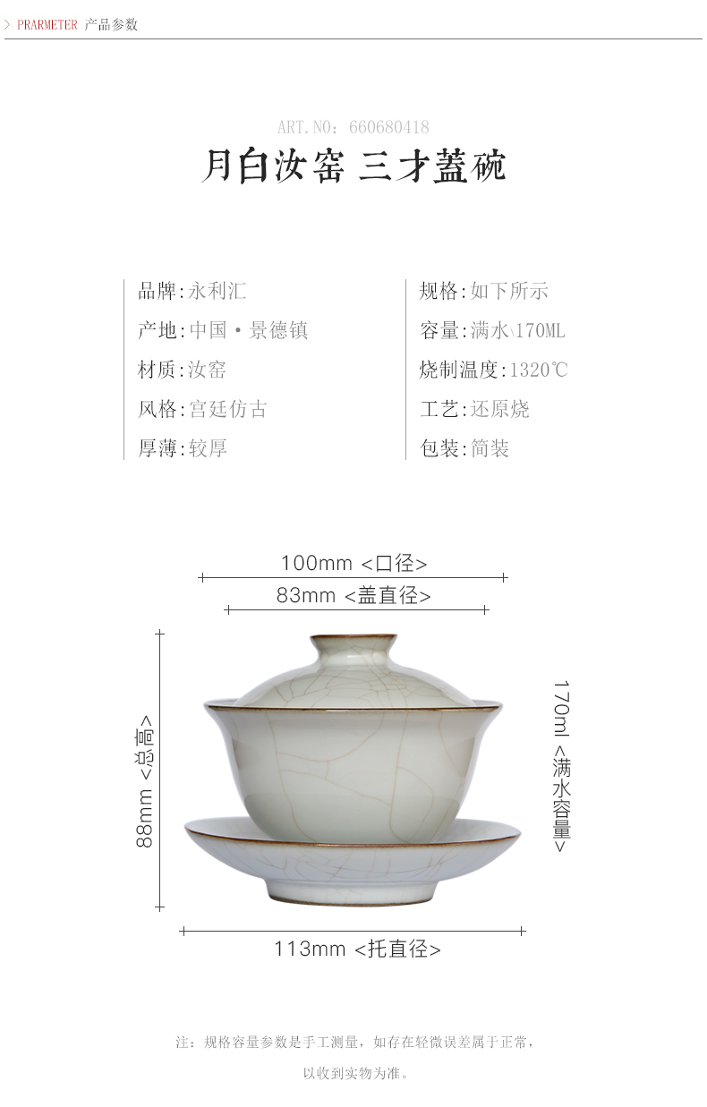 永利汇单个盖碗三才茶碗中号功夫泡茶杯茶器陶瓷景德镇茶具大号