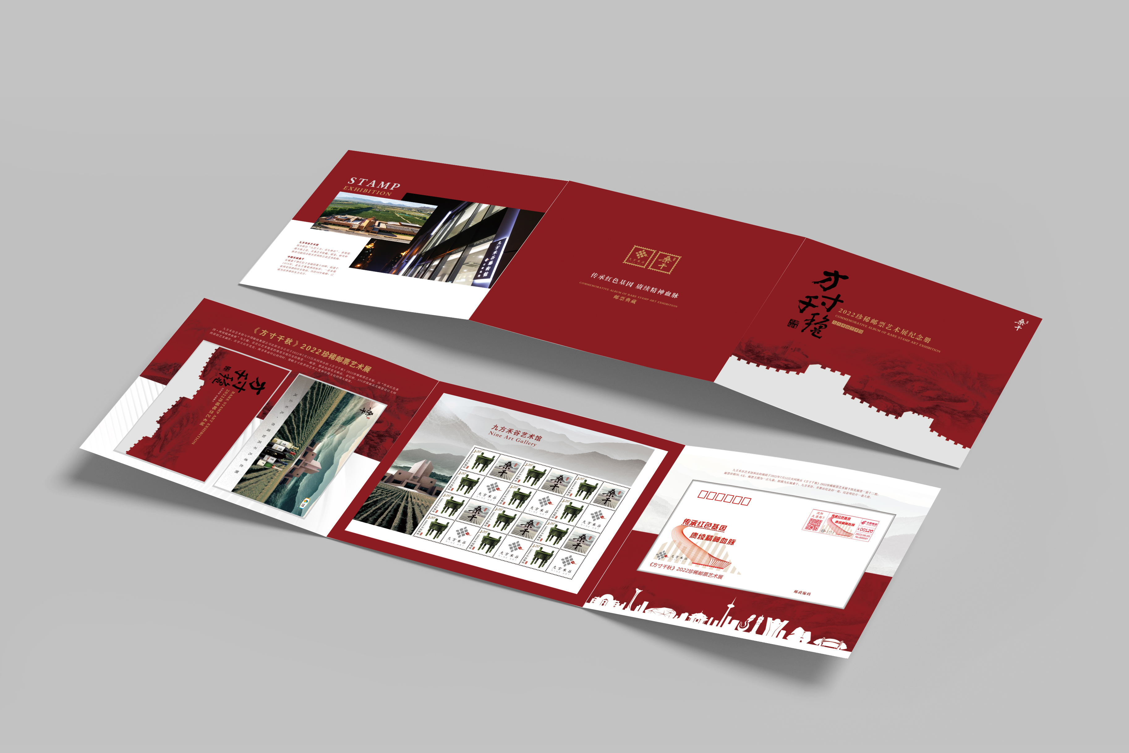 《方寸千秋》2022珍稀邮票艺术展个性化邮票纪念册,并提供活动过程中数枚当天日戳、机戳和纪念戳,可用来制作首日纪念封片。
