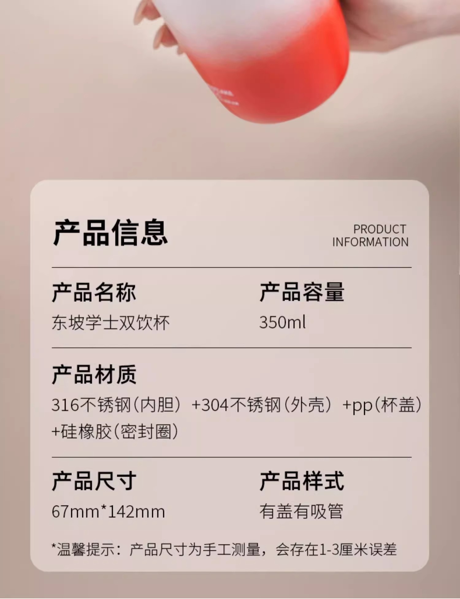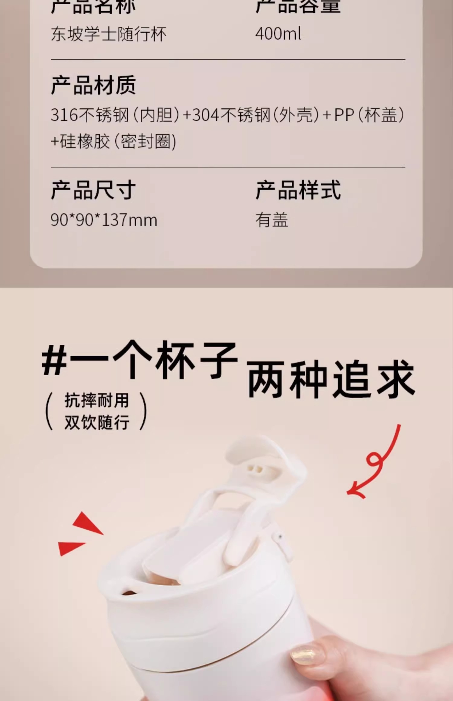 杭州西湖 东坡学士随心杯 控温保冷 400mL