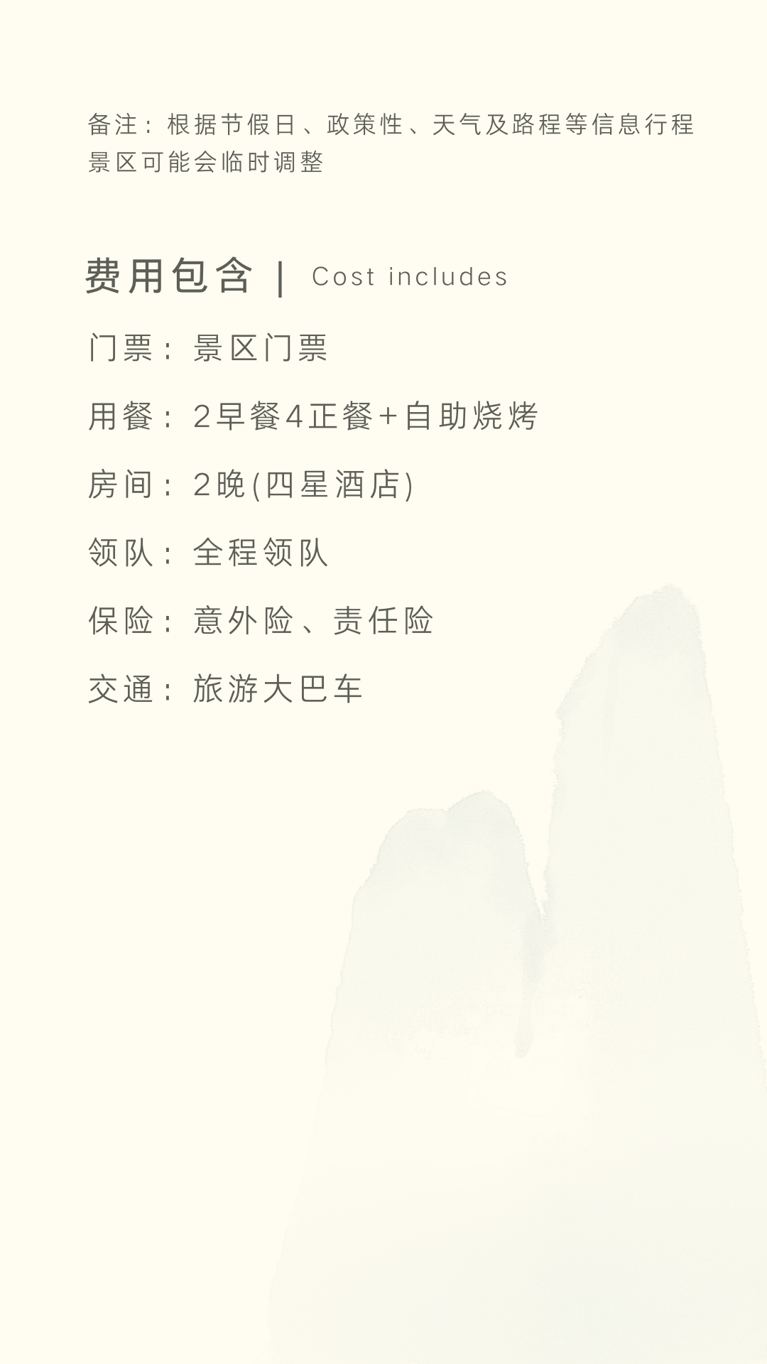 备注:为节约接驳时间不满10人的上车点会被取消,若满10人可以添加上车点(联系客服添加);活动前一天客服会通知最终上车点和准确上车时间。