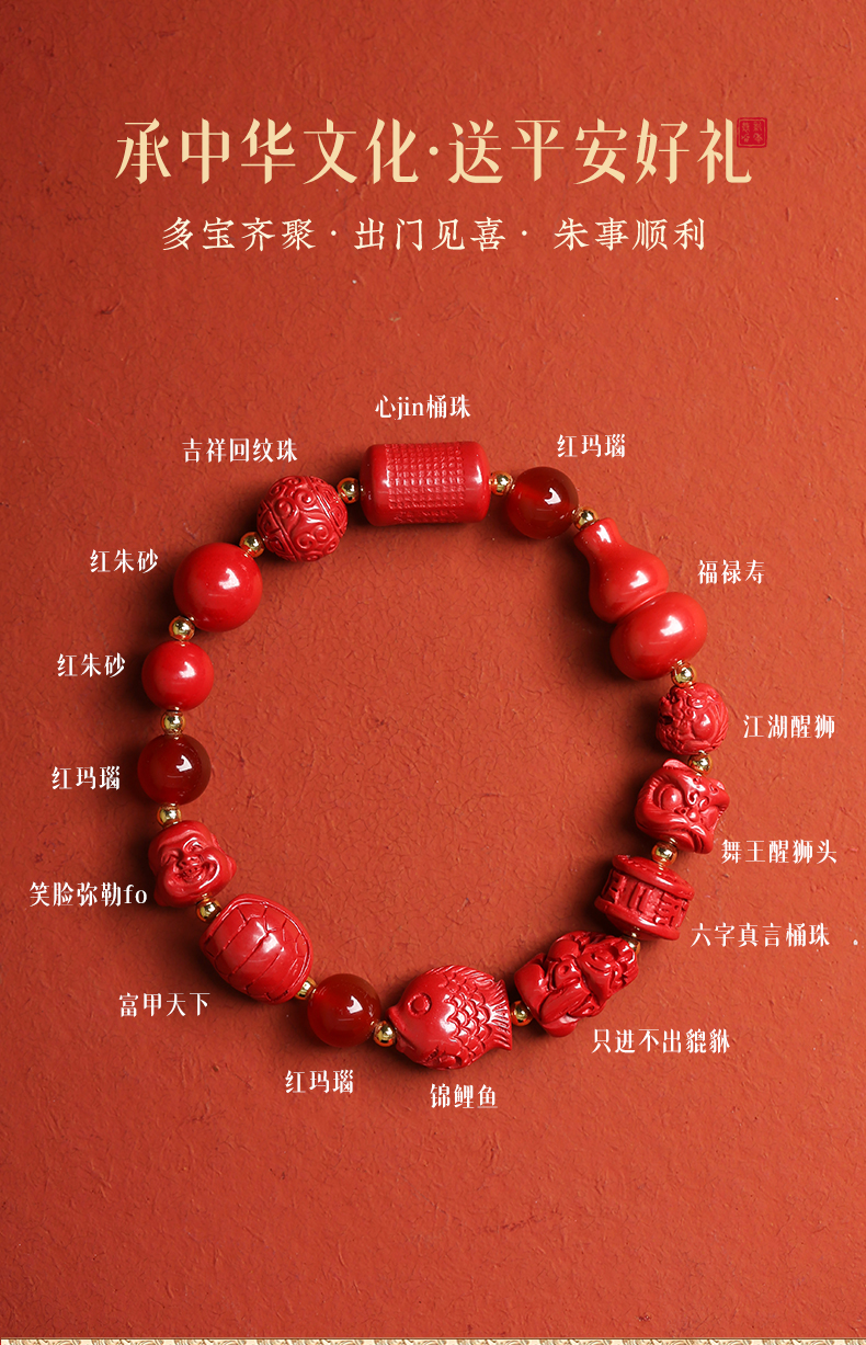 【本店力荐】十方圆满帝王砂多宝手串 女朱砂吉祥物貔貅手链
