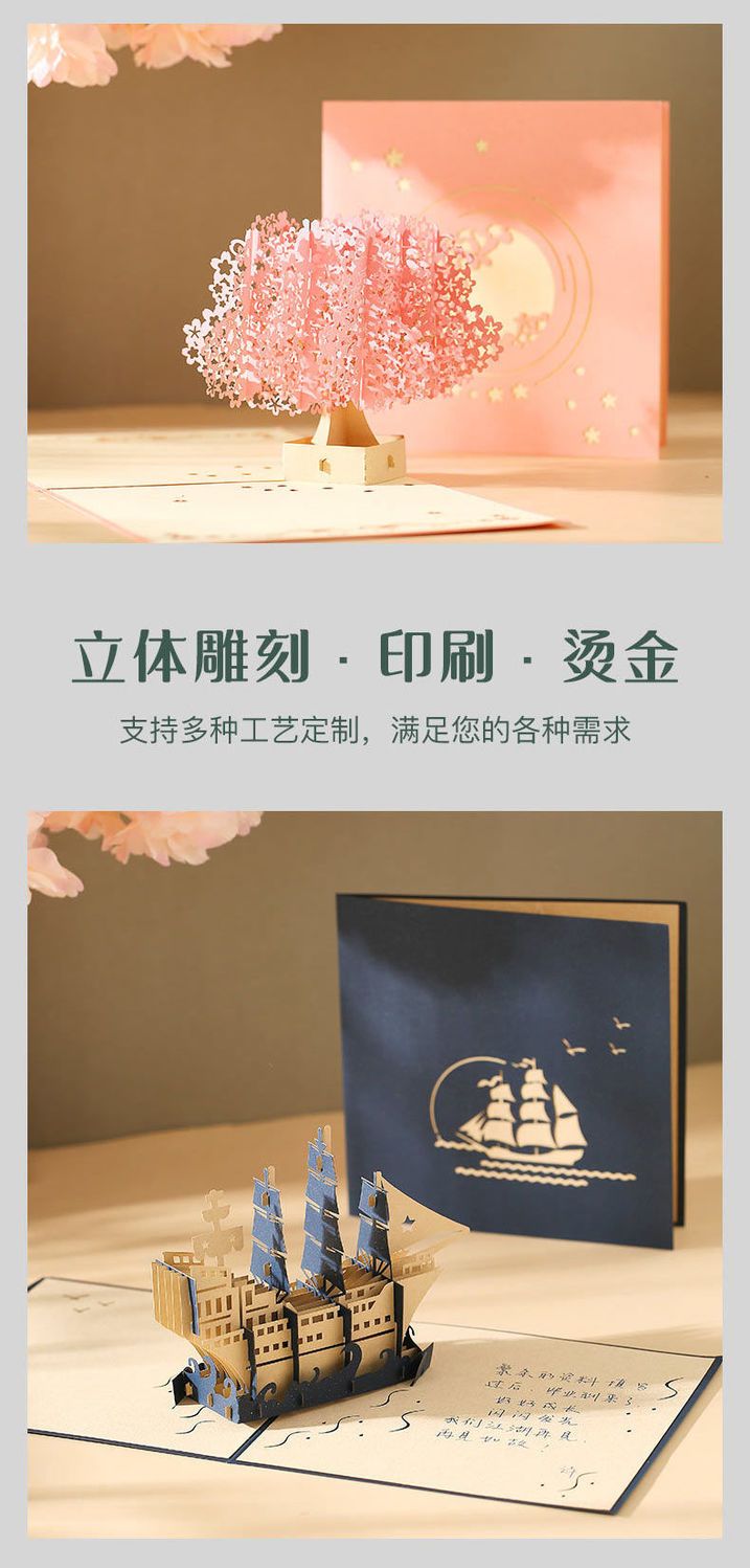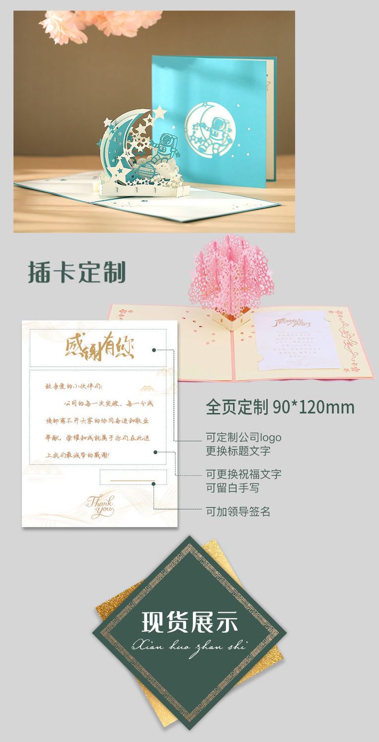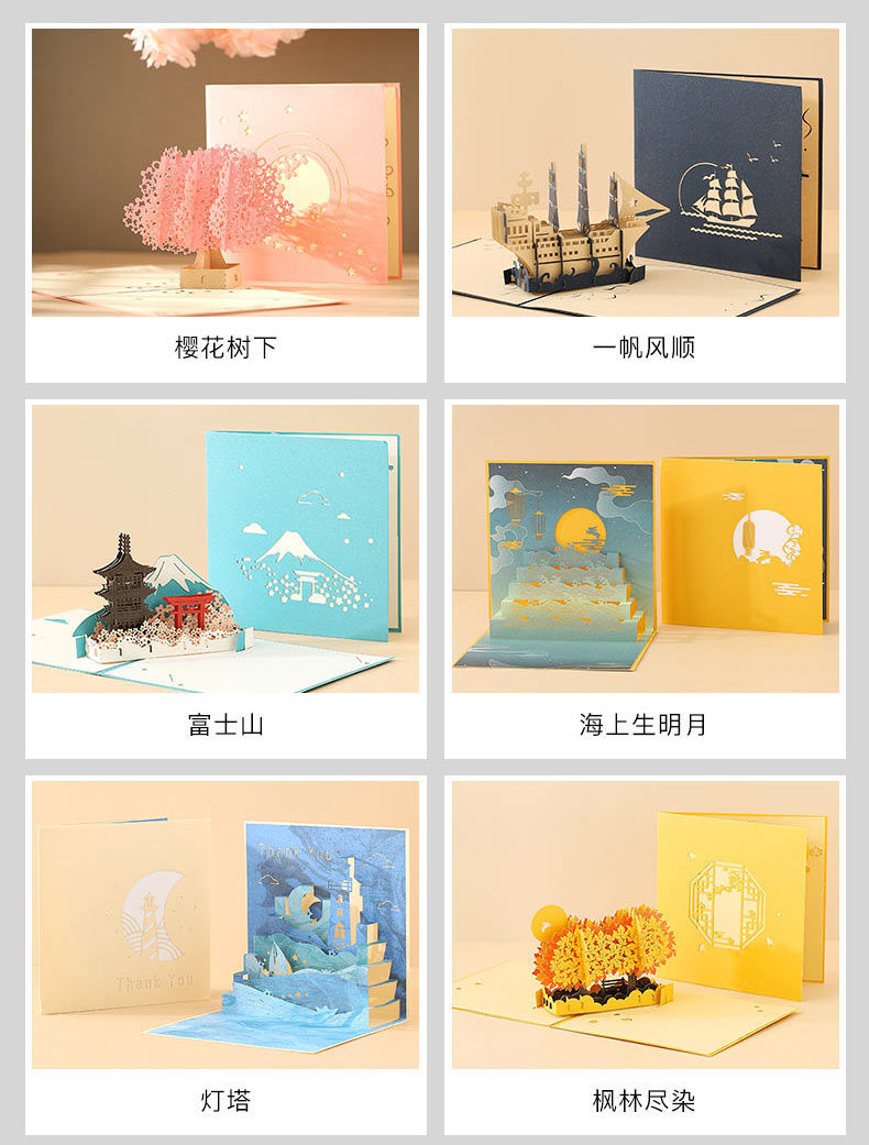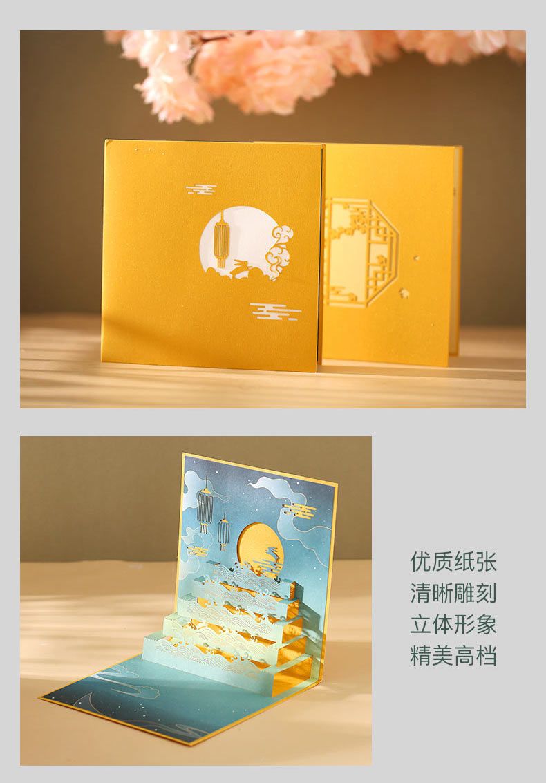 中秋节3D高档立体贺卡生日礼物手工diy材料包自制礼物折叠送老师