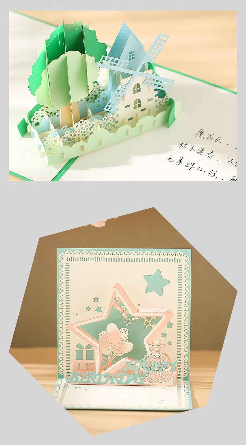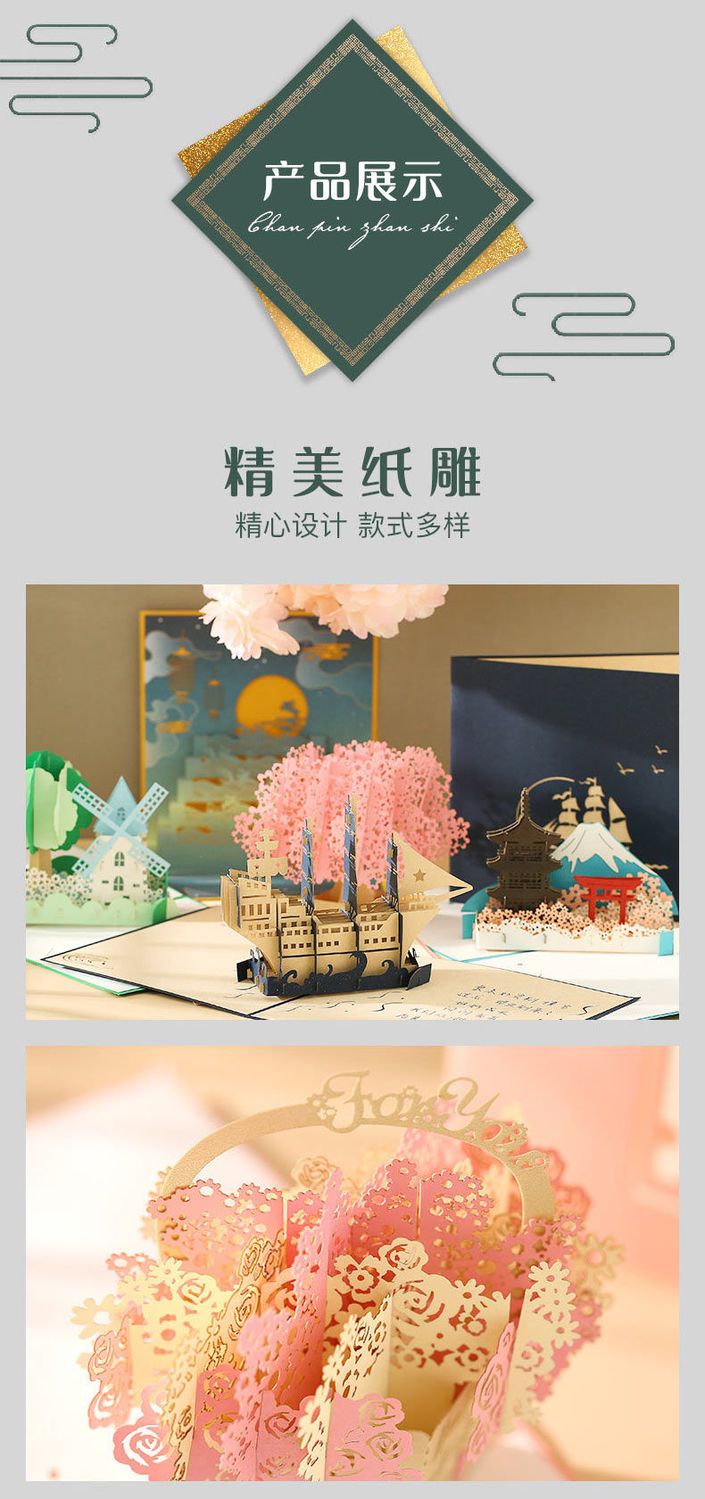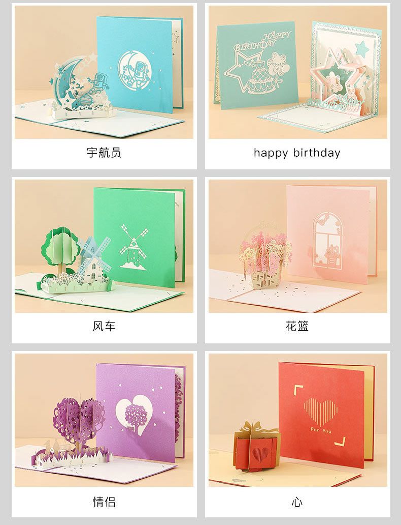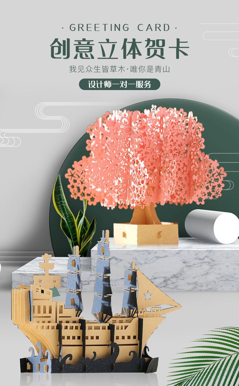 中秋节3D高档立体贺卡生日礼物手工diy材料包自制礼物折叠送老师