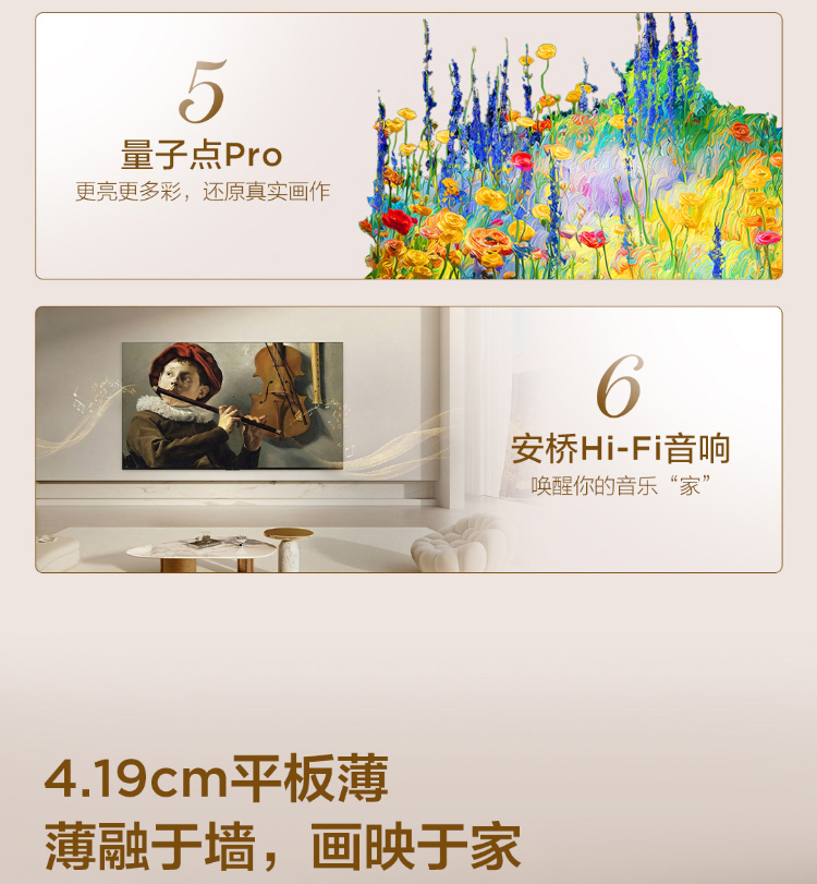 【新品上市】TCL艺术壁纸电视 85T6M 85英寸 4.19cm平板薄 轻盈家居美学 QD-Mini LED 全通道360Hz超高刷