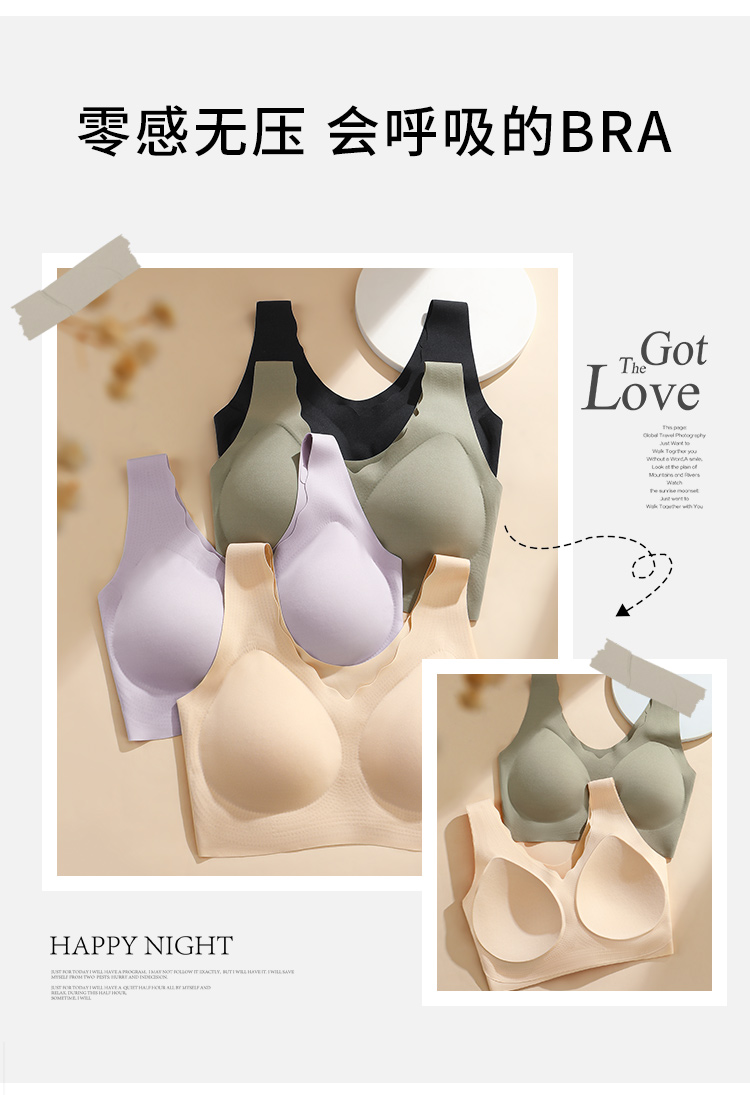 【下架】【109元2件】【背心运动内衣】裸感无痕收副乳防下垂舒适文胸罩 月朦海棠【小胸-光面】