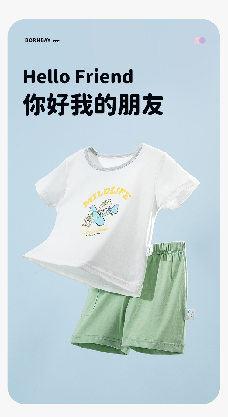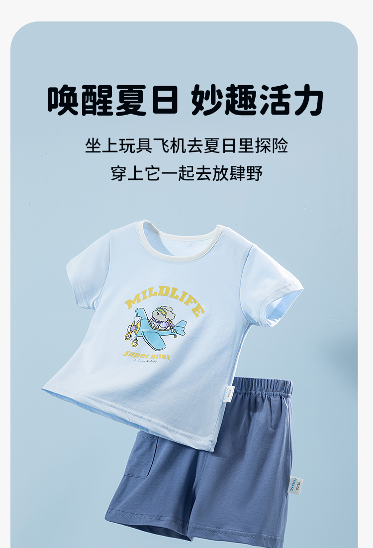 贝贝怡童装男童休闲套装夏季2024新款宽松透气t恤短裤两件套夏装ZB2DT083
