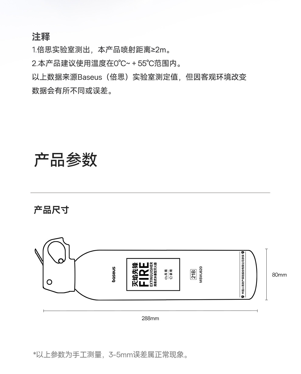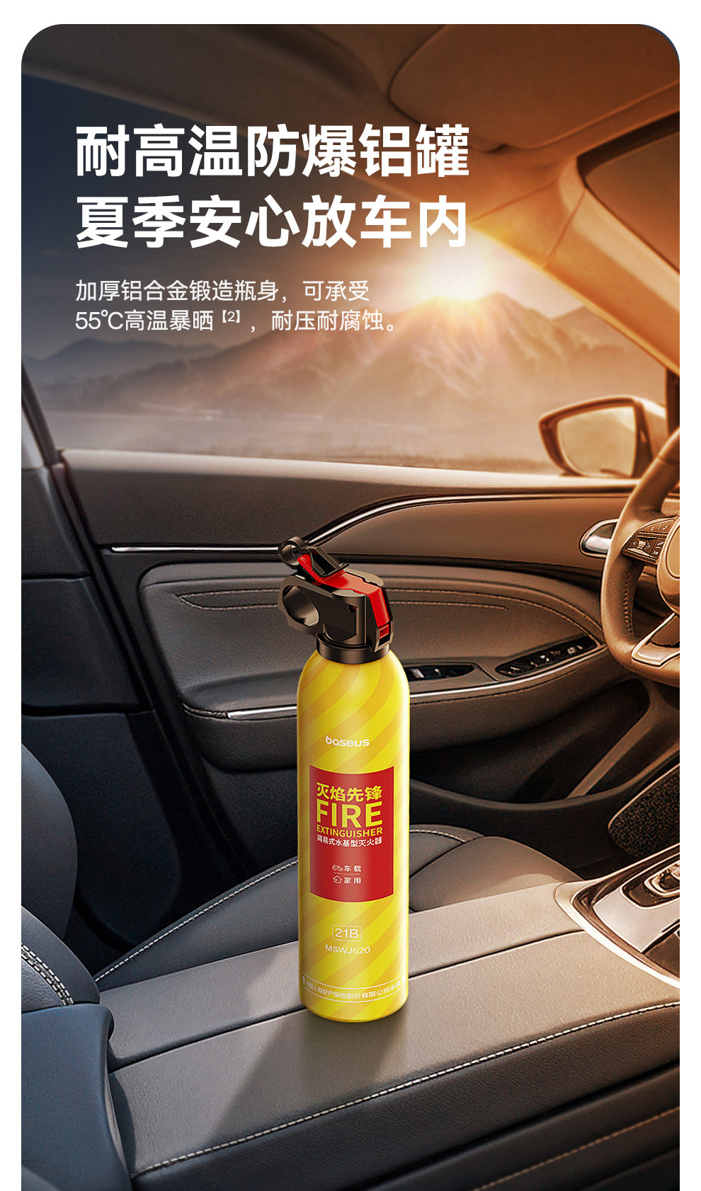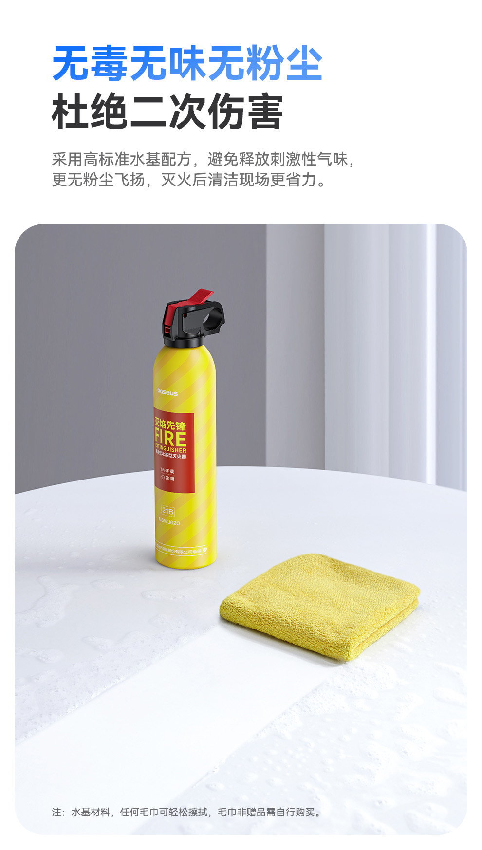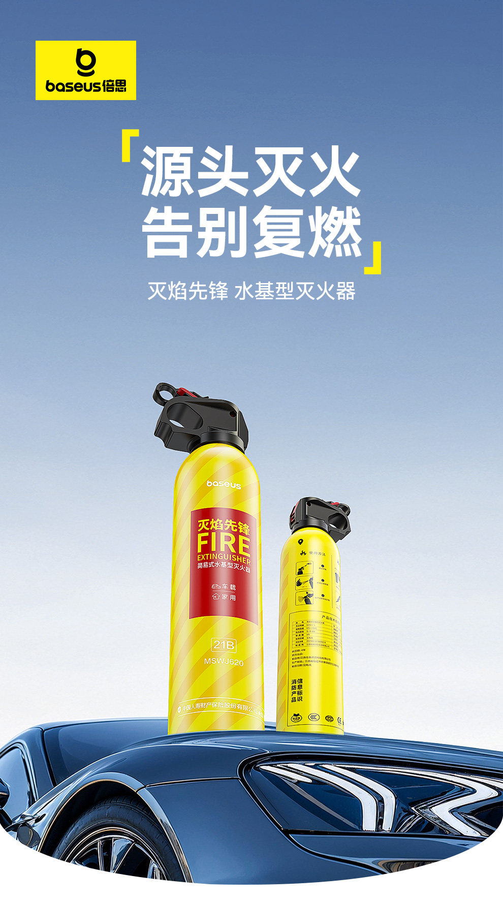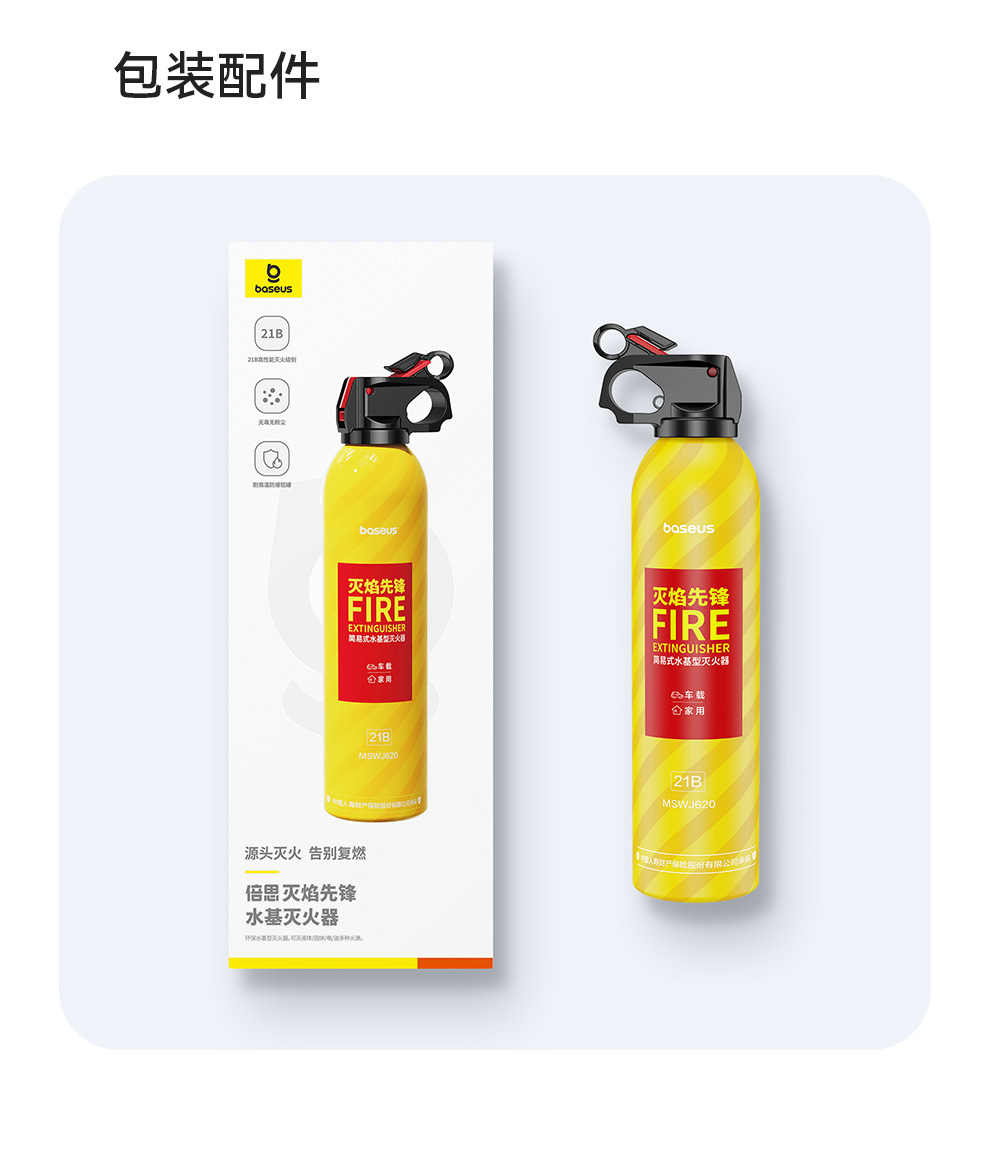 【69元3件】倍思 灭焰先锋 水基型灭火器 鲜柠黄