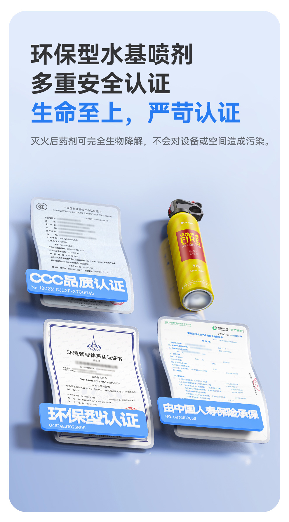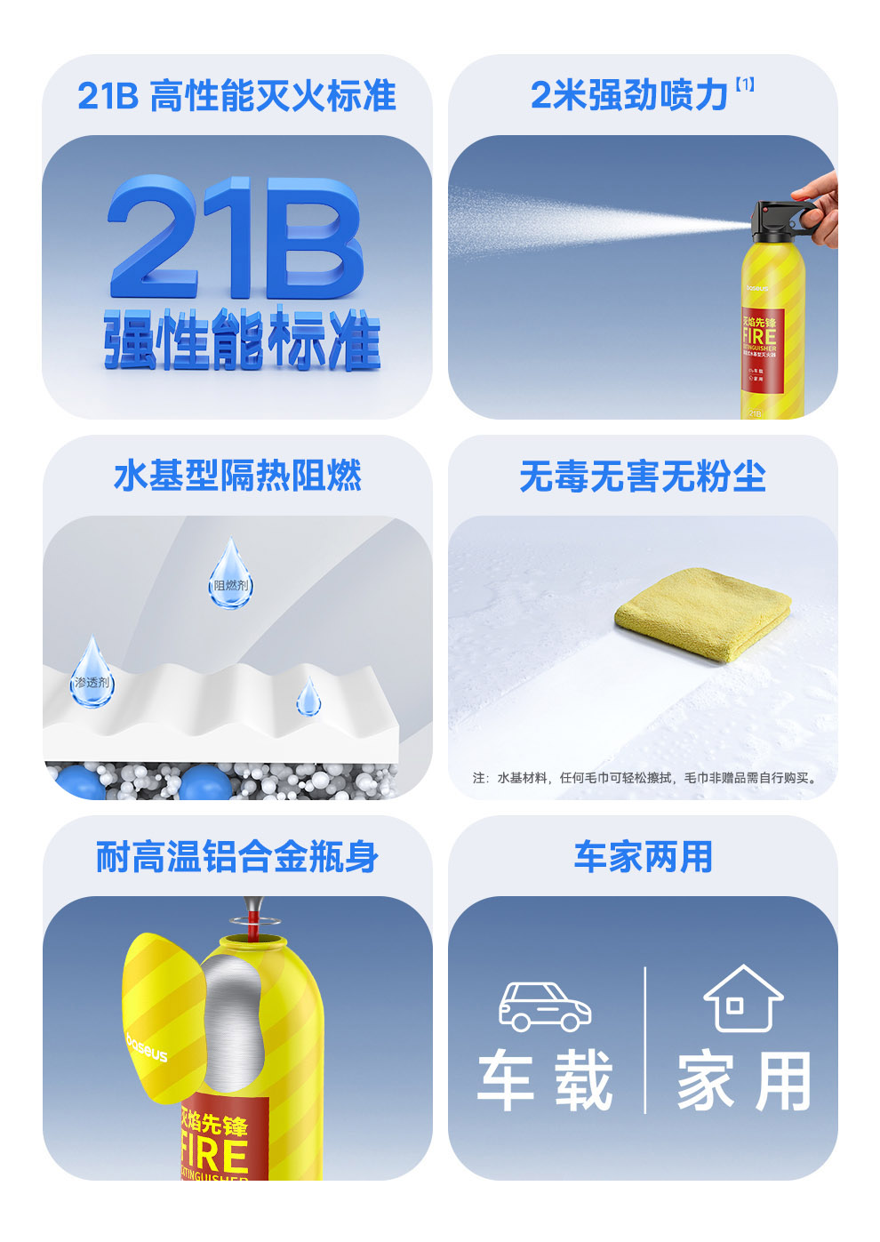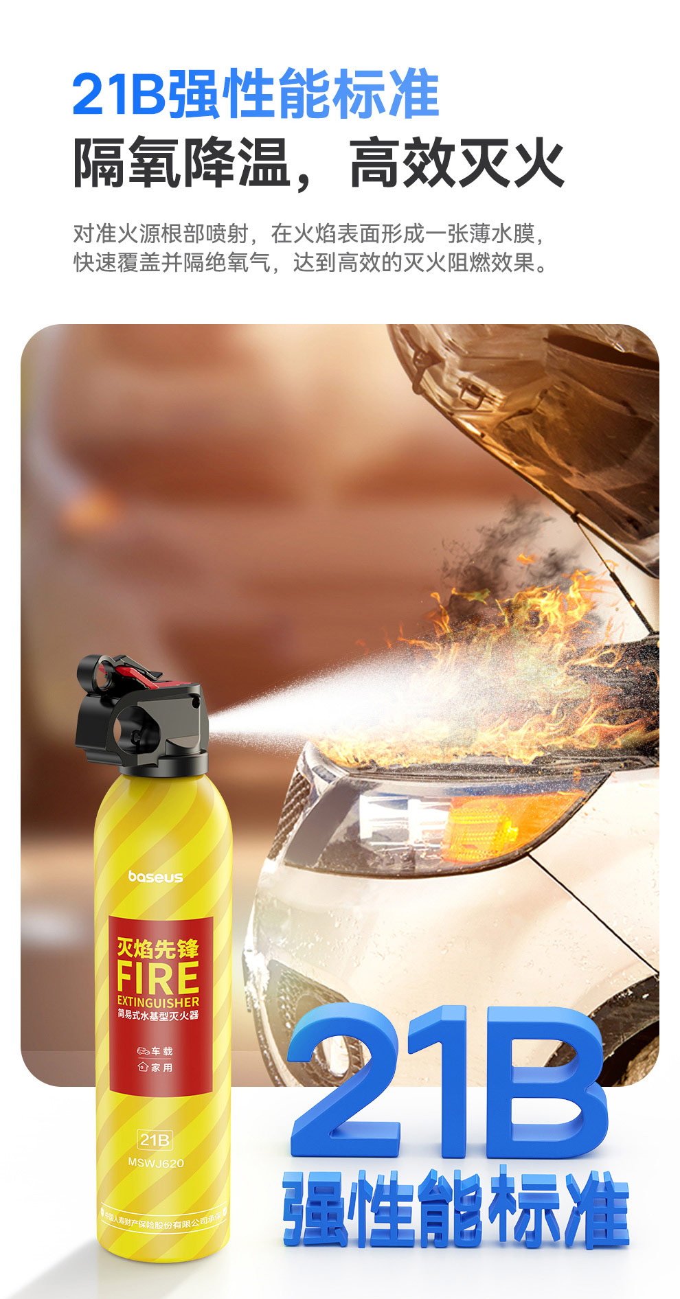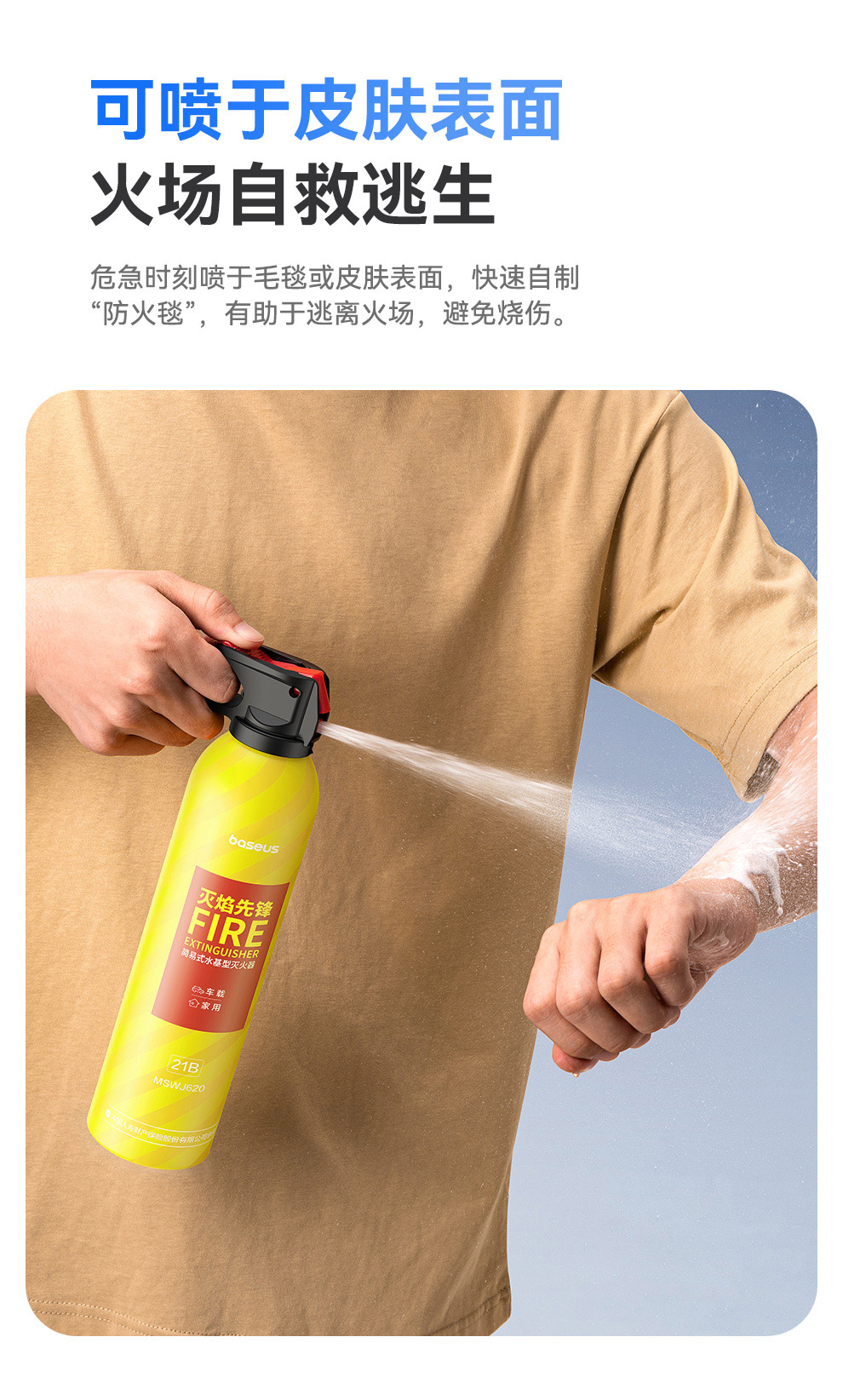 【69元3件】倍思 灭焰先锋 水基型灭火器 鲜柠黄