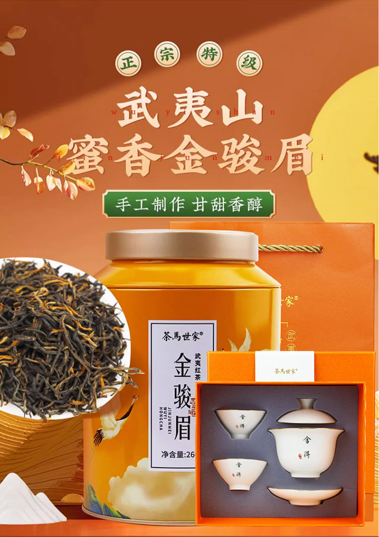 茶马世家 浓香型金骏眉 武夷山 特级 260g 礼盒装(配舍得茶具1套)
