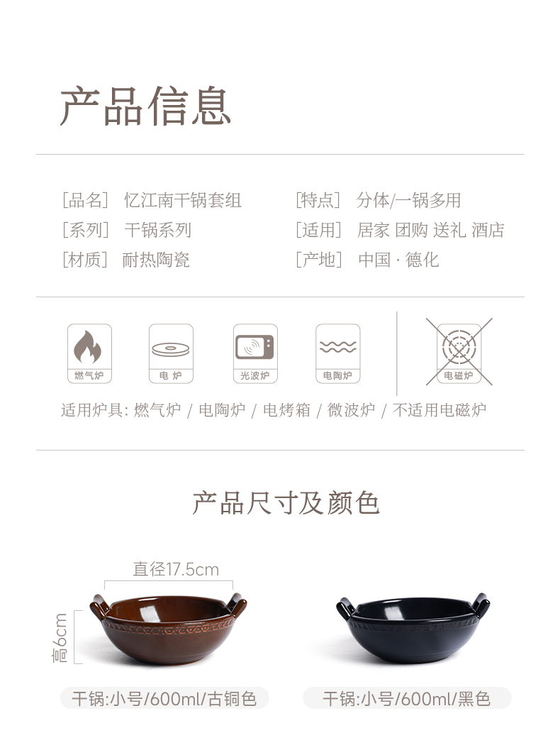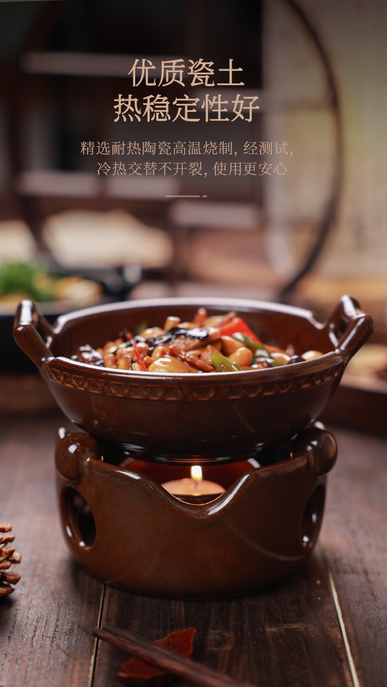 【忆江南干锅套炉】陶煲王耐热陶瓷砂锅干锅饭店干煲酒精炉小火锅家用一人食拌饭煮面