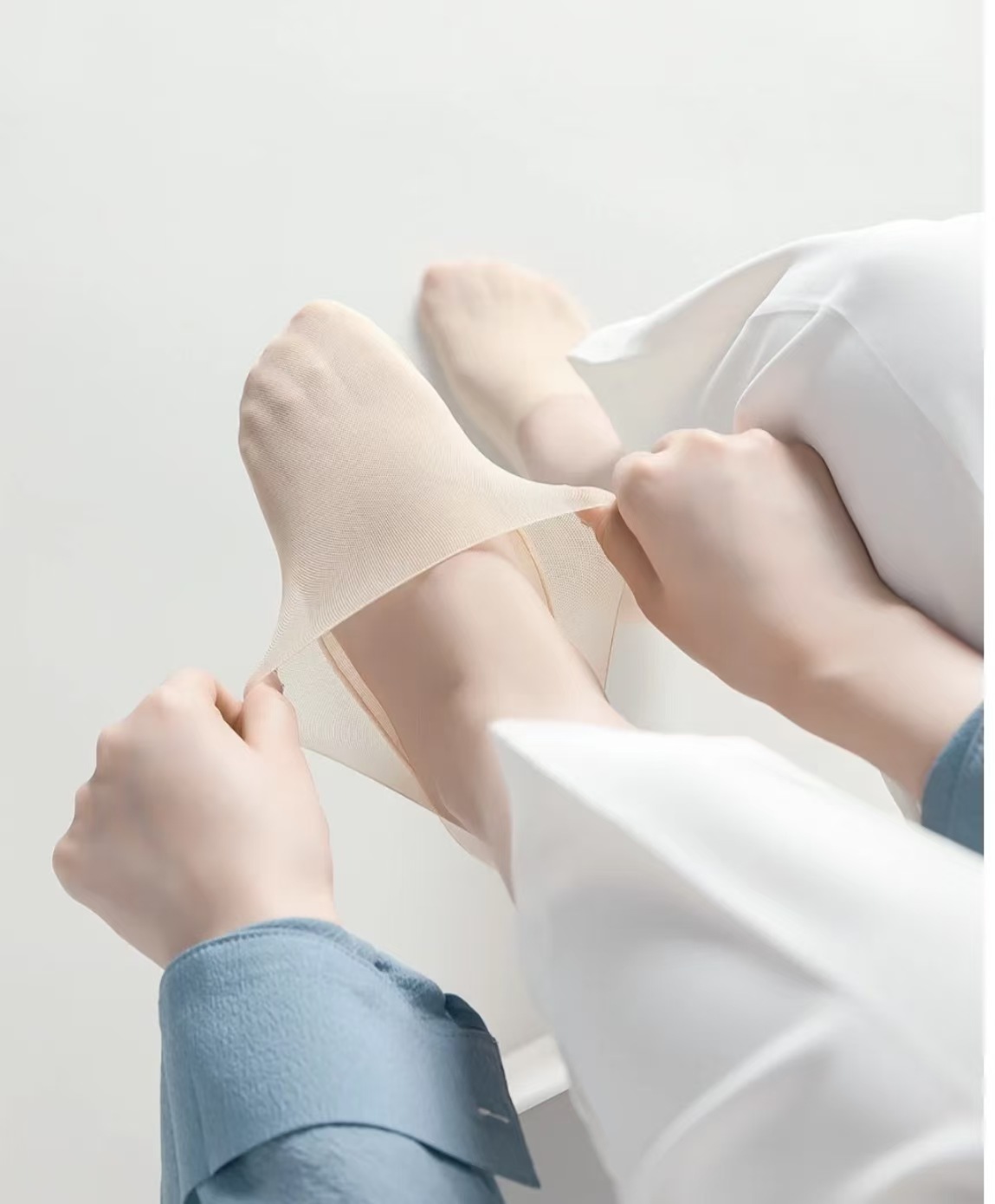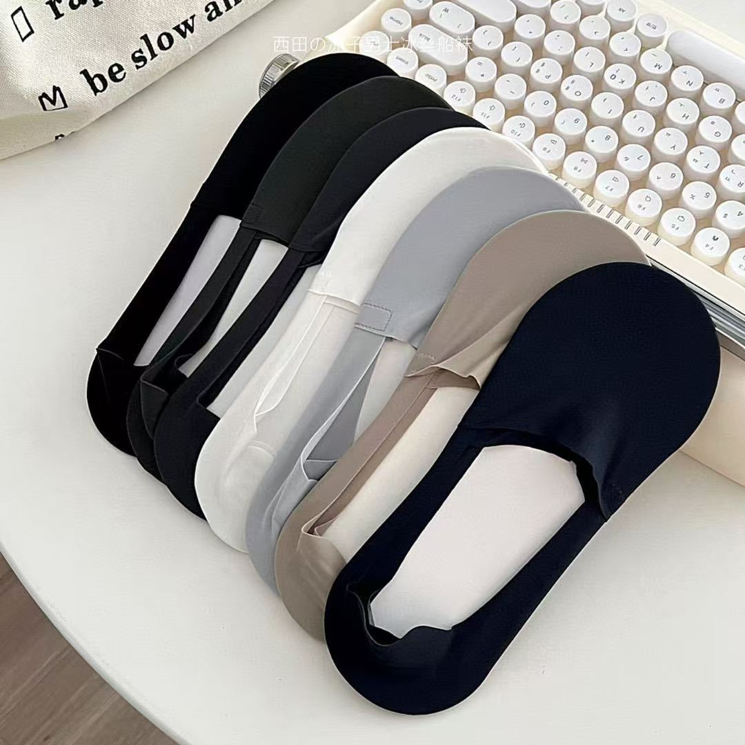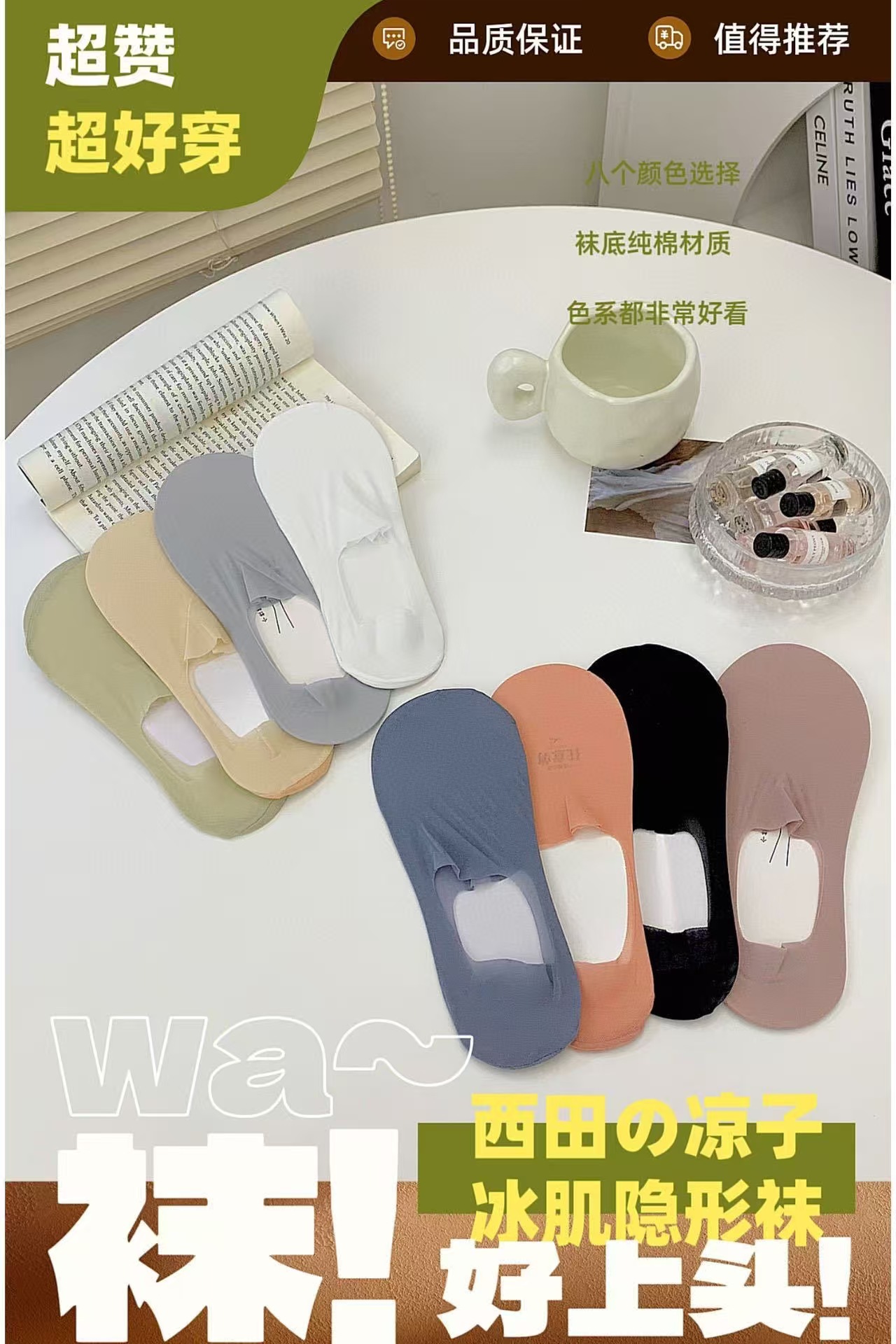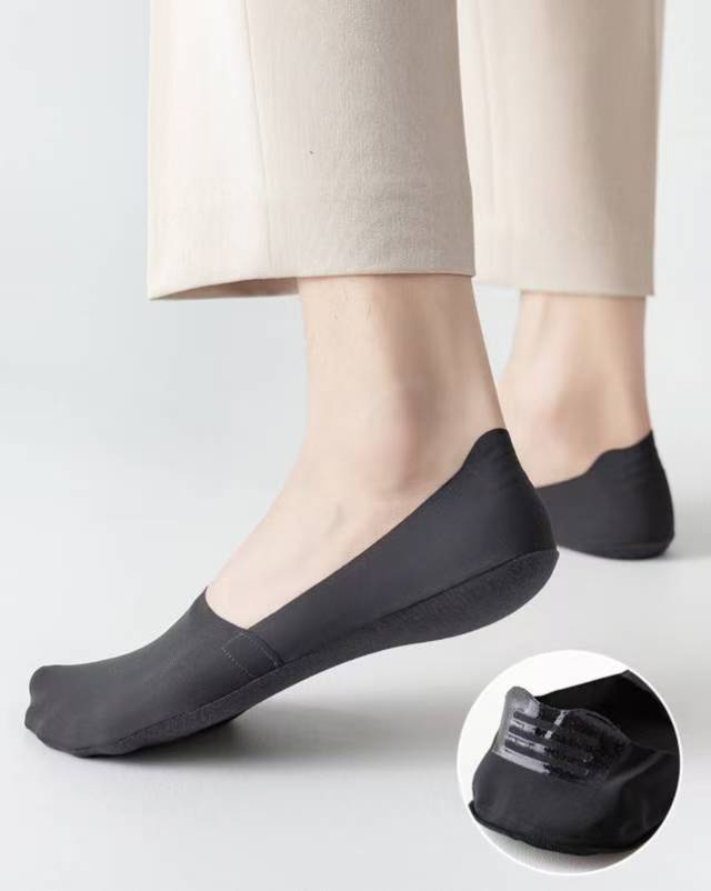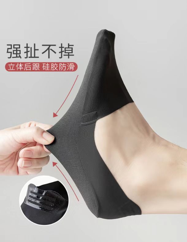 超强防滑不掉跟,大面积果冻胶,浅口隐形黑科技凉感冰丝袜面,步步清爽。