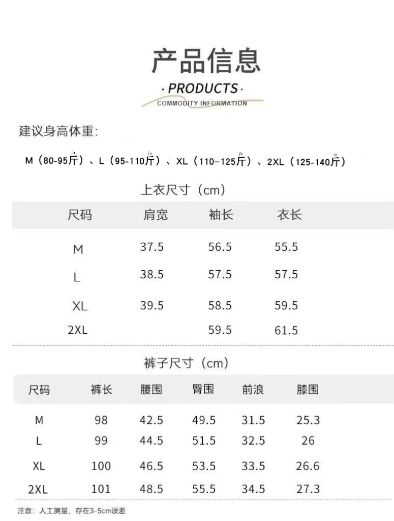 【尺码】:M80-95斤 L95-110斤 XL110-125斤 2XL125-140斤