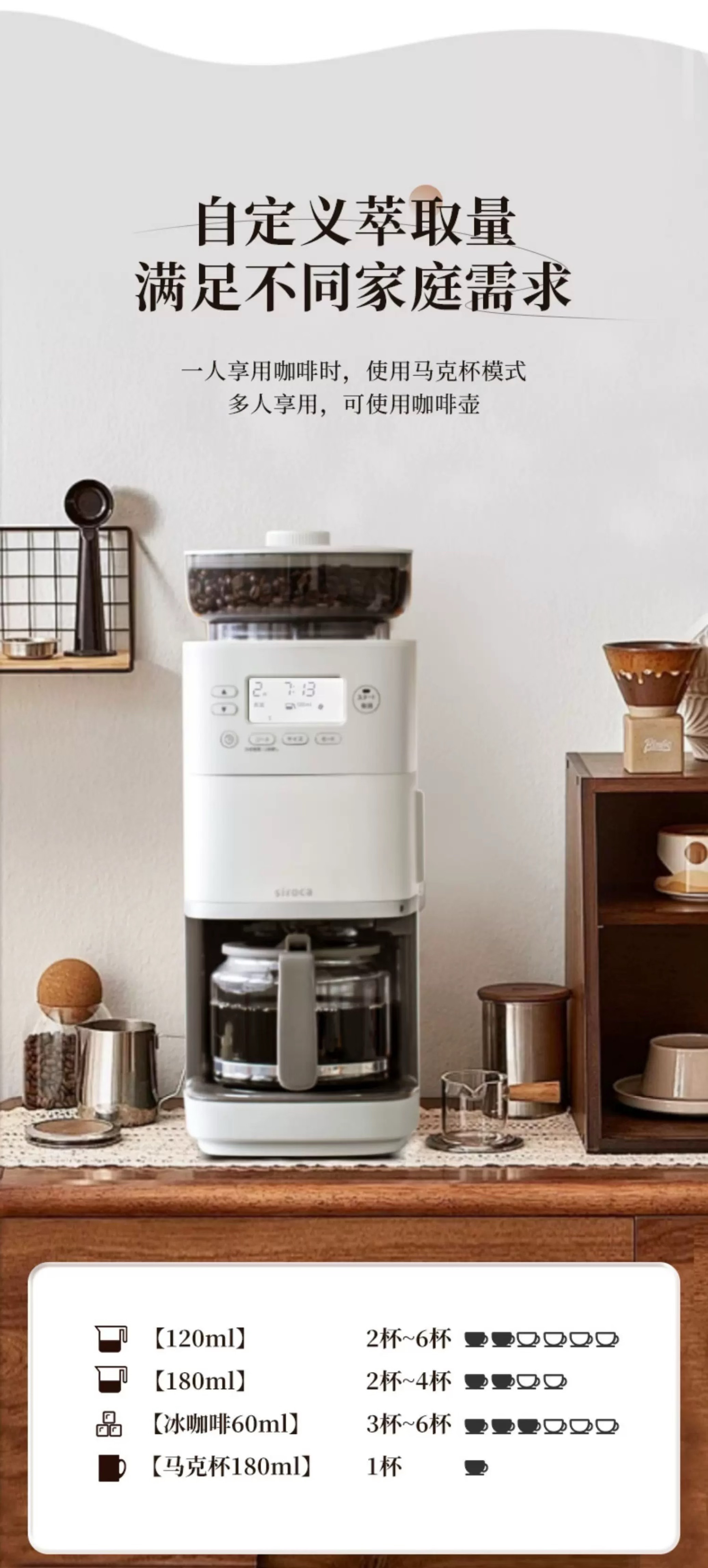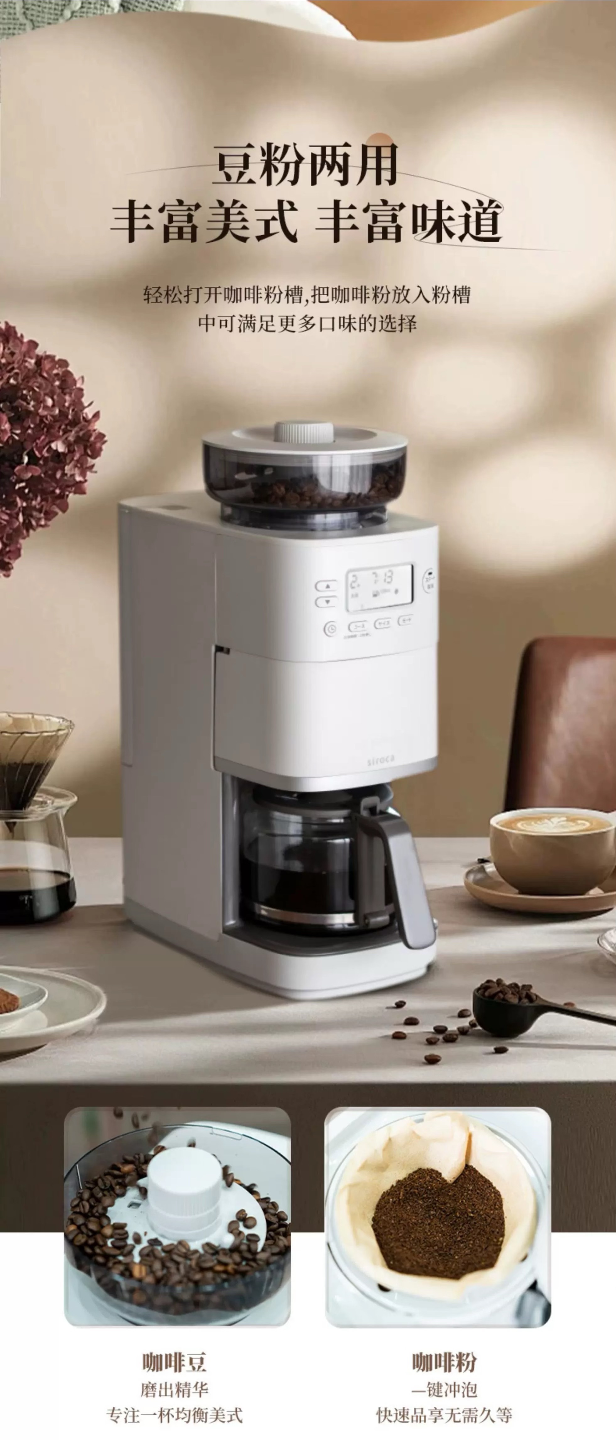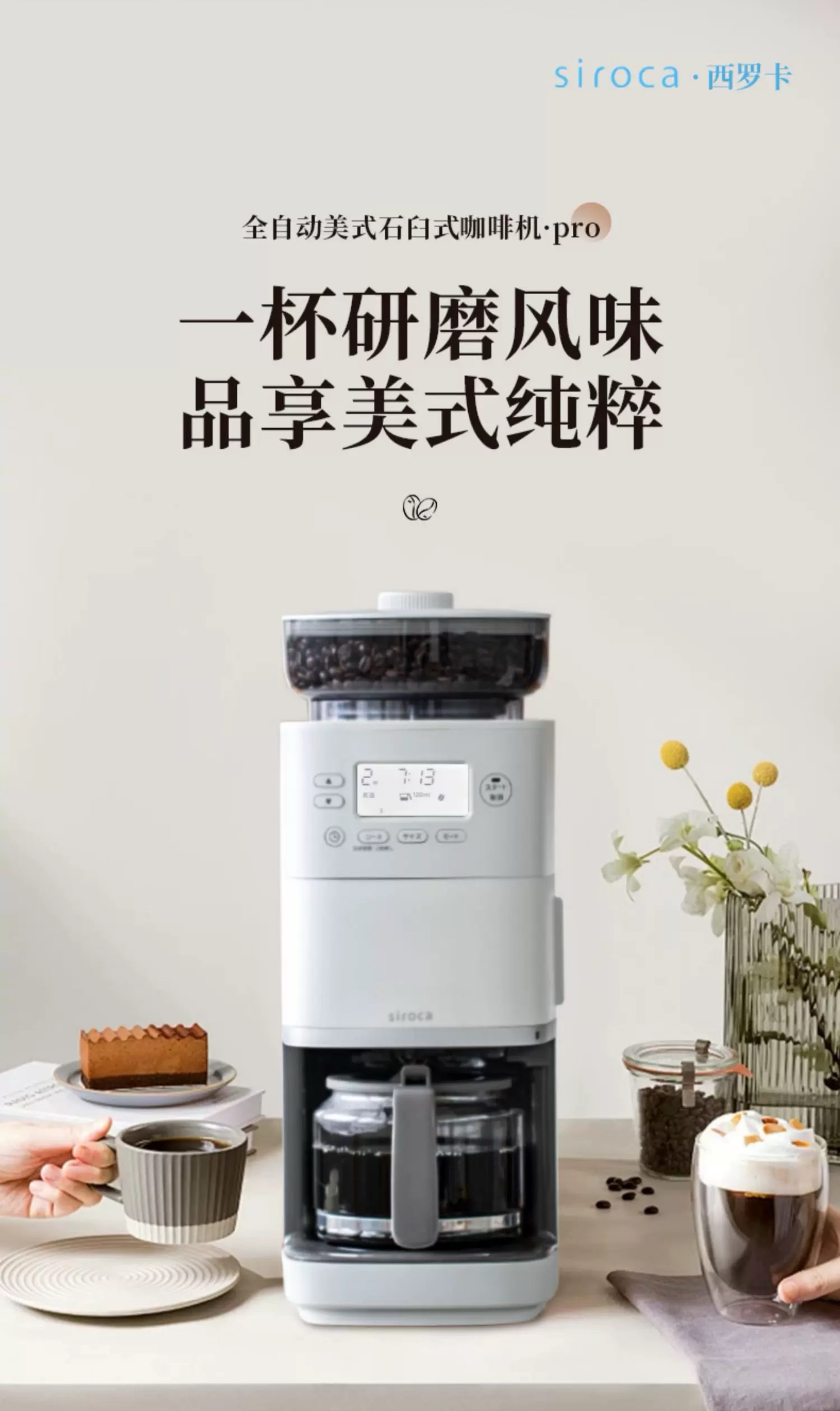 日本 西罗卡siroca 石臼式全自动美式咖啡机PRO 家用办公多功能一体
