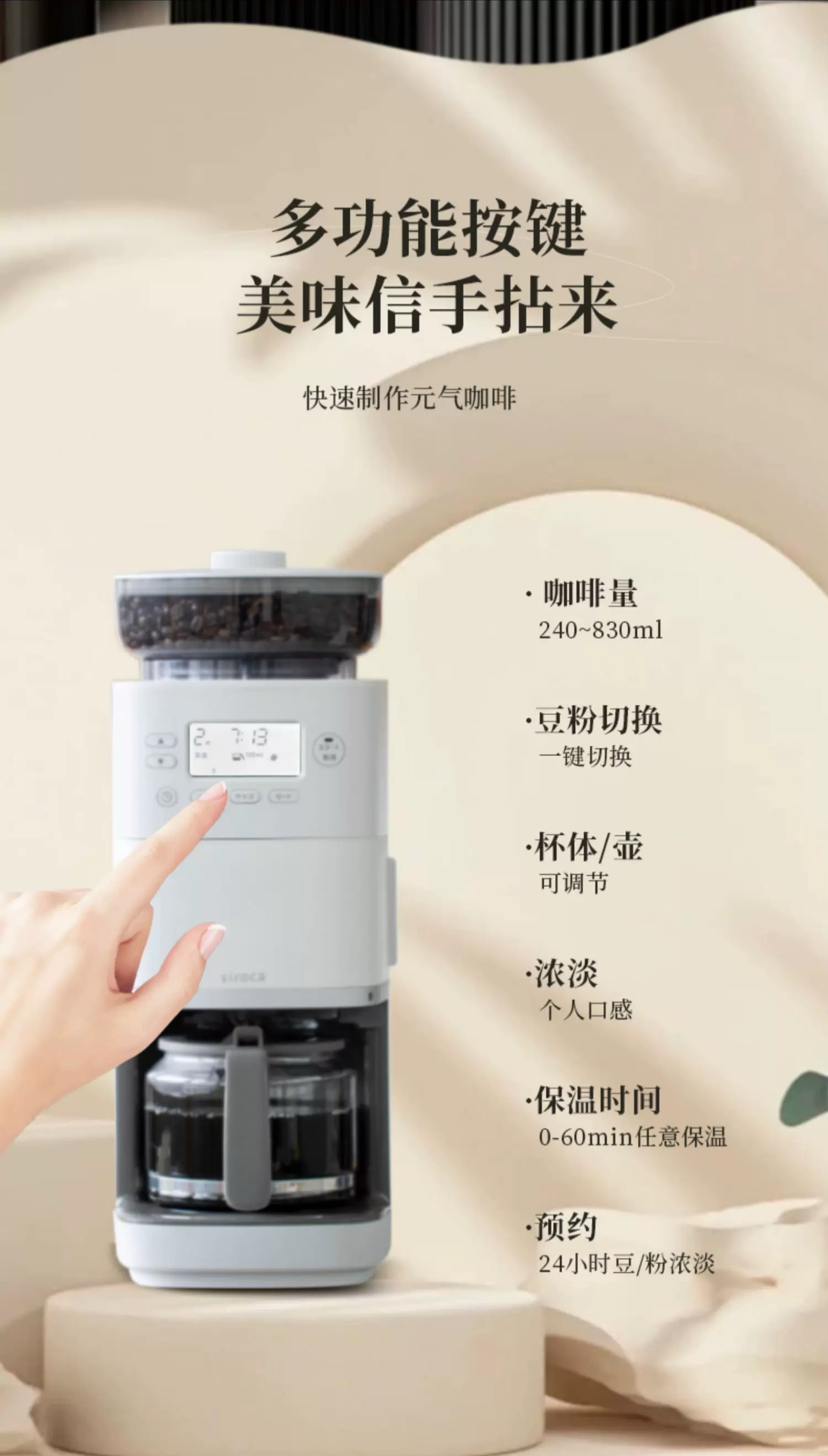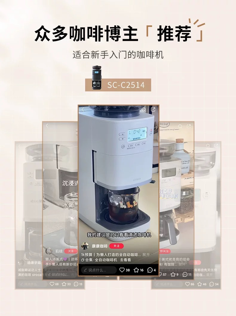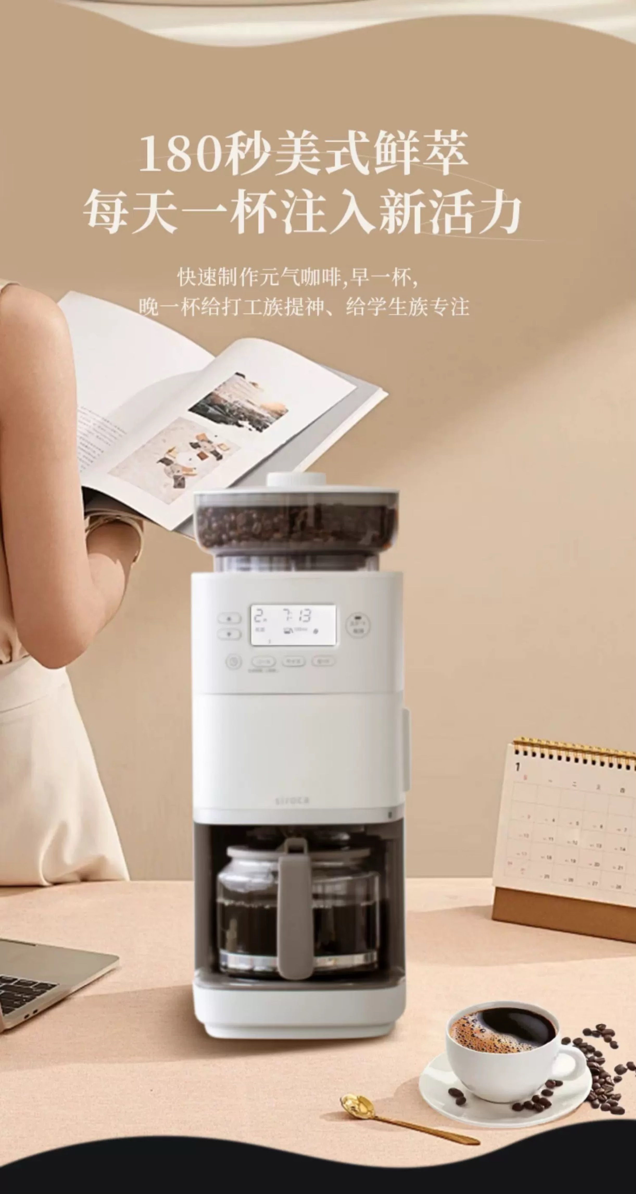 日本 西罗卡siroca 石臼式全自动美式咖啡机PRO 家用办公多功能一体