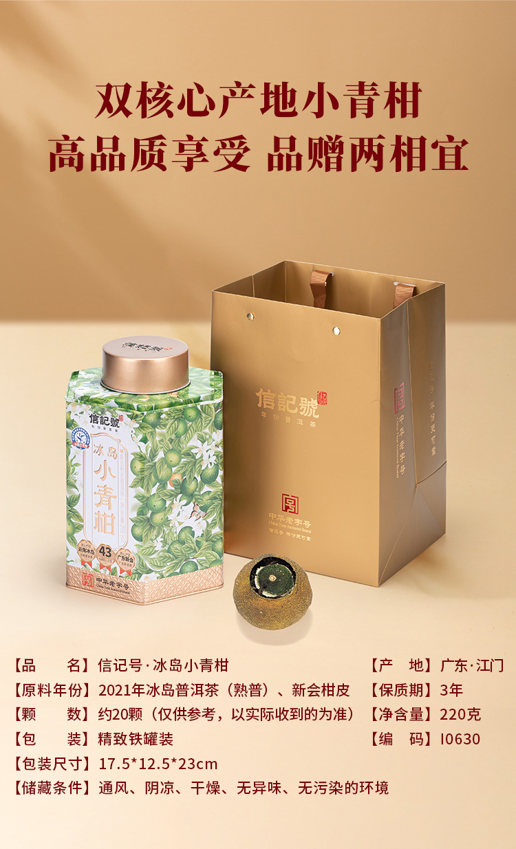 八马茶业 | 信记号·冰岛小青柑2024年新会柑&2021年冰岛熟普220g