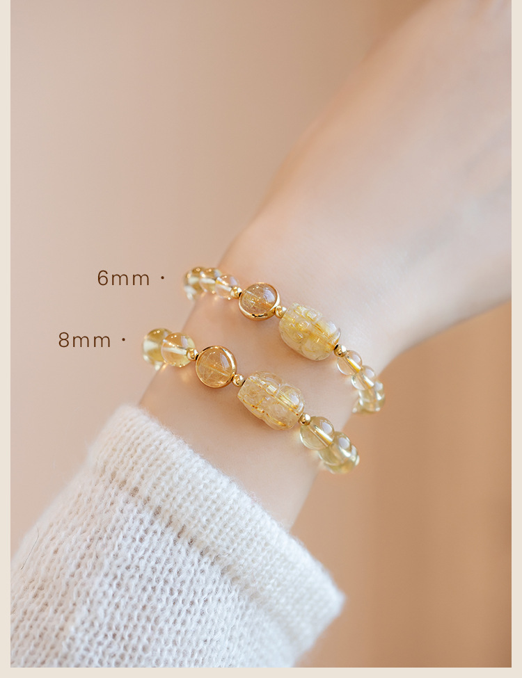 六鑫珠宝 天然巴西黄水晶貔貅手串 设计款