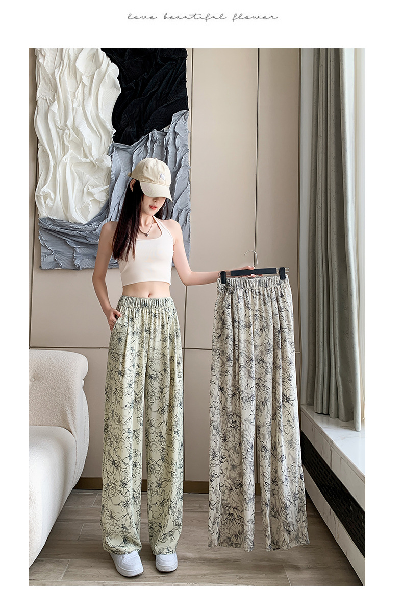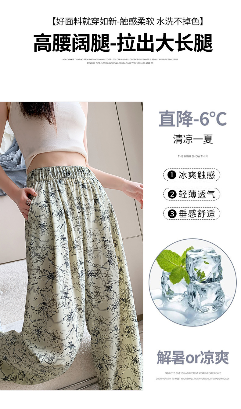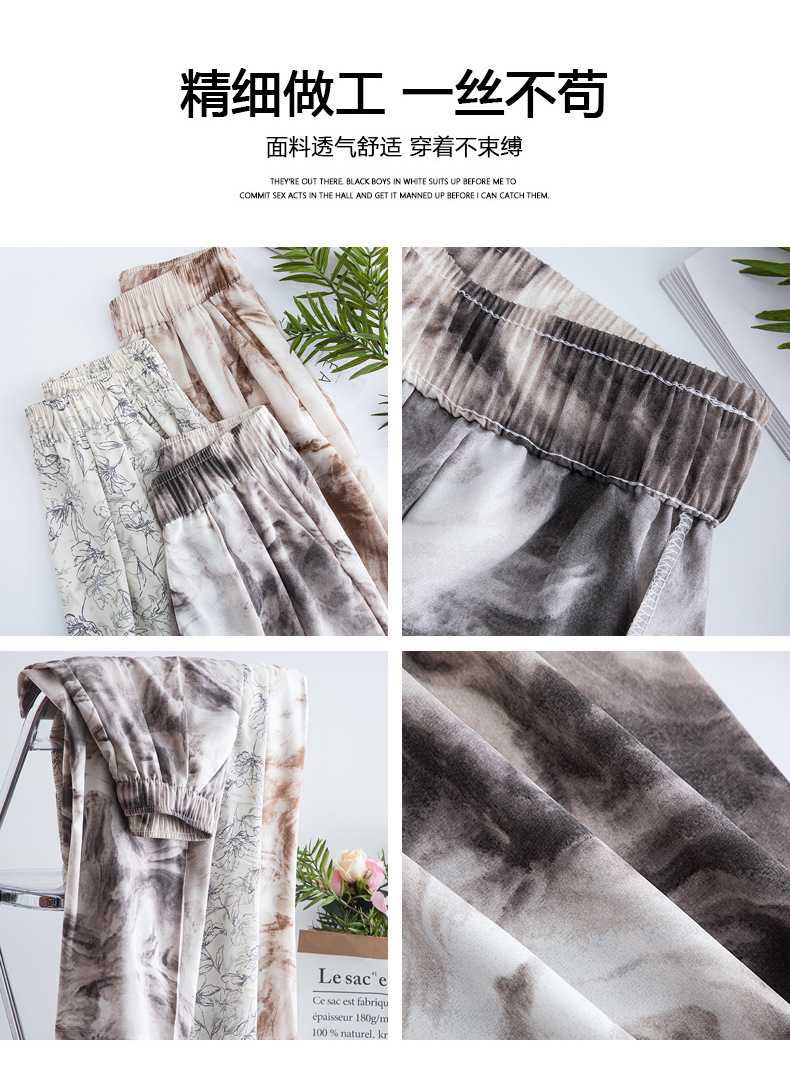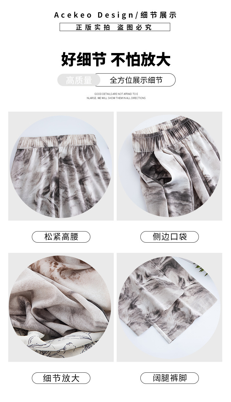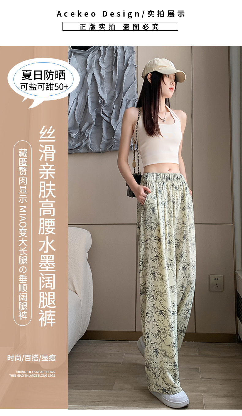 【夏日防晒 可盐可甜❗️扎染水墨画冰丝阔腿裤】丝滑亲肤高腰,遮肉显瘦秒变大长腿,清凉舒爽不闷热,冰爽触感,女夏季新款宽松高腰垂感休闲拖地防晒裤夏日粉丝专属
