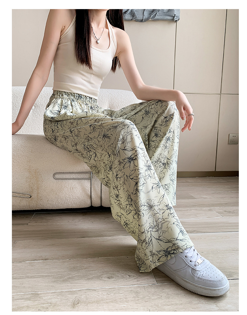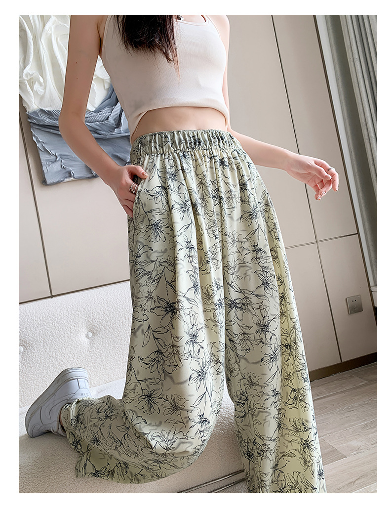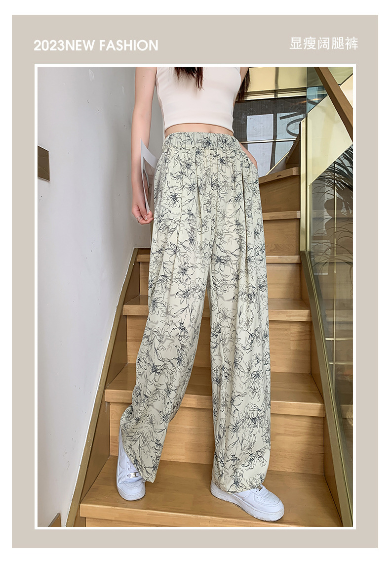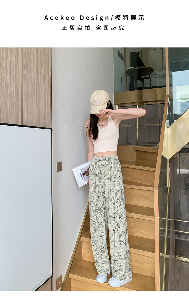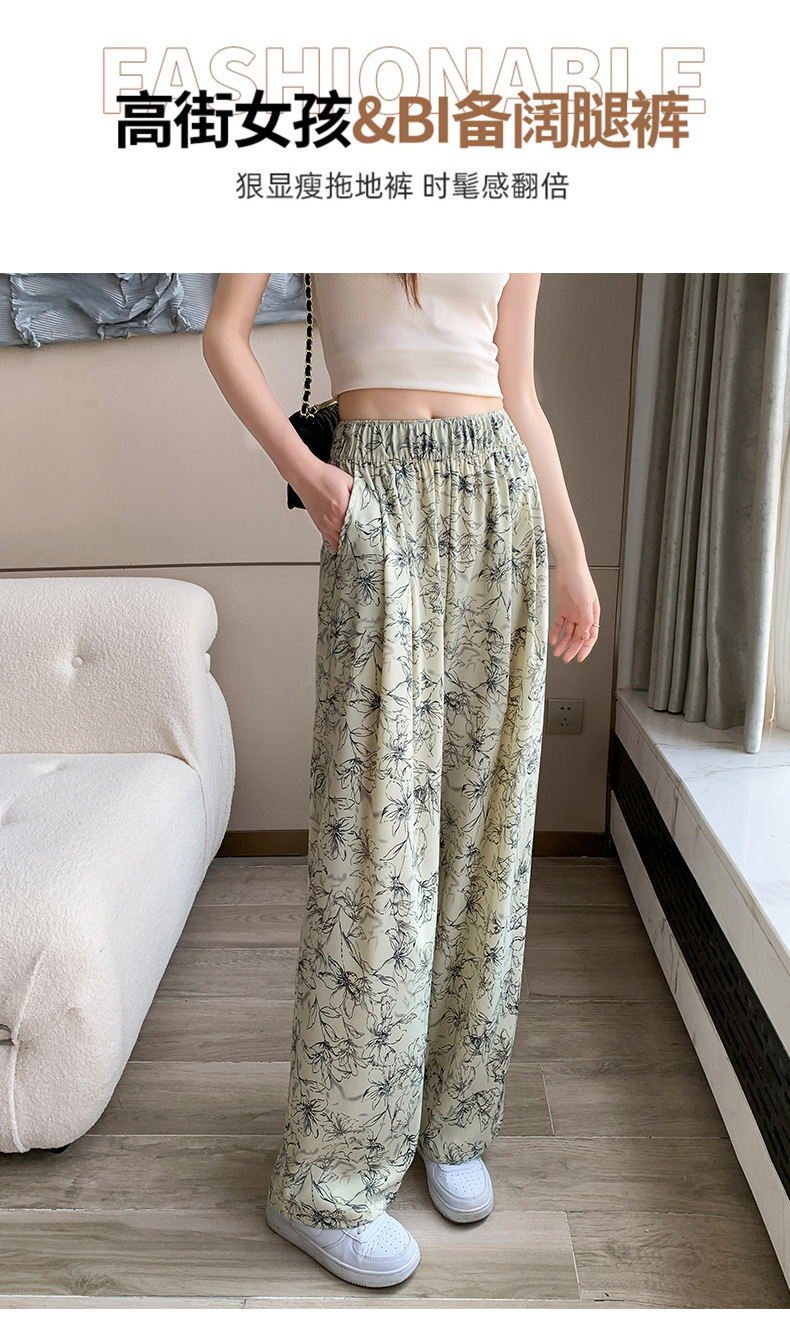 【夏日防晒 可盐可甜❗️扎染水墨画冰丝阔腿裤】丝滑亲肤高腰,遮肉显瘦秒变大长腿,清凉舒爽不闷热,冰爽触感,女夏季新款宽松高腰垂感休闲拖地防晒裤夏日粉丝专属
