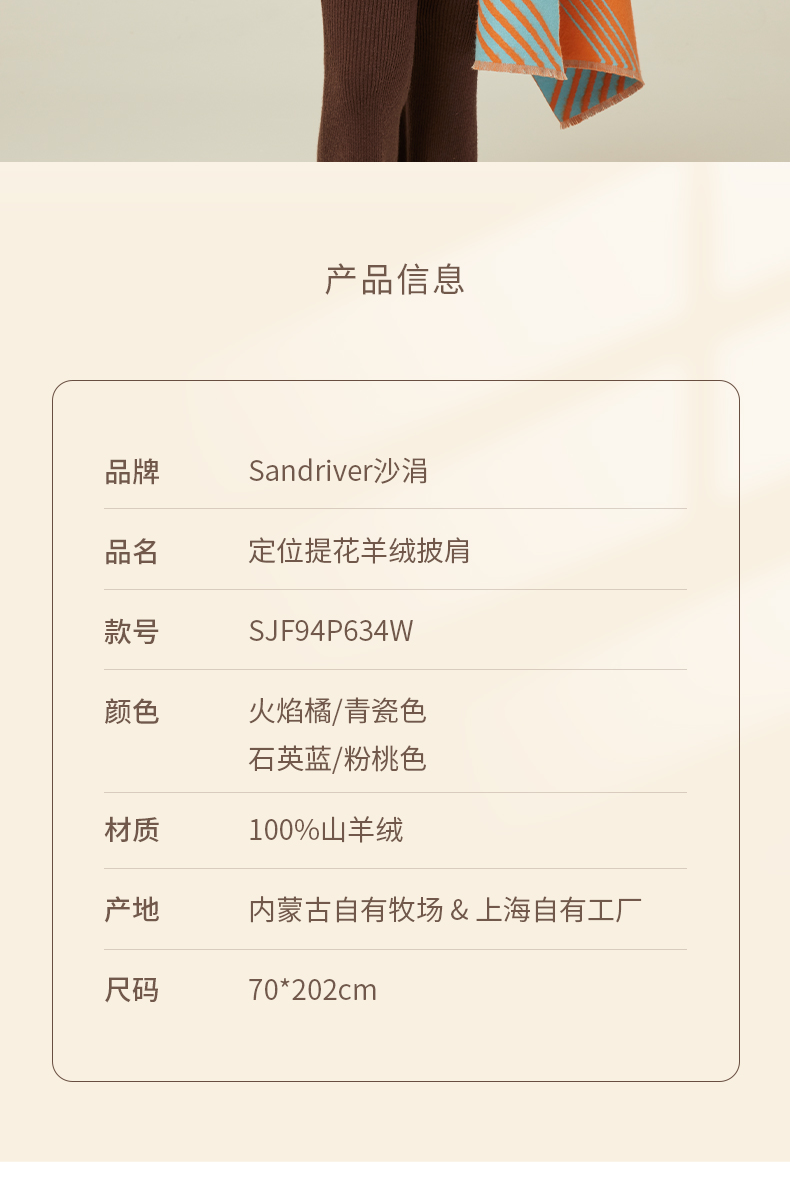 历年在巴黎时装周亮相,享誉世界的艺术羊绒品牌[Sandriver 沙涓]由羊绒布道者郭秀玲女士创立。阿拉善自有牧场纯种羔羊绒,日本国宝设计师小筱顺子,上海自有基地精工细作。承载羊绒情怀,坚持匠人品质。