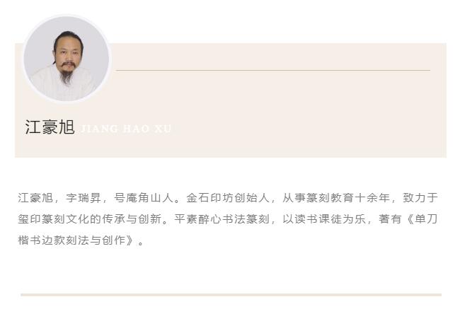 《单刀楷书边款刻法与创作》全书236页,一共九章,前五章主要讲解边款刻法,从边款起源到用刀方法,从基本笔画到结构特点,循序渐进,没有冗长的理论,只有真刀实枪的技法讲解,800个范字全部由江豪旭(庵角山人)老师亲自刻制,再经过高清扫描及专业处理,最终以5公分米字格的图片形式呈现,每一个范字的字口都十分清晰。