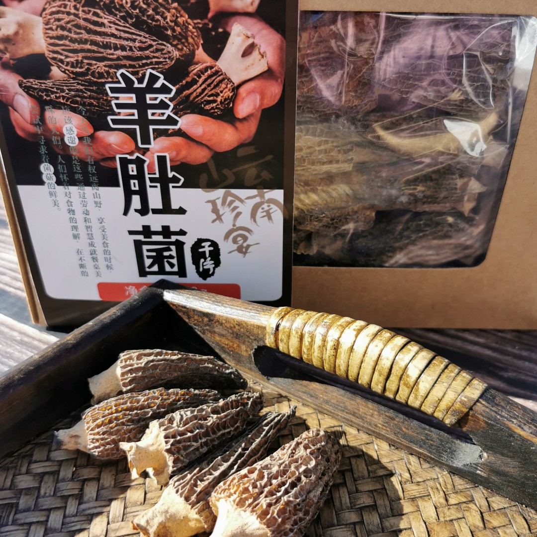 高原仿野生羊肚菌来自云南丽江海拔2500米以上,光照充足,其生长环境也没有受任何污染,其口感相比与其他的羊肚菌也是略胜一筹的。羊肚菌之所以封后,是因为它味道中不羁的野性。羊肚菌有着非常难得的丰富味道,尤其是干制后泡发的羊肚菌,有着迷人泥土、坚果、烟熏等复合的山野气息,所谓菌香浓郁,正是如此。