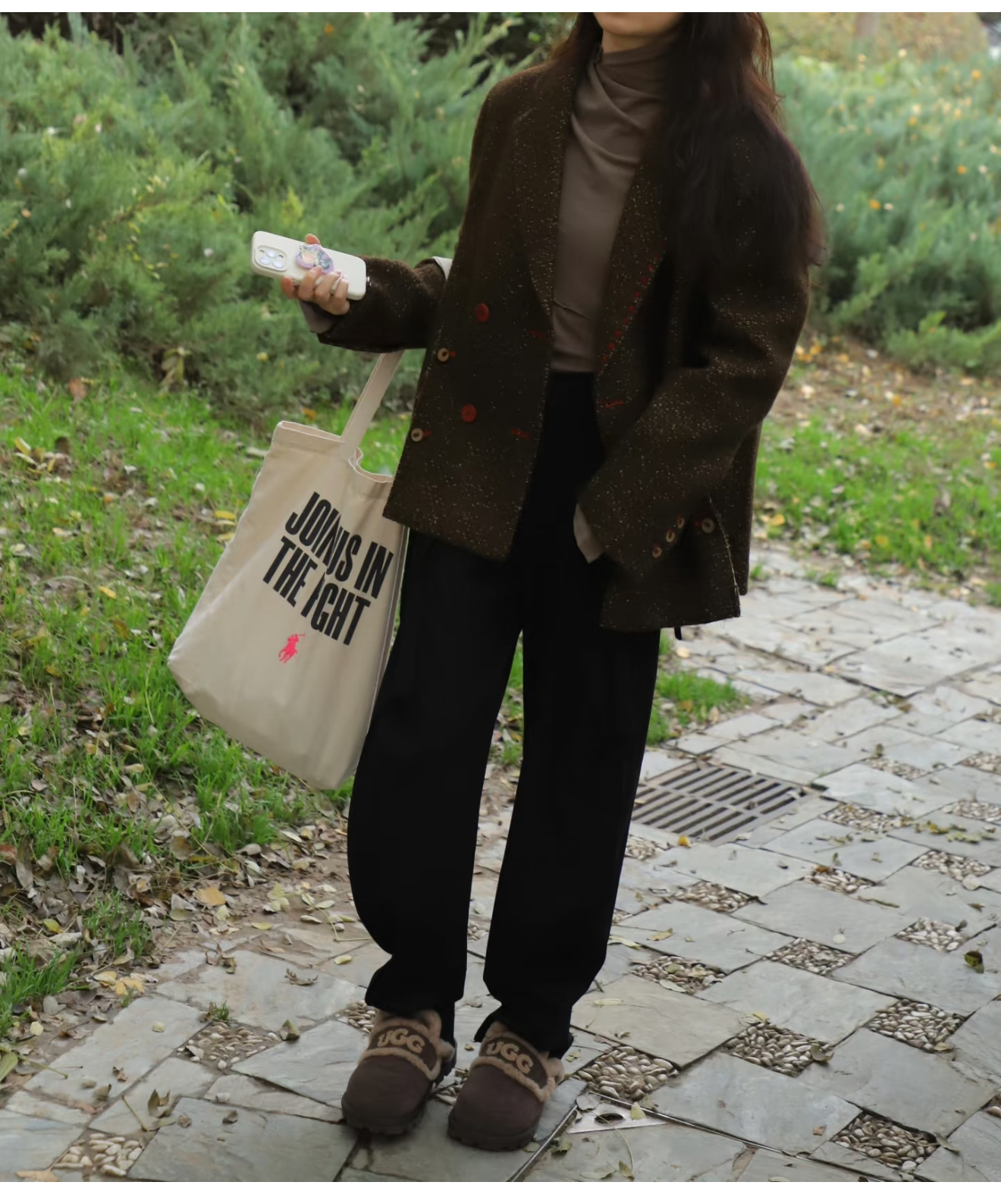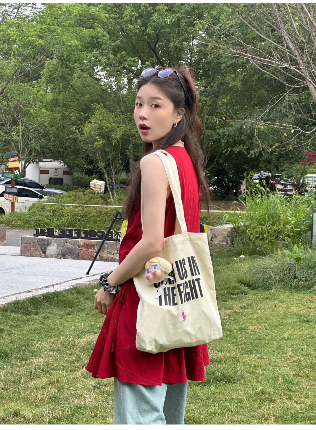 R.L 粉标刺绣 帆布购物袋 托特小包