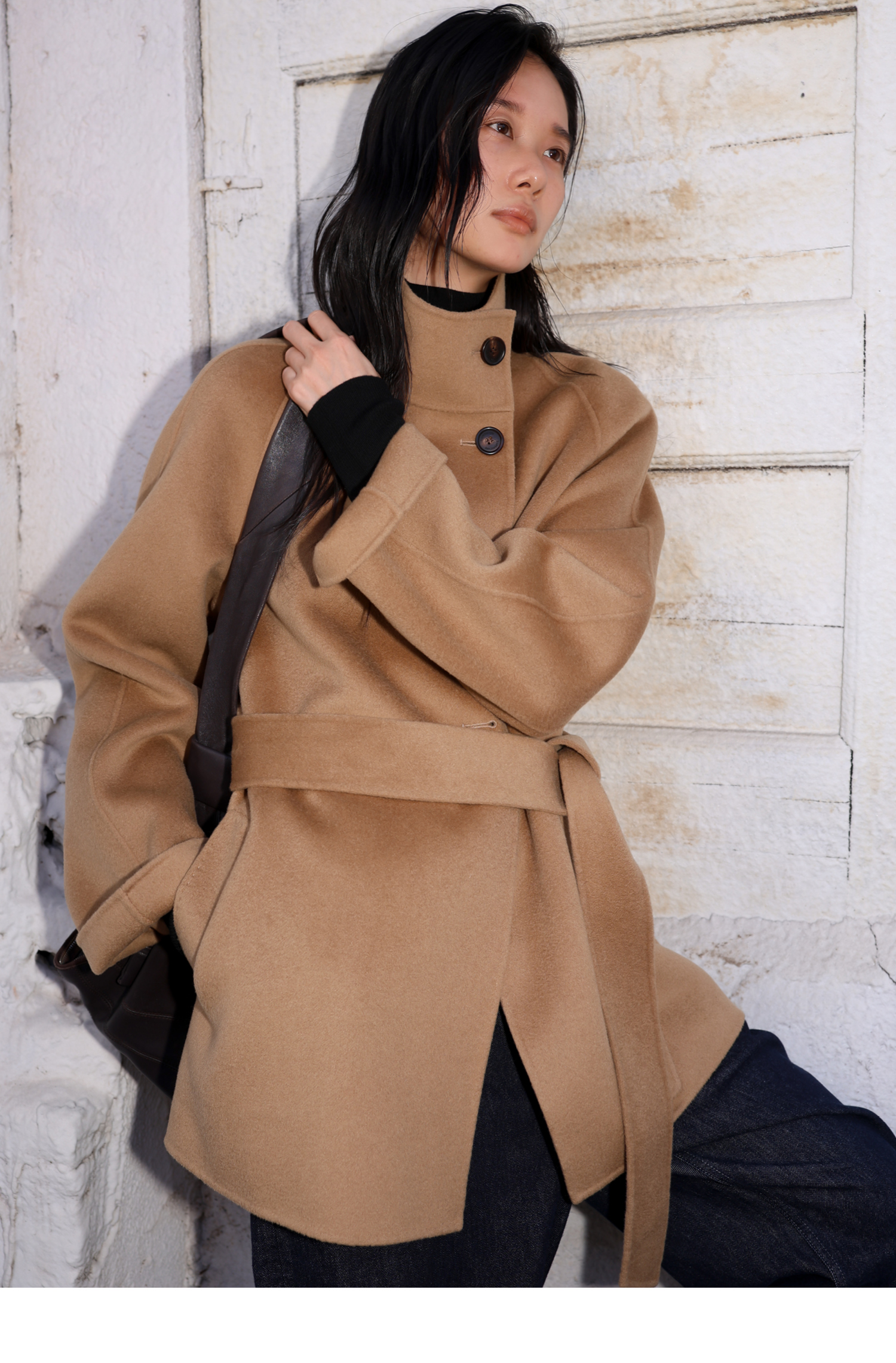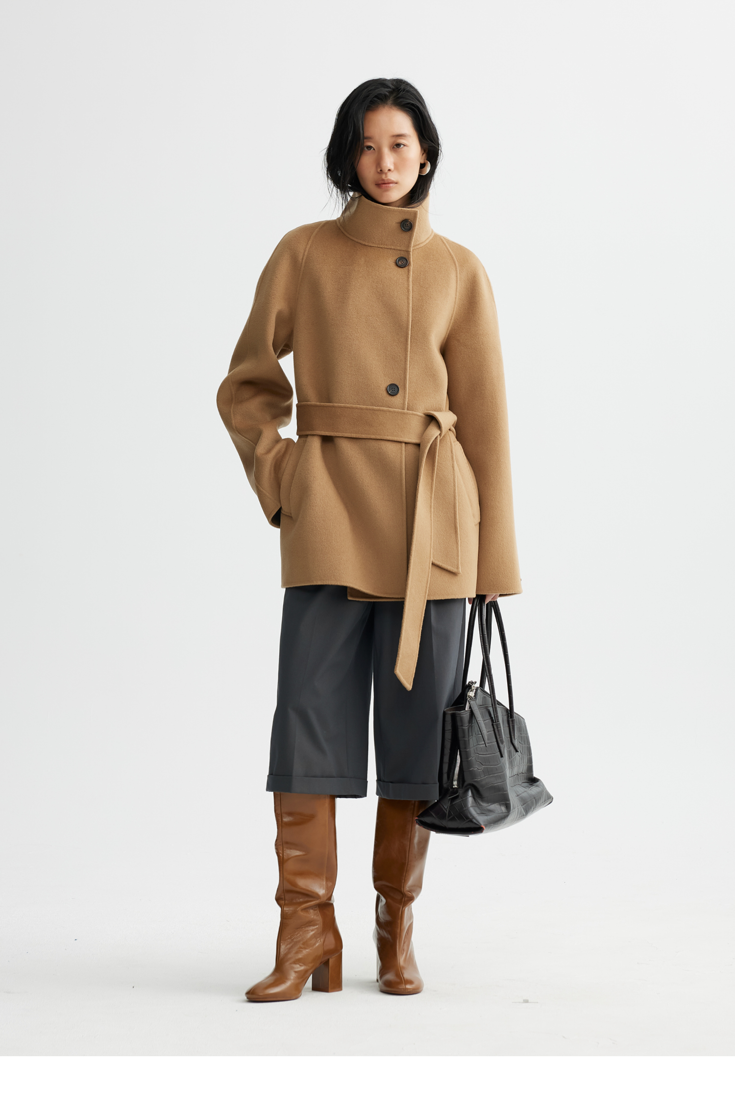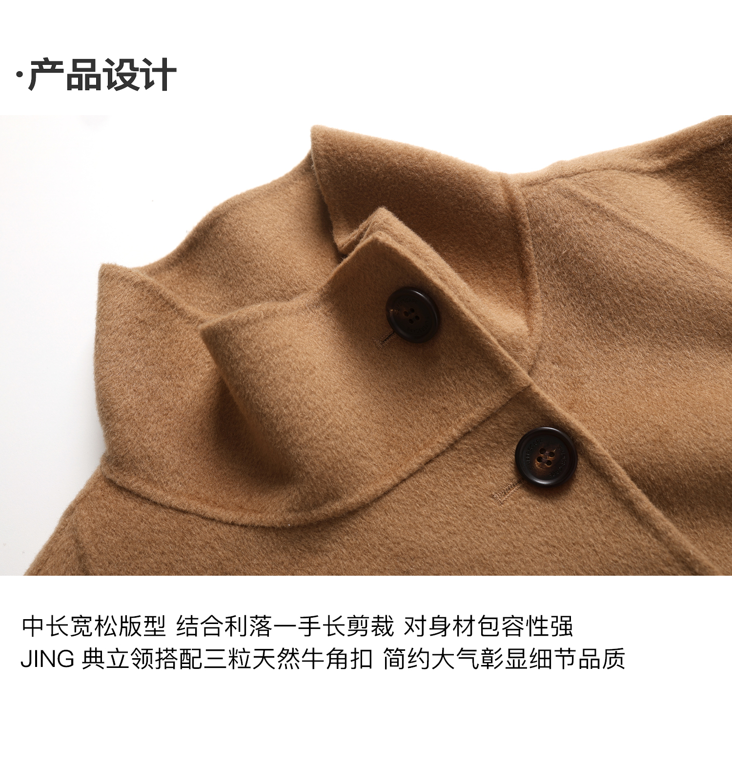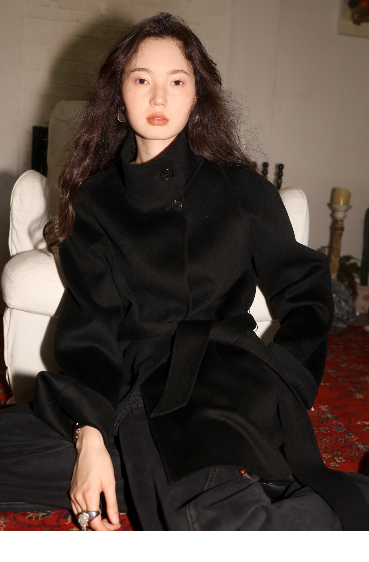 素舶 80支高密100绵羊毛立领中长款双面呢大衣