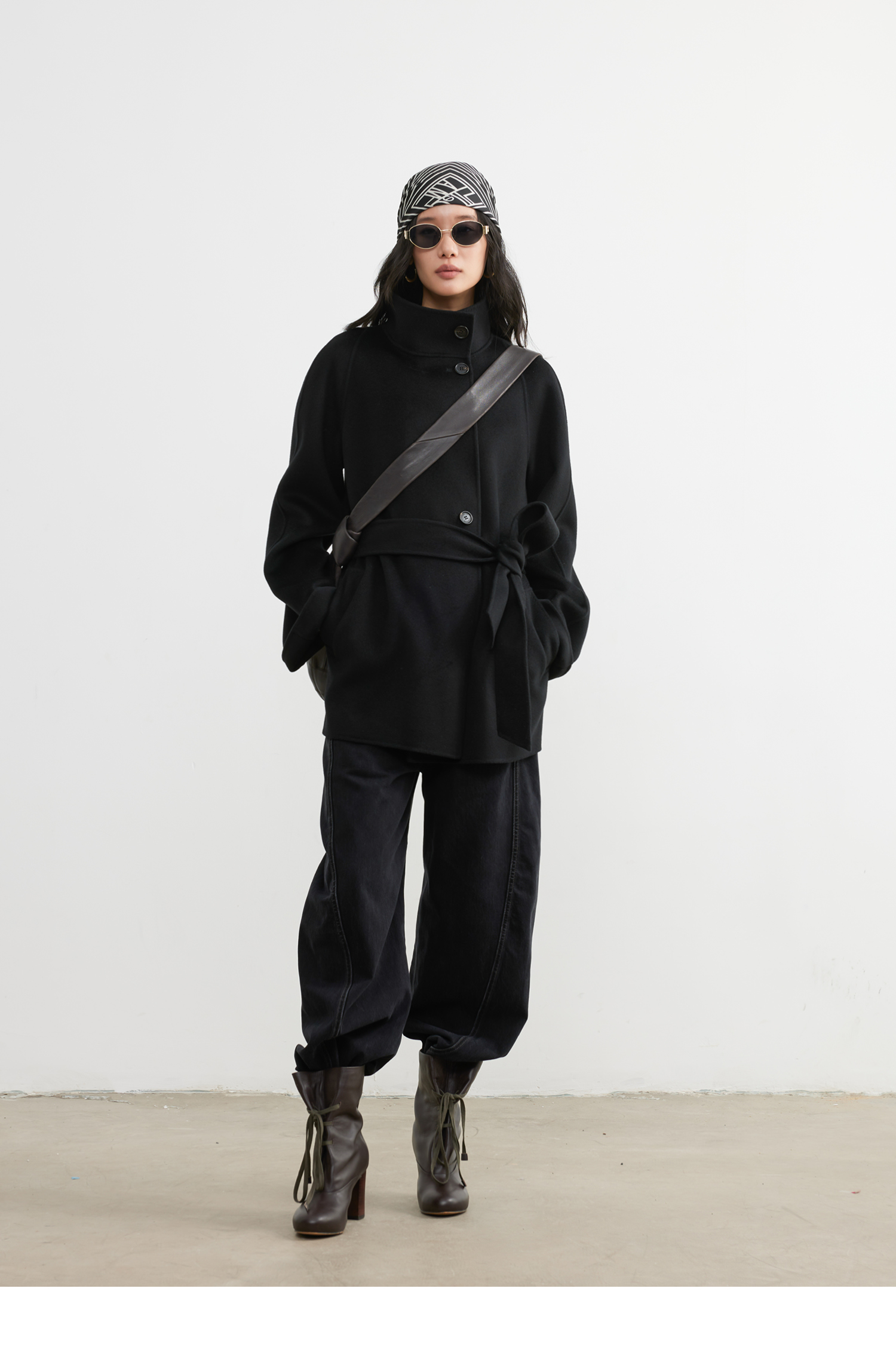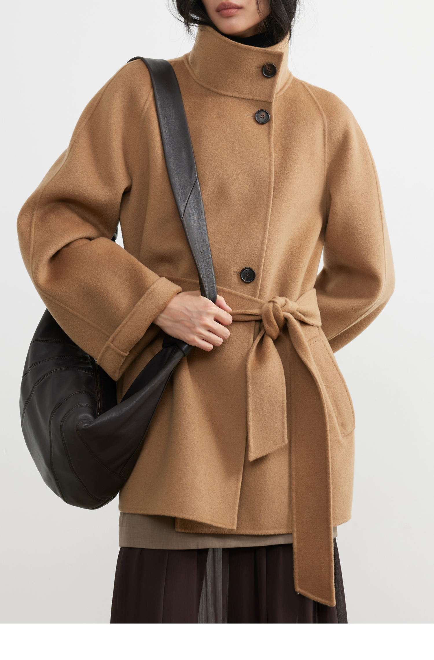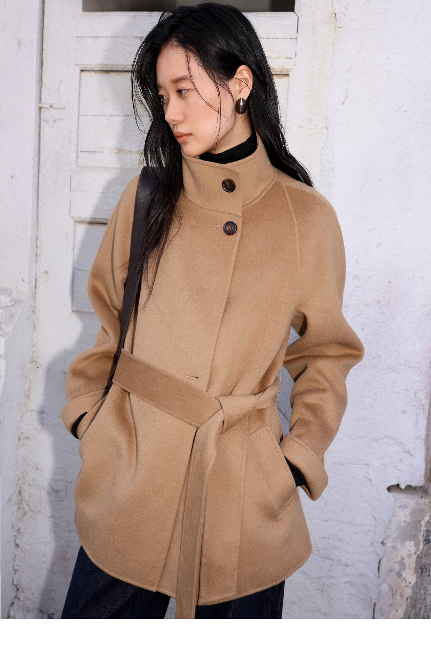 素舶 80支高密100绵羊毛立领中长款双面呢大衣