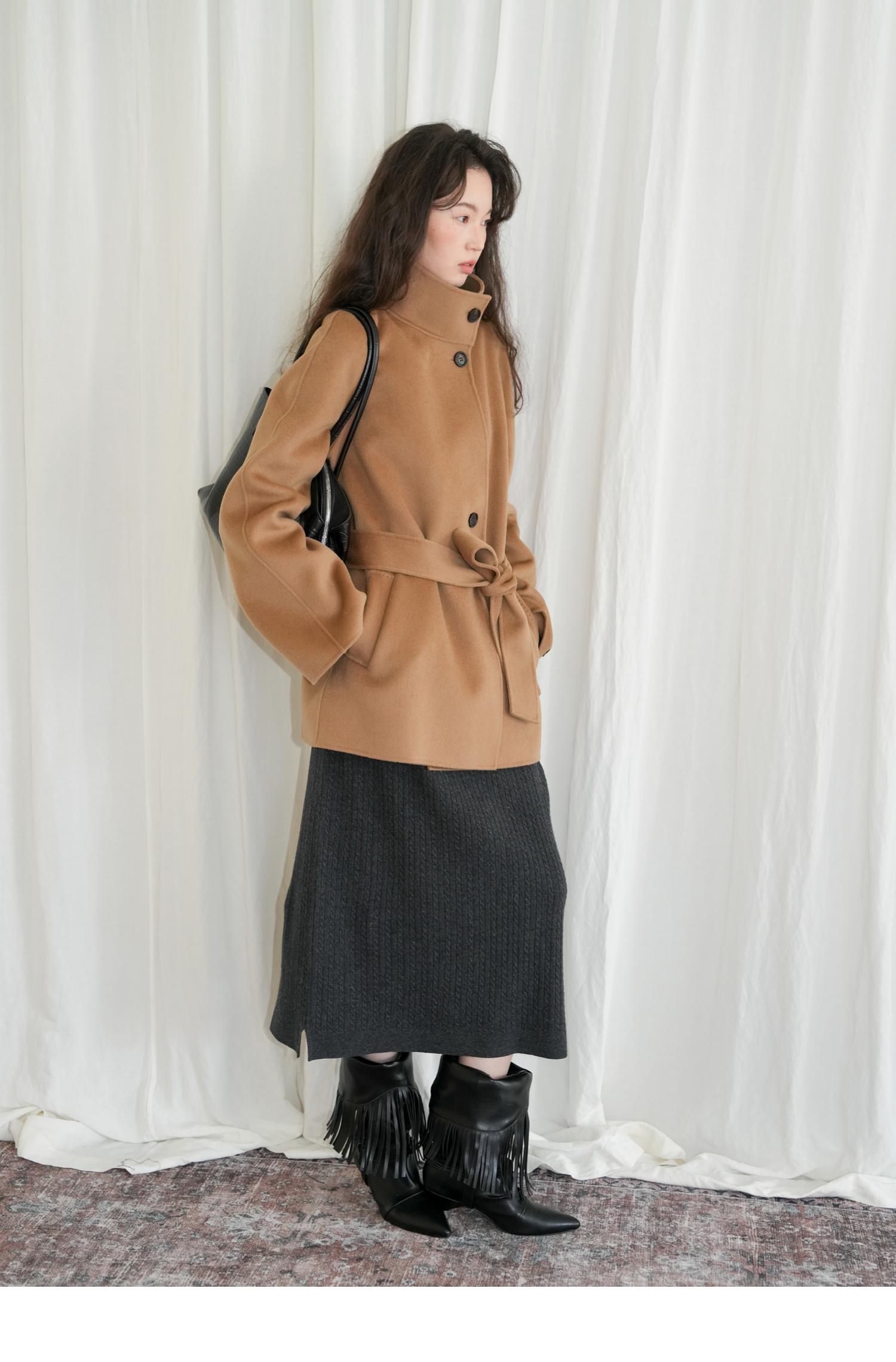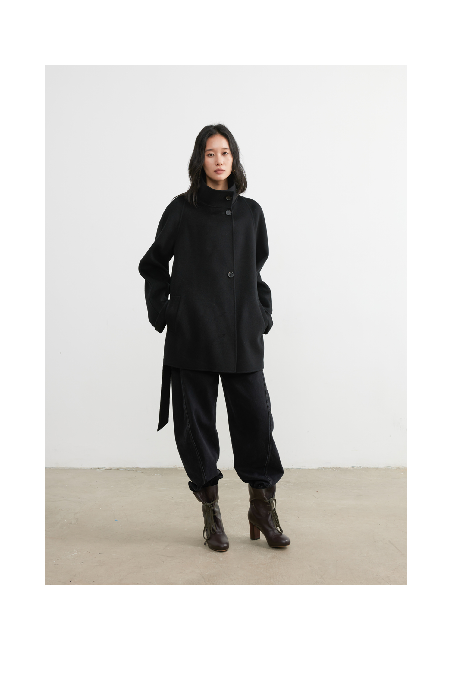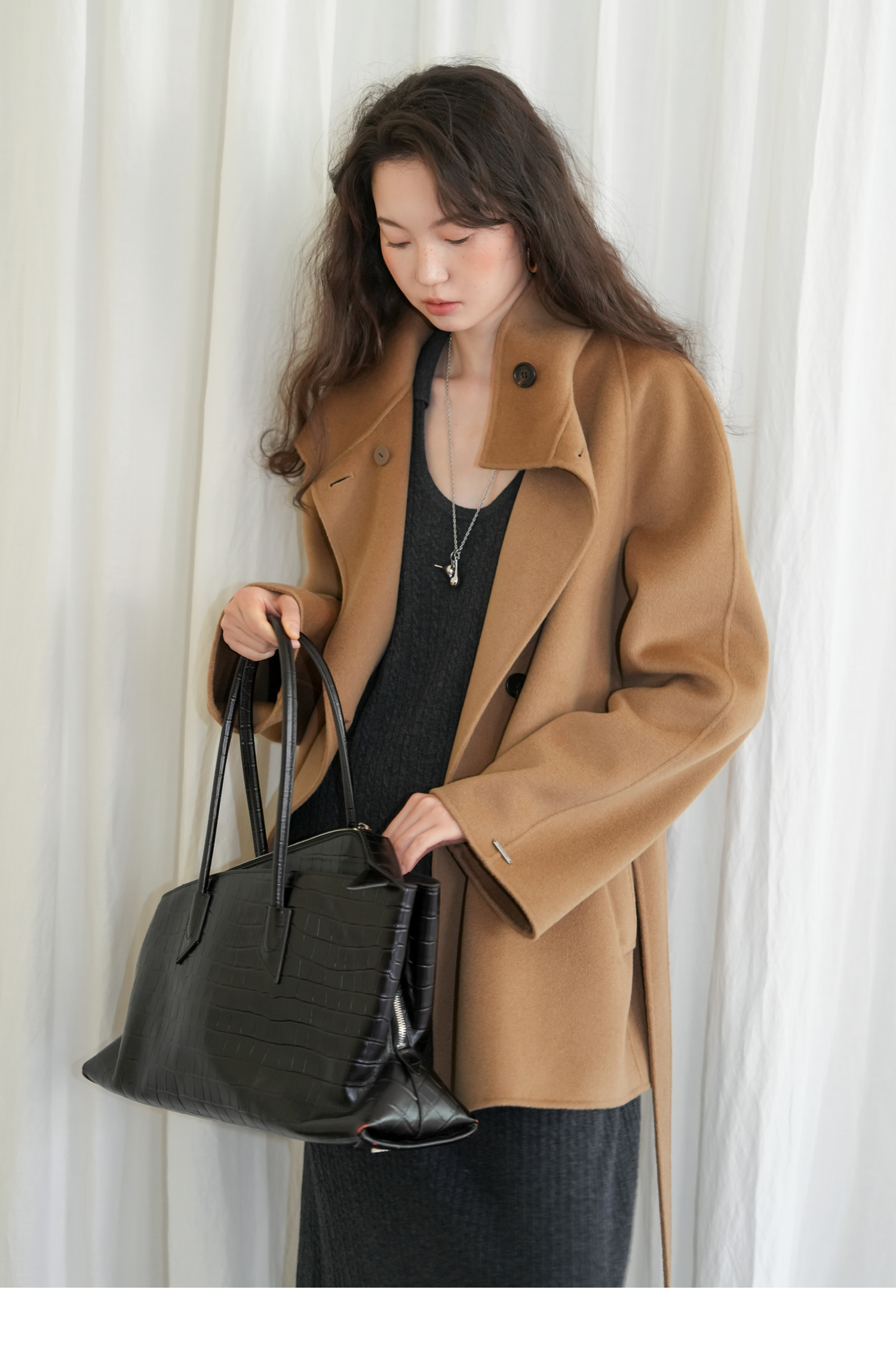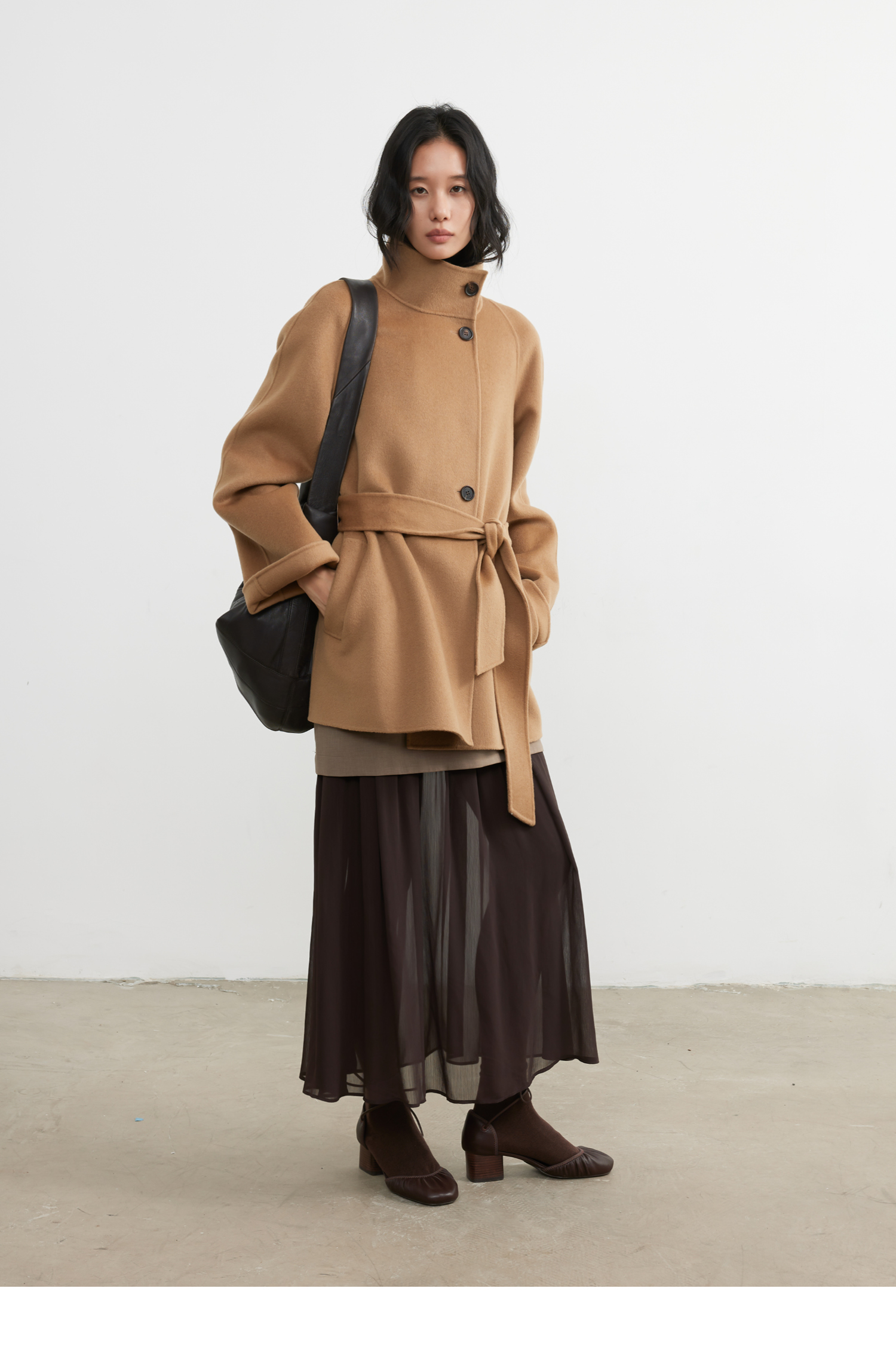 素舶 80支高密100绵羊毛立领中长款双面呢大衣