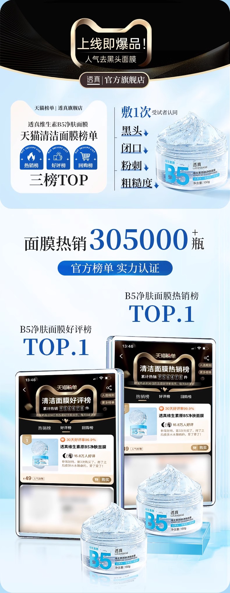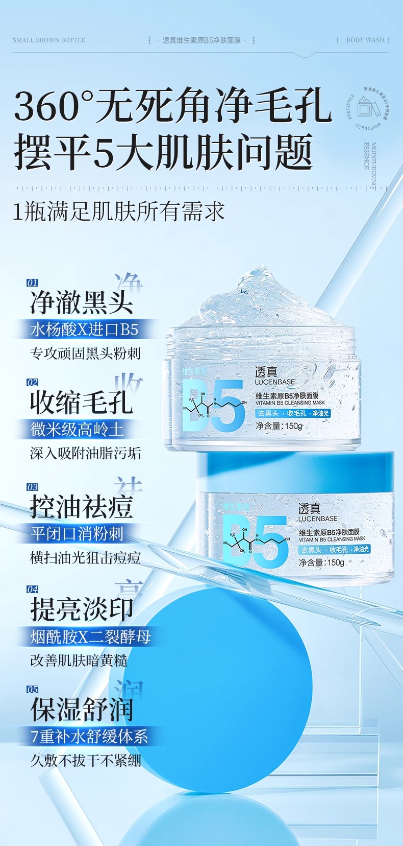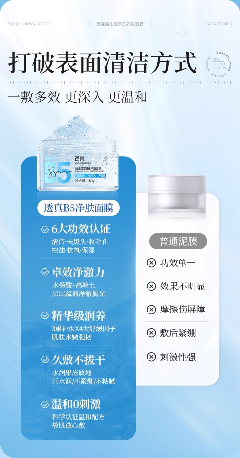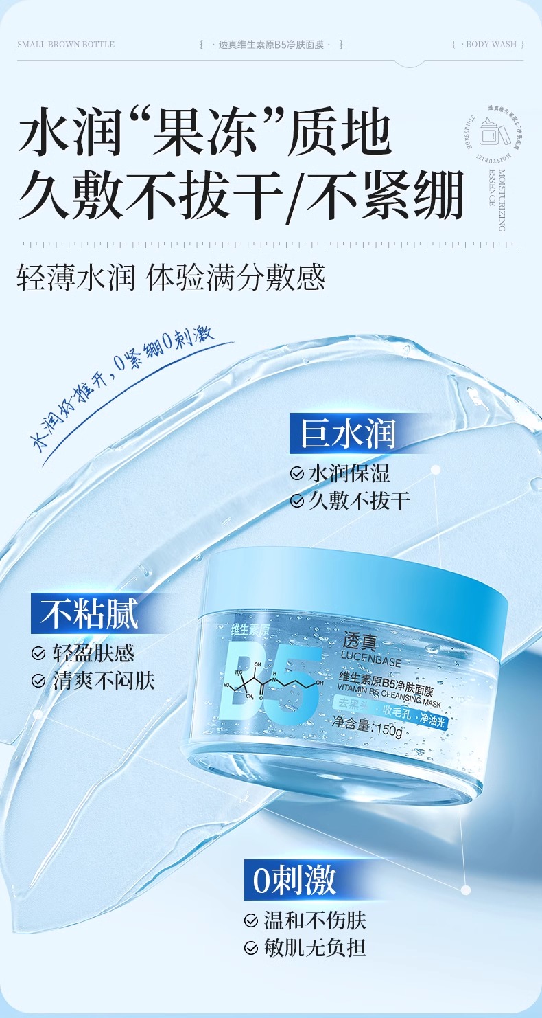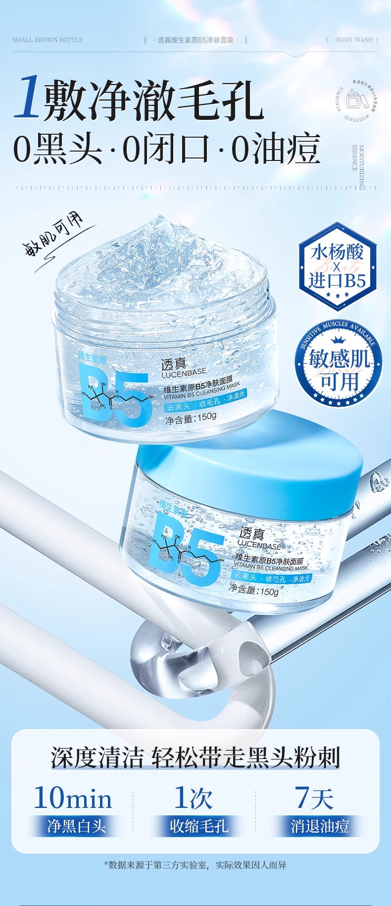 【1敷0黑头 全脸细腻】维生素原B5净肤面膜150g#水杨酸B5清洁泥膜去黑头收缩毛孔粉刺闭口面部脏东西涂抹式面膜