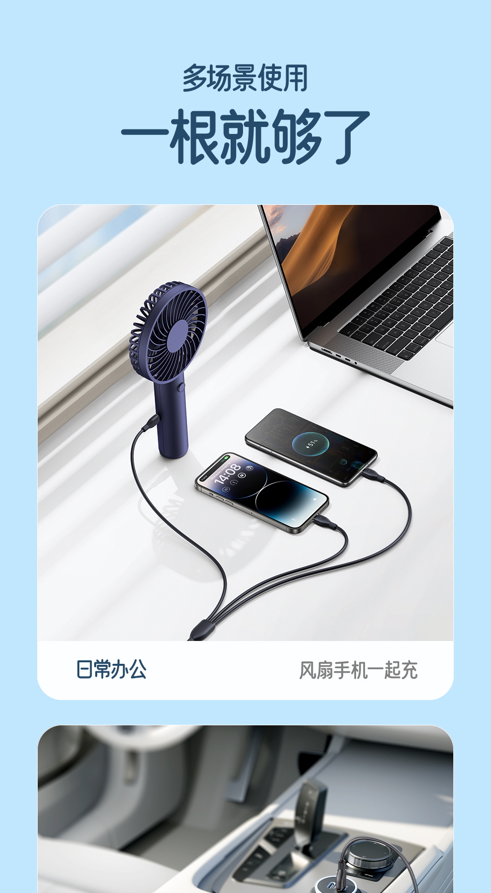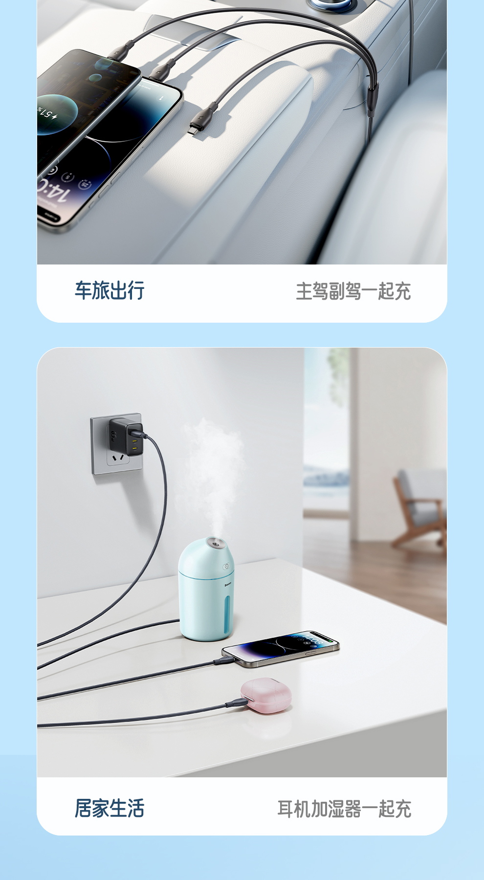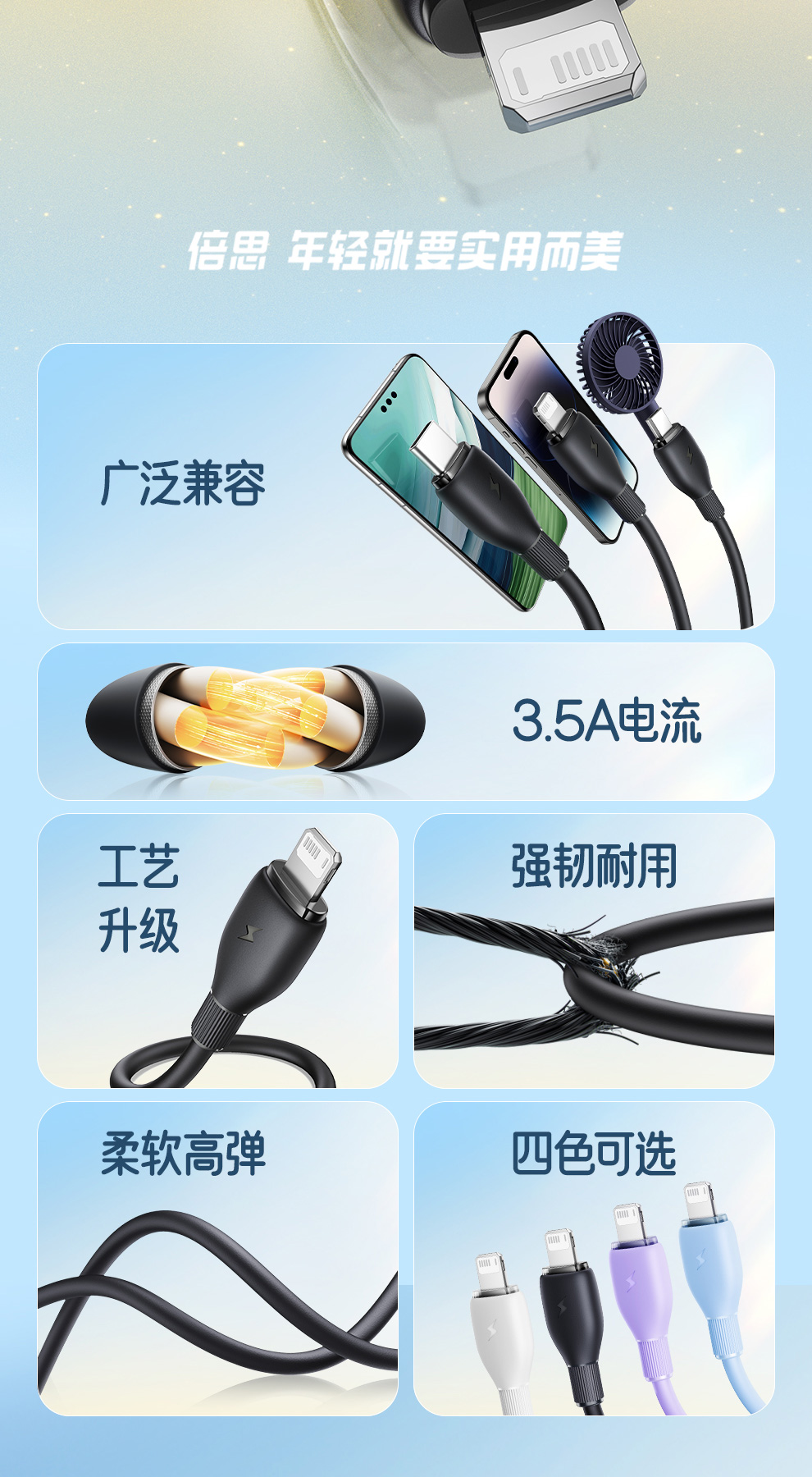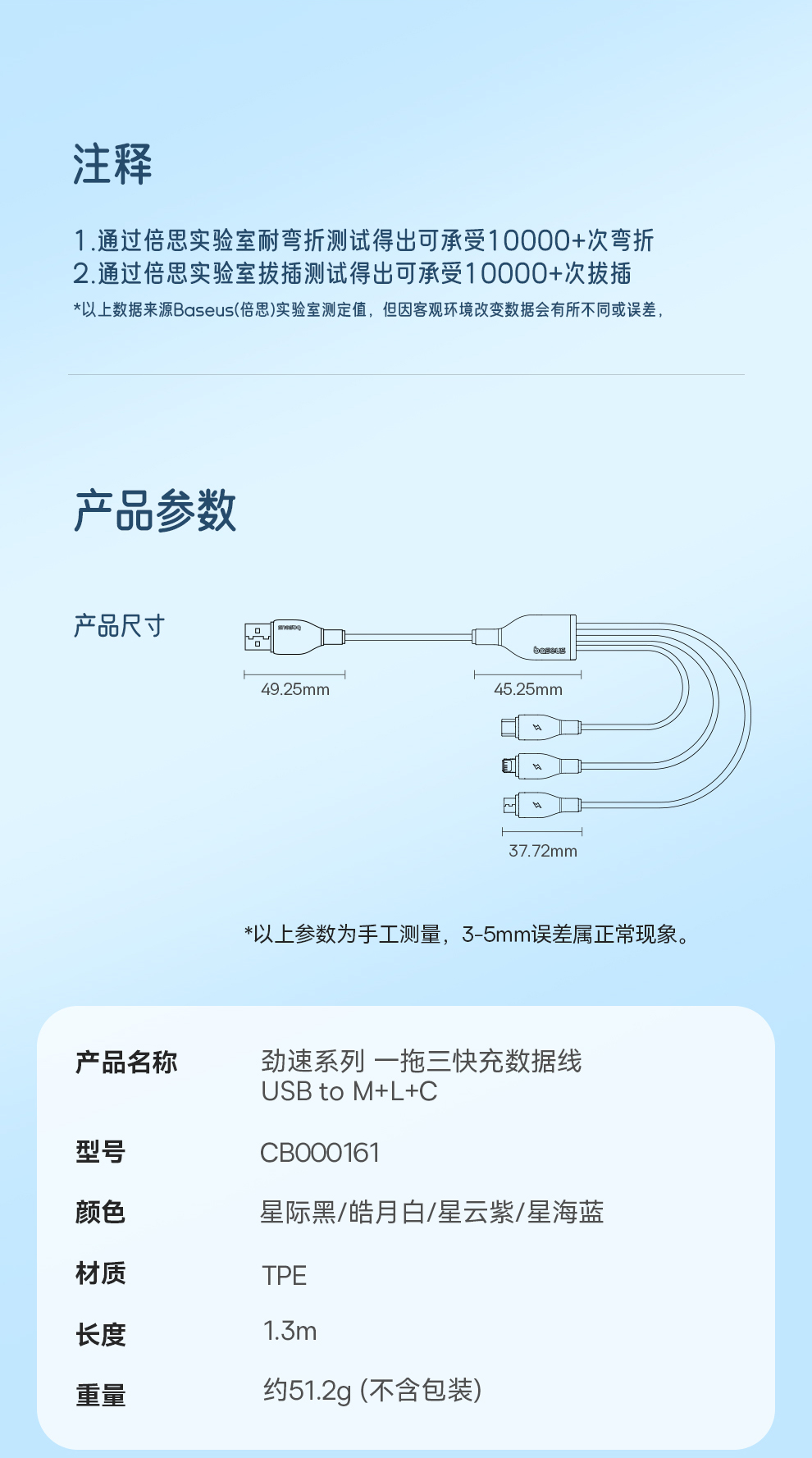 【社群赠品】倍思 劲速系列 一拖三快充充电线 USB to M+L+C 3.5A