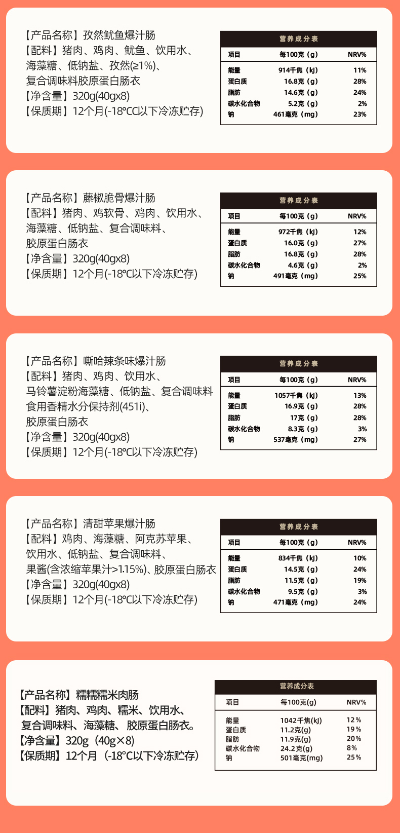 追肉记无添加爆汁肉肠纯肉烤肠儿童早餐肠台式烤肠 320g*3盒