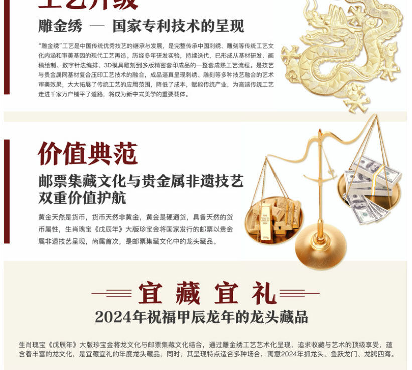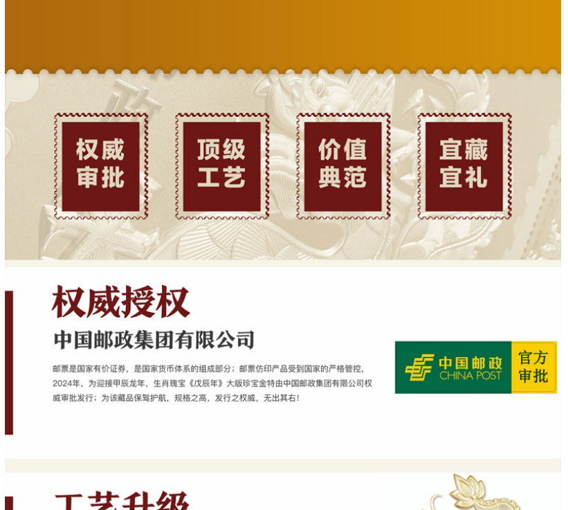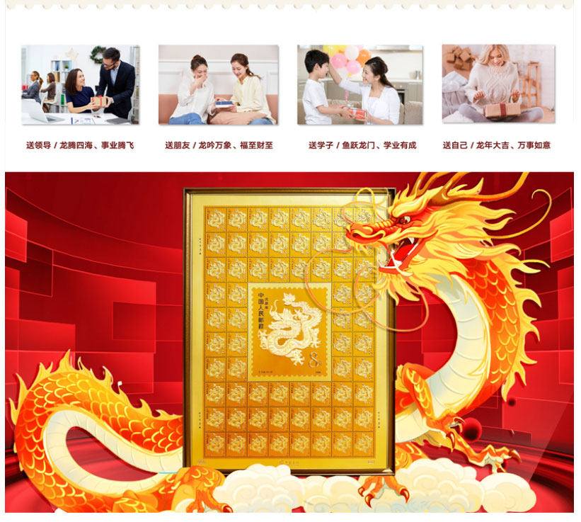 预定!中国集邮首轮龙年生肖邮票金足大版