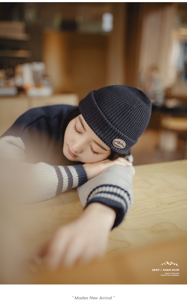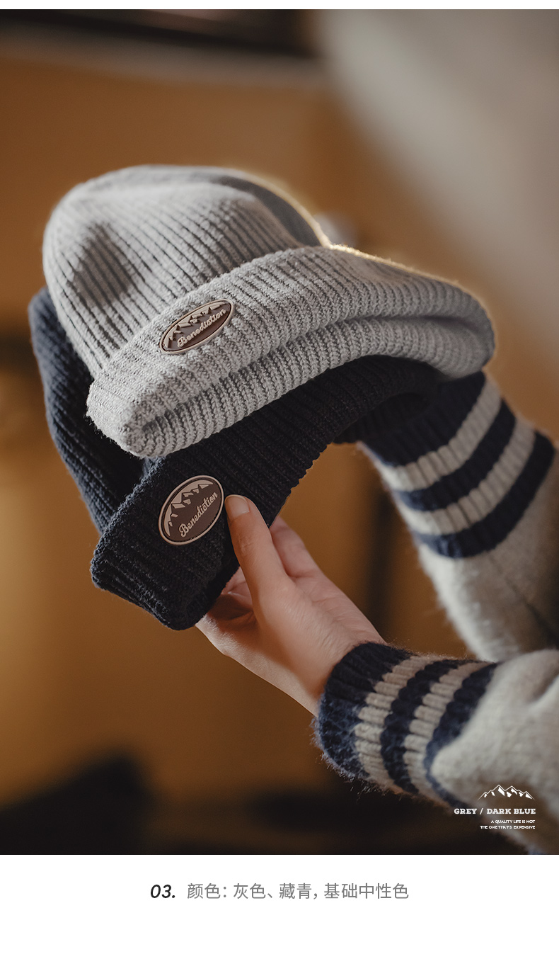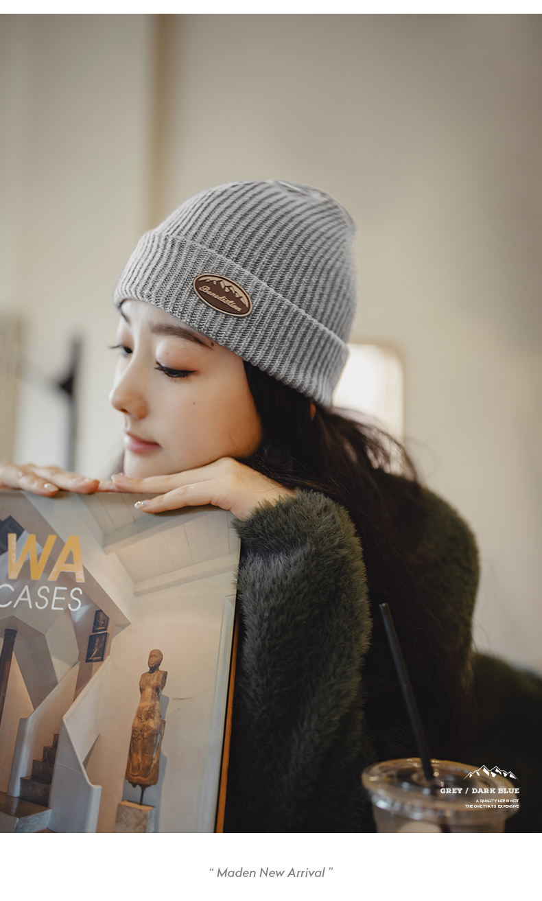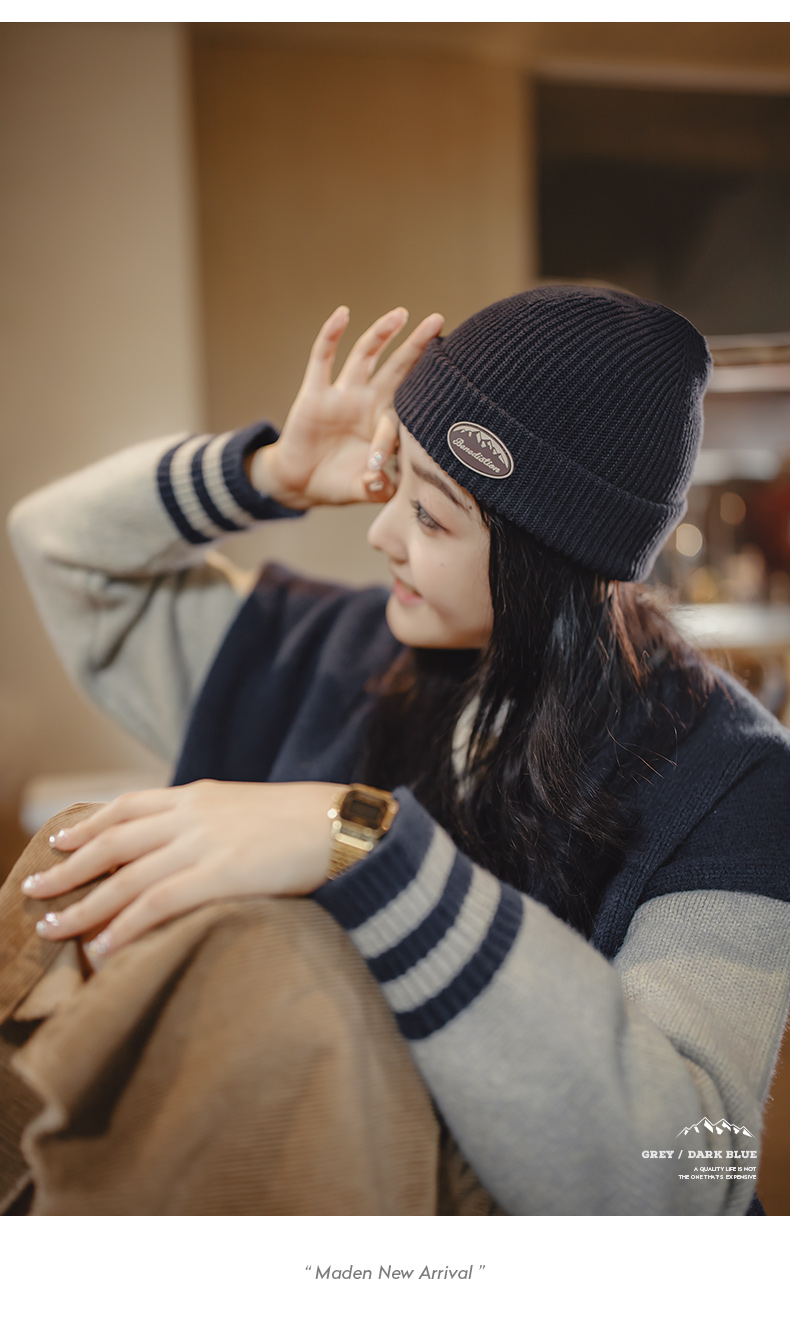 马登女装美式复古休闲针织冷帽秋冬新款毛线百搭堆堆帽保暖月子帽