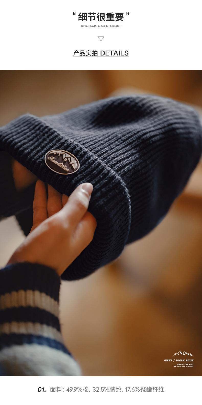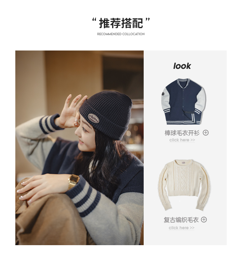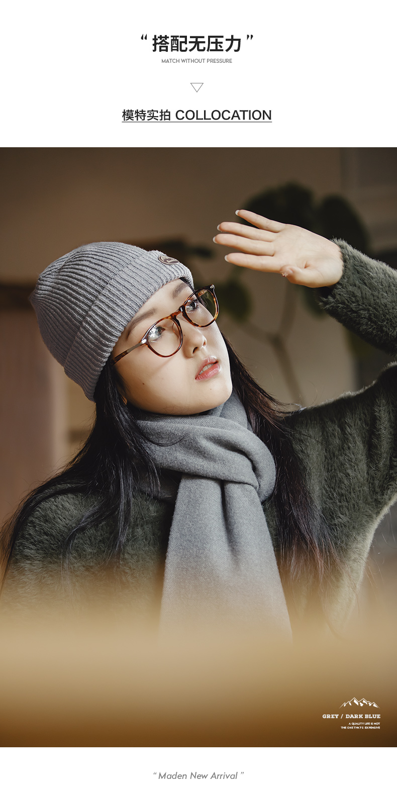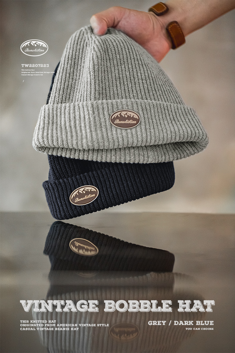 马登女装美式复古休闲针织冷帽秋冬新款毛线百搭堆堆帽保暖月子帽