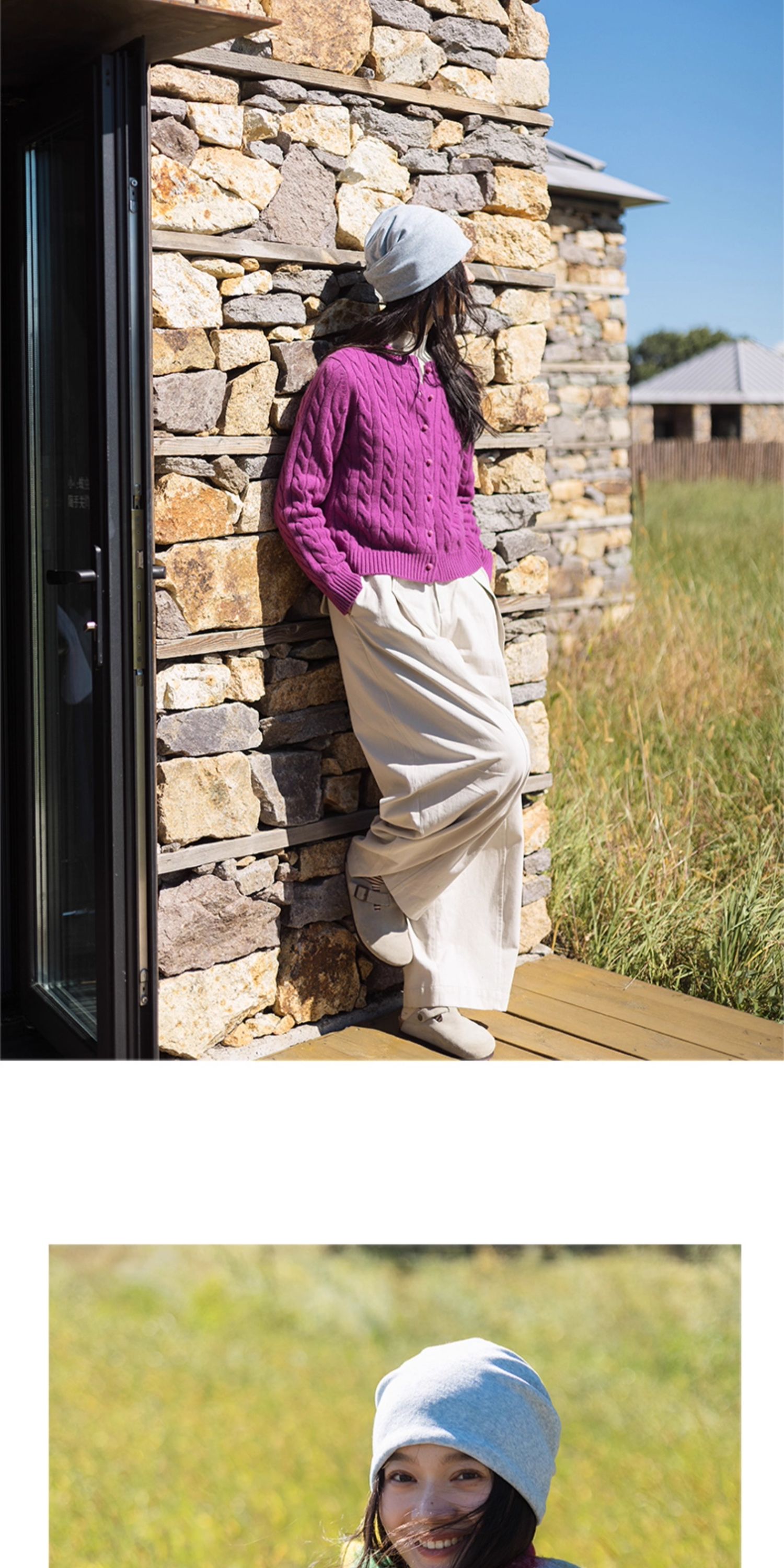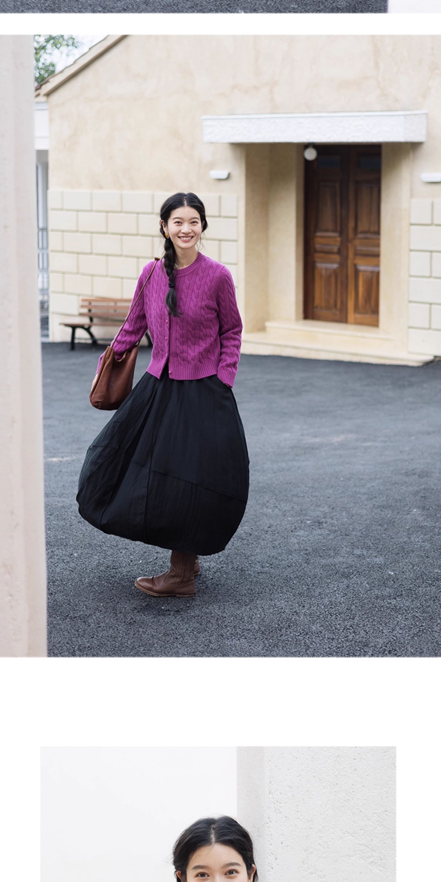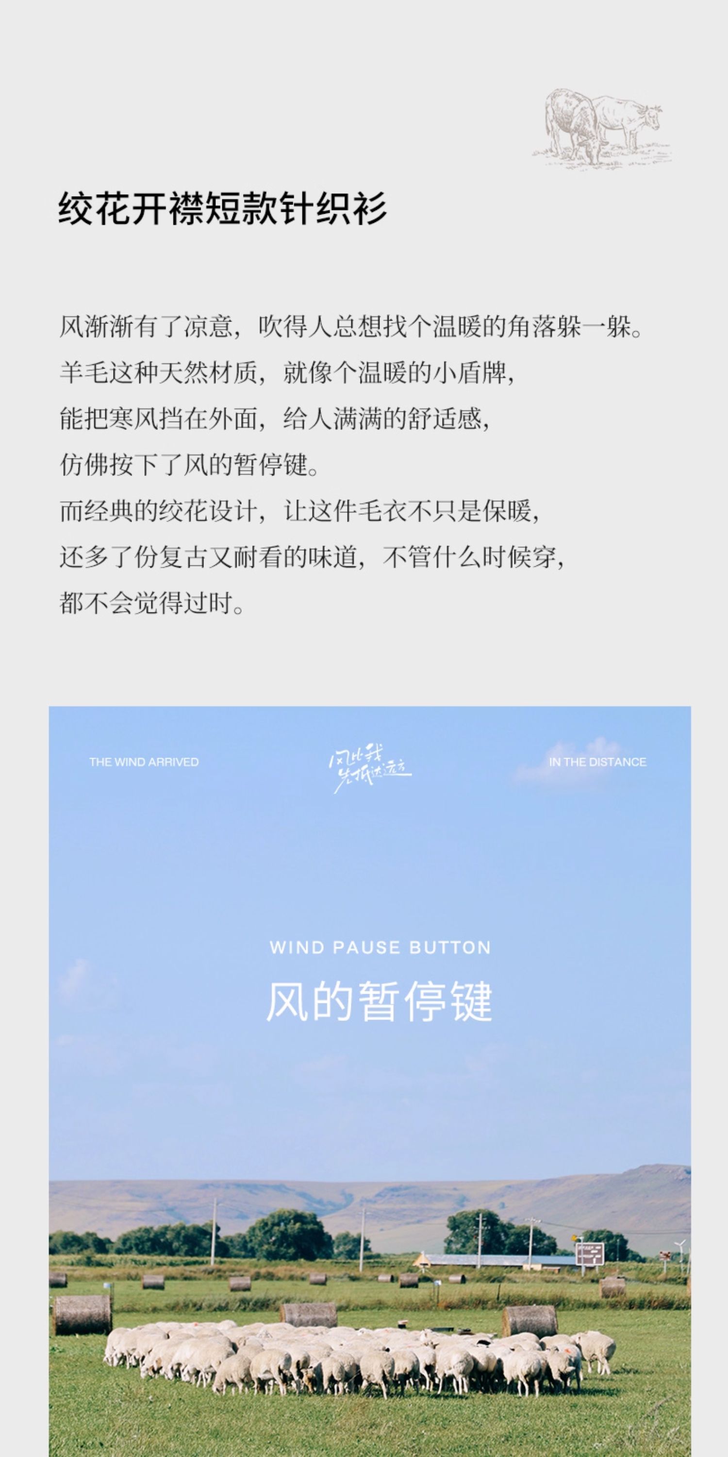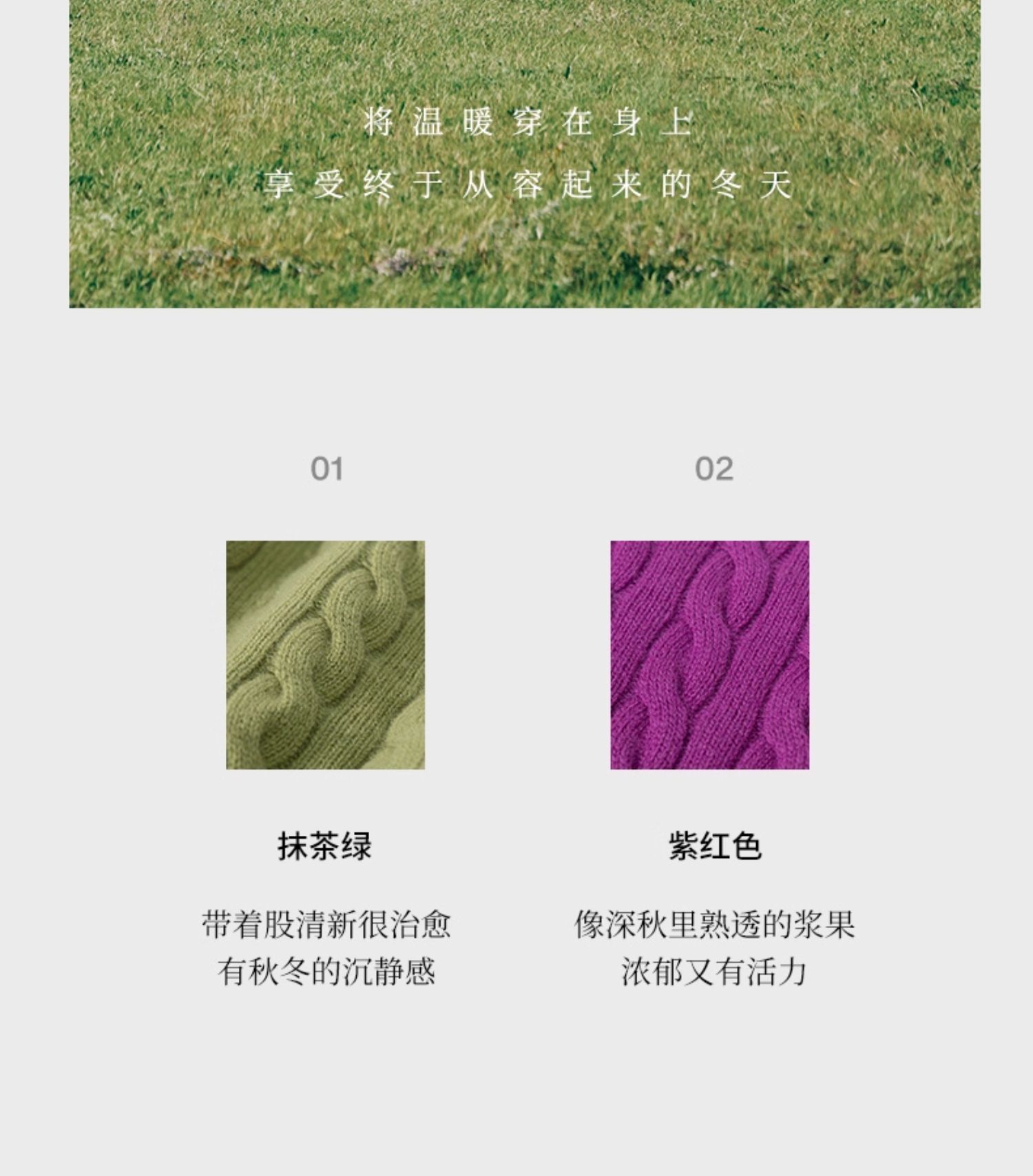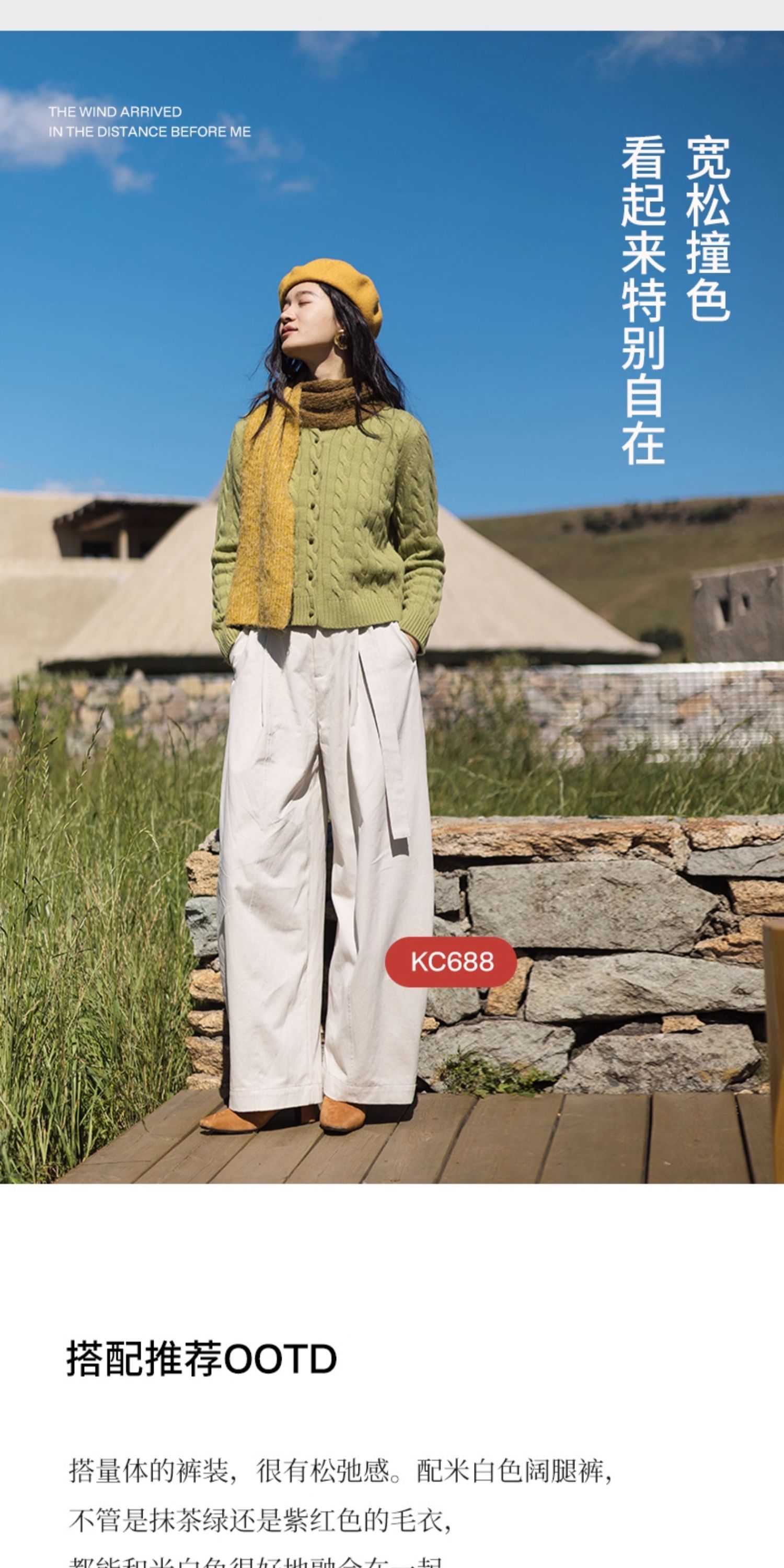 特绽放649朵/纯羊毛绞花圆领短款开襟毛针织衫女秋冬新款毛衣外套
