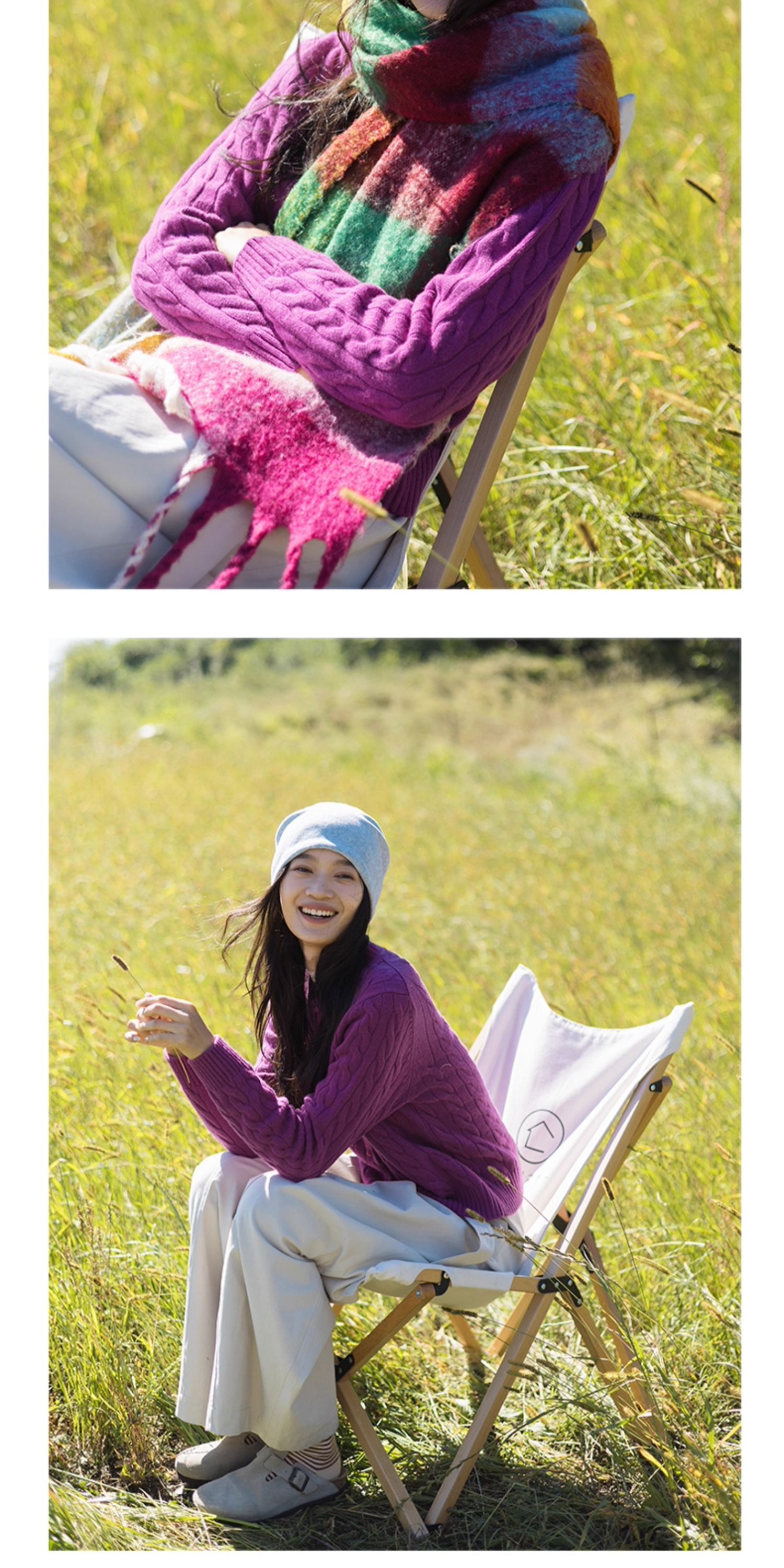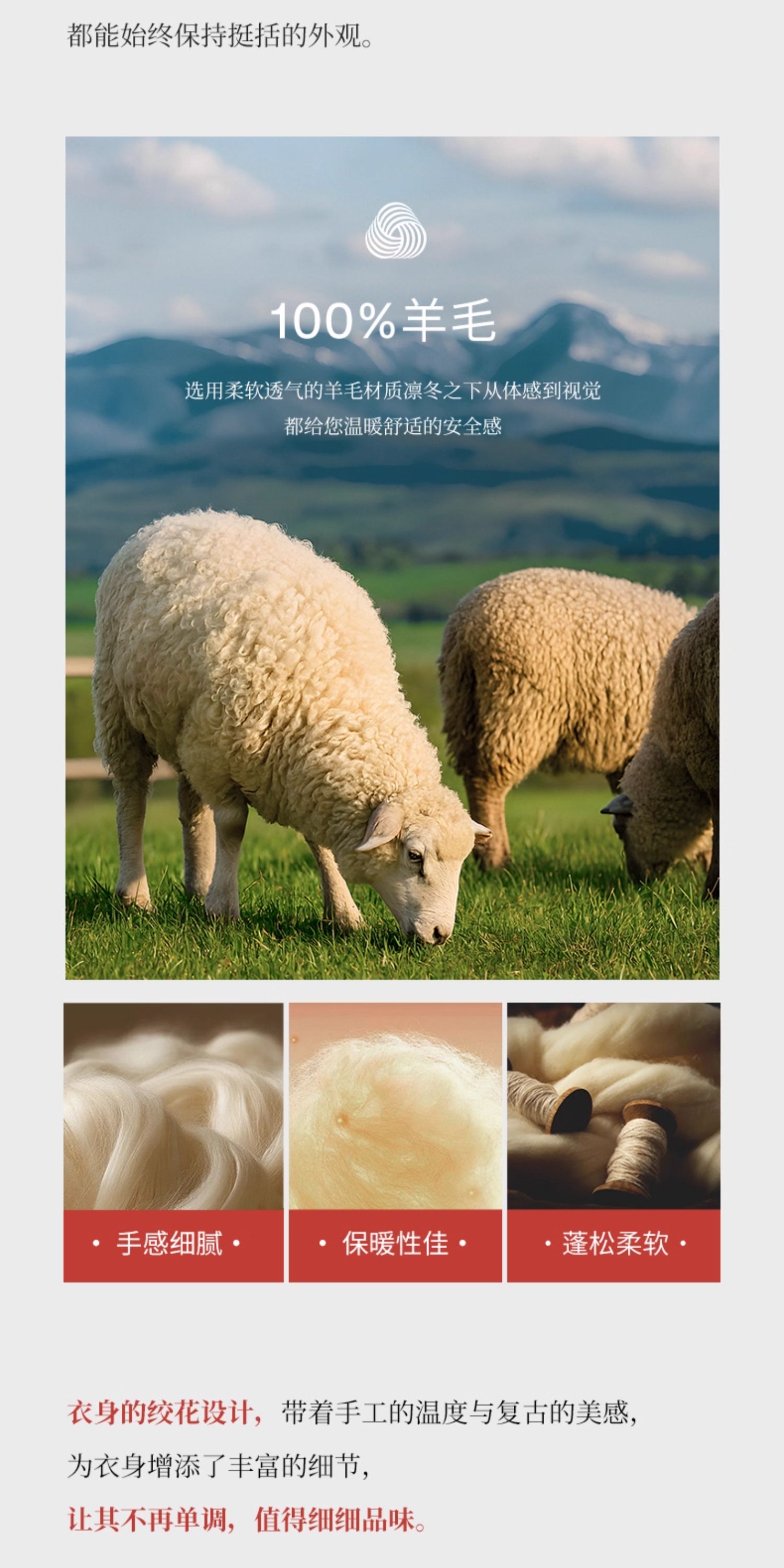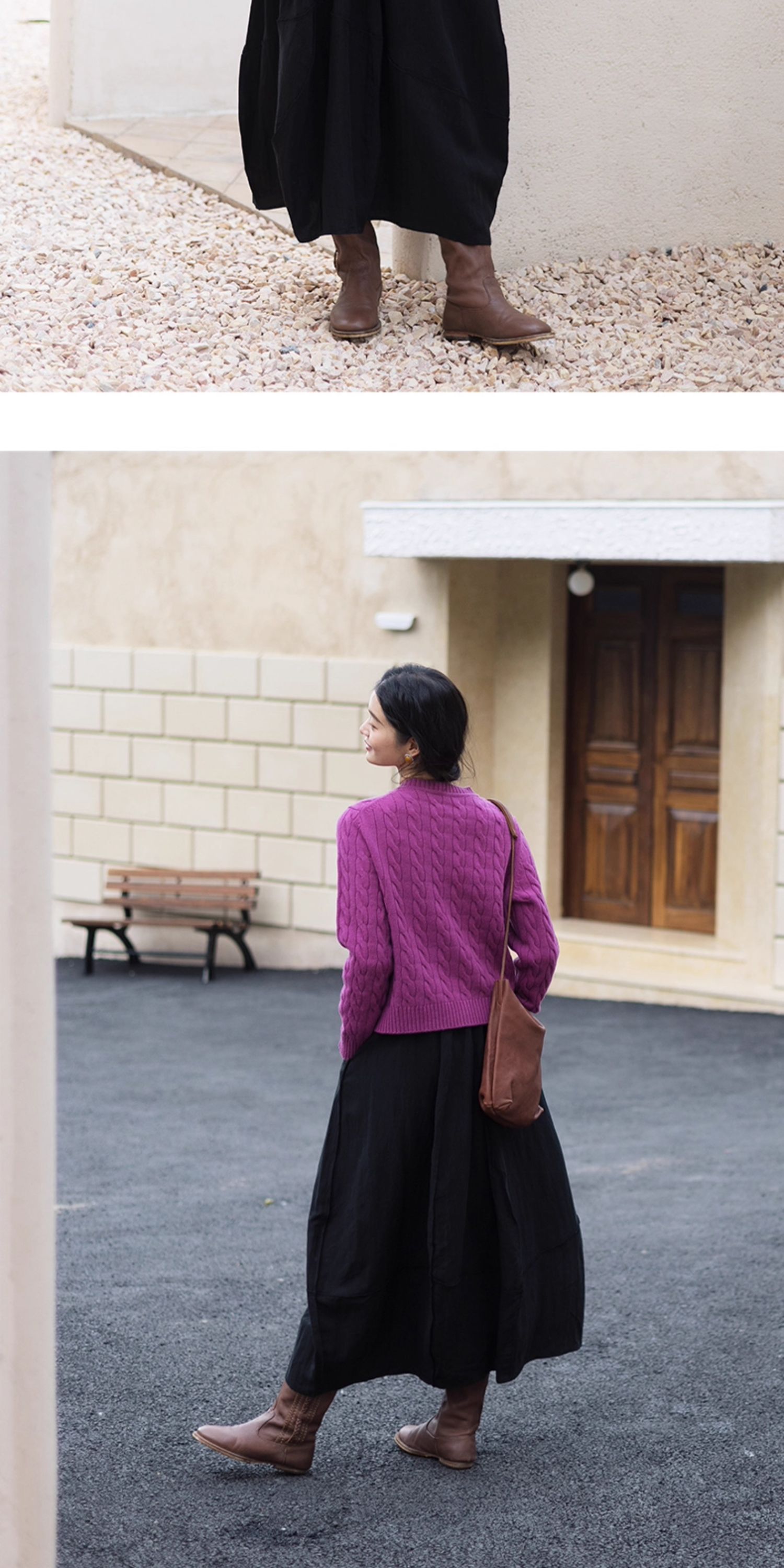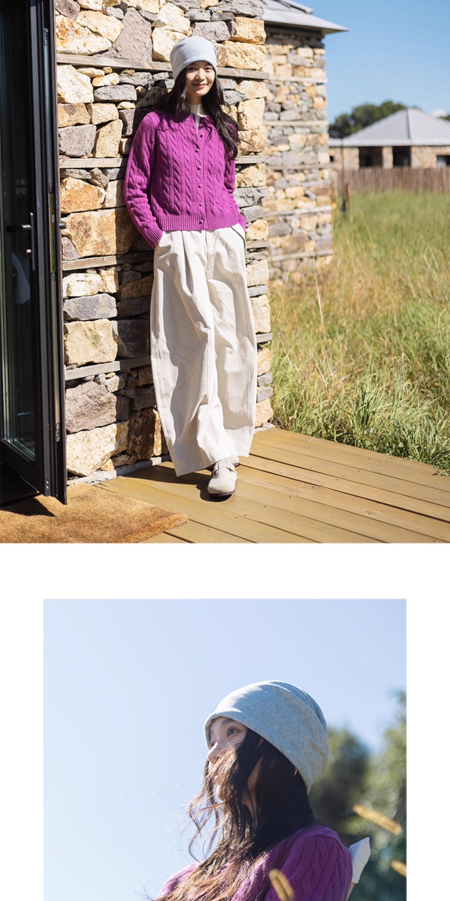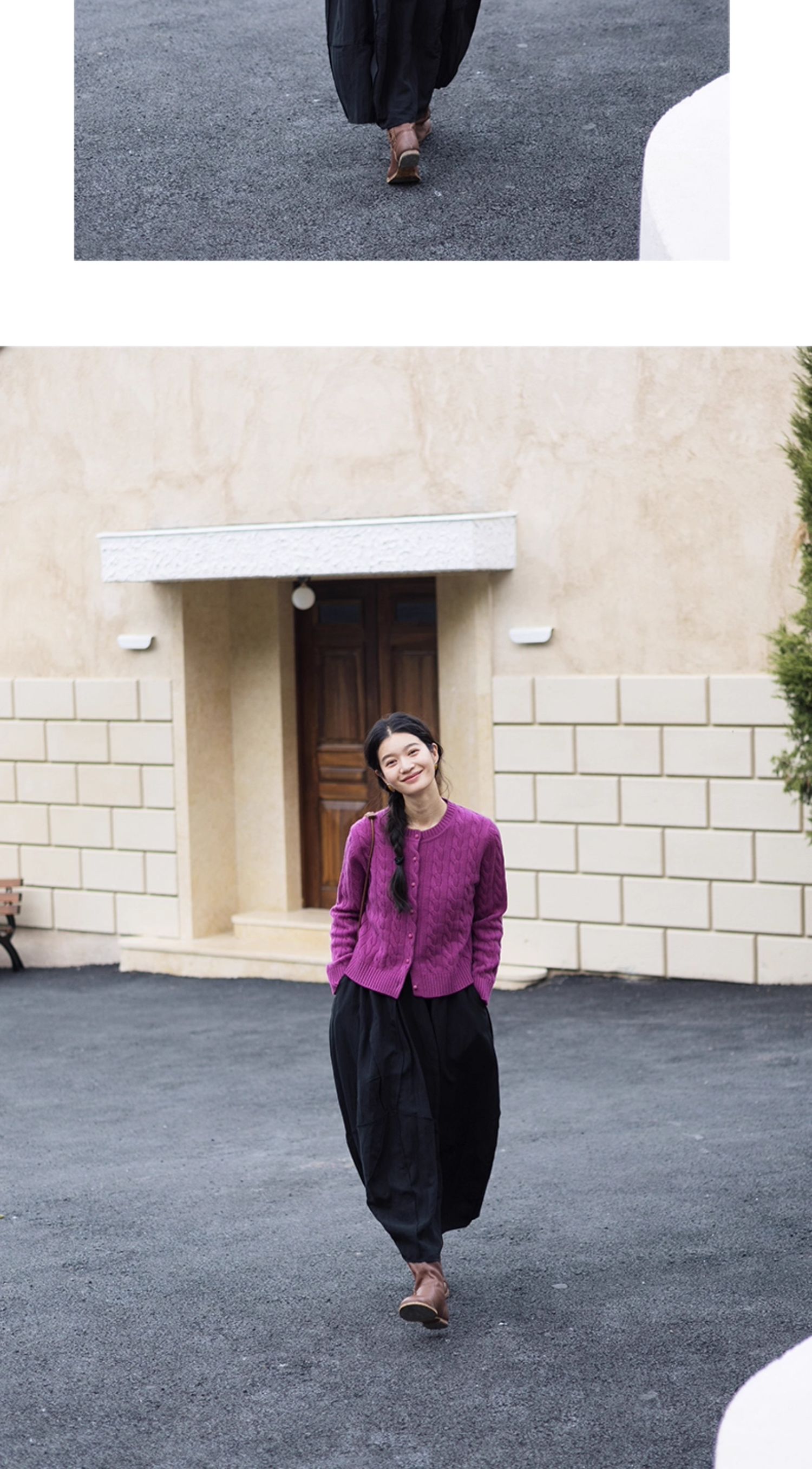 特绽放649朵/纯羊毛绞花圆领短款开襟毛针织衫女秋冬新款毛衣外套