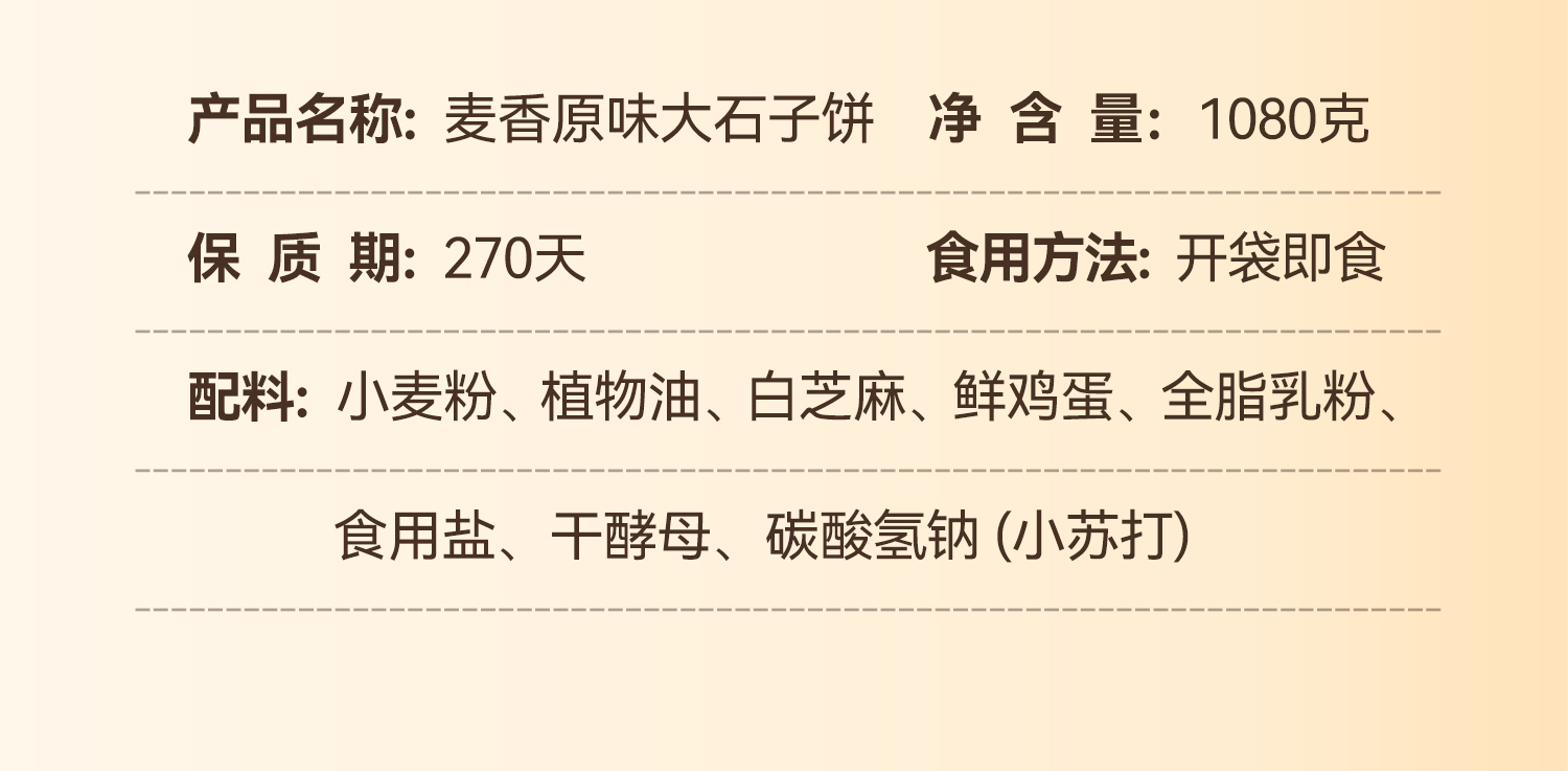 【品名】【礼盒装】红谷林麦香大石子饼 非油炸 石烤饼干 独立包装 过年送礼必备 1080g/箱 【规格】1080g/箱(约40小袋) 【产地】国内 【保质期】270天 【发货包装】独立包装箱 【发货地】陕西 【发货快递】申通、邮政随机发 【不发货区域】新疆、西藏、港澳台 【发货时效】48-72小时,周末节假日顺延 【售后说明】 1、该产品属于食品类,不支持无理由退换货; 2、产品已经发出的情况下,不可更改地址,拒绝任何形式的拒签,收到产品后当场验货; 3、如出现异常情况,请带面单+产品拍照+产品包装照片与我们联系,我们会第一时间处理,如产品有质量问题可在收货24小时之内,联系客服进行售后; 4、留错地址、电话等信息导致货物不能正常送达均不在售后范围内; 5、因快递暴力导致产品品相不好,不影响食用,不在售后范围内不作赔付! |
