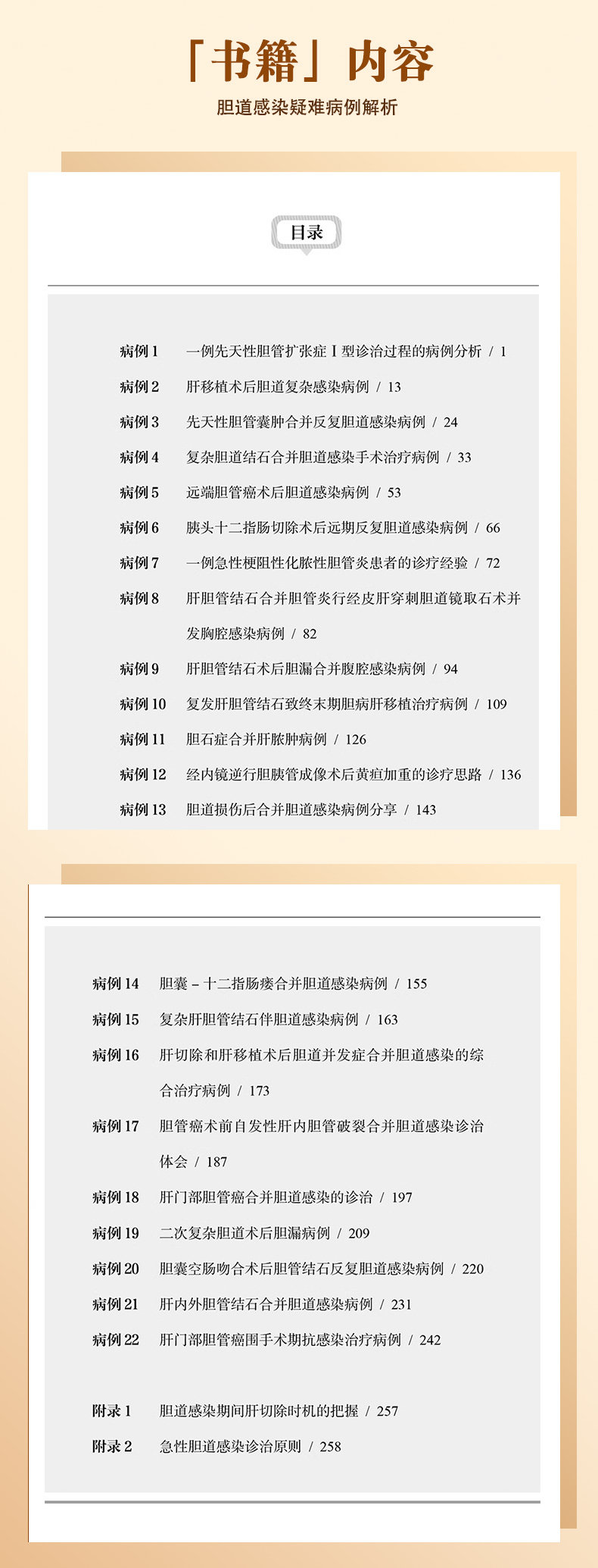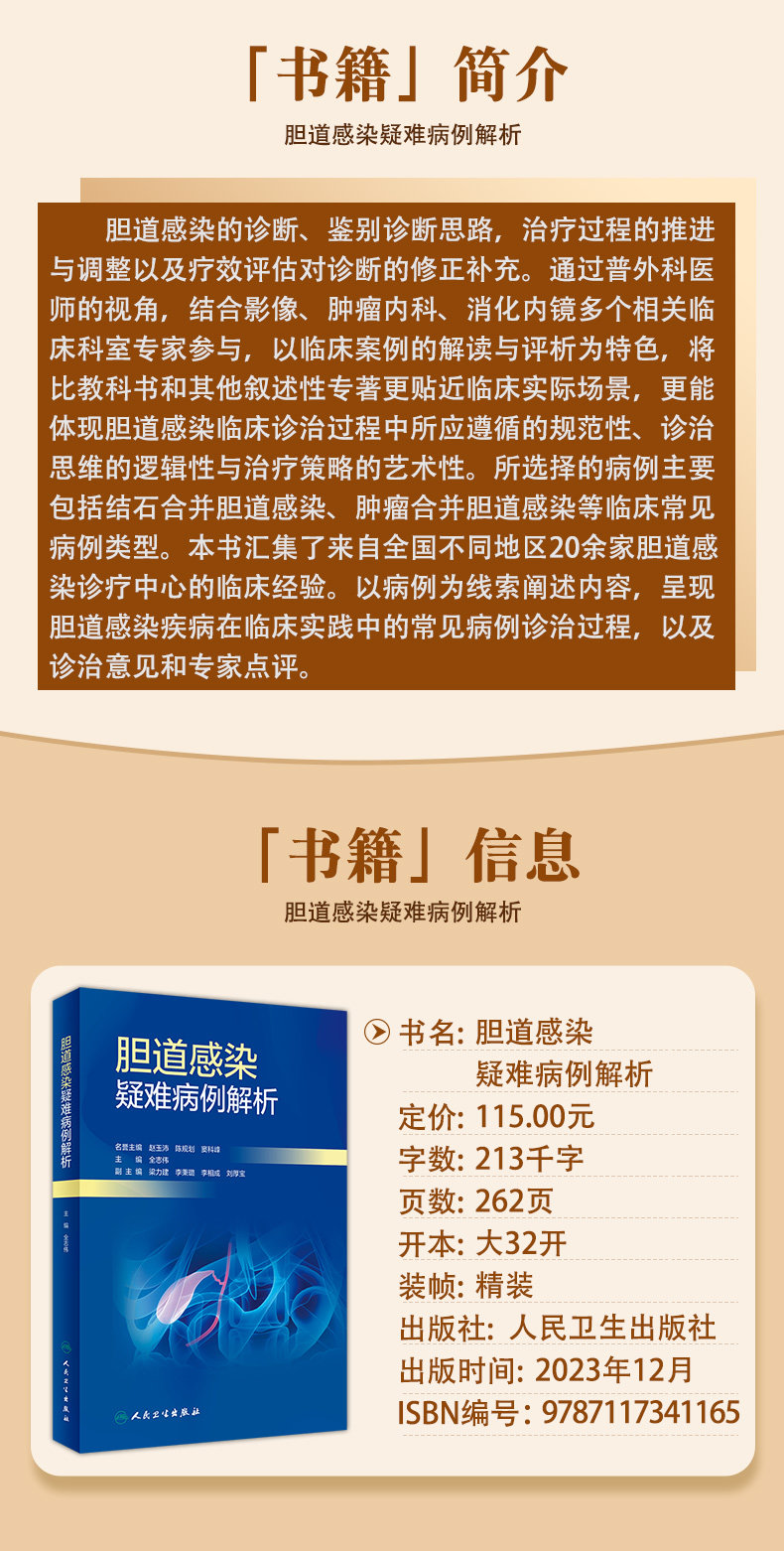 胆道感染的诊断、鉴别诊断思路,治疗过程的推进与调整以及疗效评估对诊断的修正补充。通过普外科医师的视角,结合影像、肿瘤内科、消化内镜多个相关临床科室专家参与,以临床案例的解读与评析为特色,将比教科书和其他叙述性专著更贴近临床实际场景,更能体现胆道感染临床诊治过程中所应遵循的规范性、诊治思维的逻辑性与治疗策略的艺术性。所选择的病例主要包括结石合并胆道感染、肿瘤合并胆道感染等临床常见病例类型。本书汇集了来自全国不同地区20余家胆道感染诊疗中心的临床经验。以病例为线索阐述内容,呈现胆道感染疾病在临床实践中的常见病例诊治过程,以及诊治意见和专家点评。