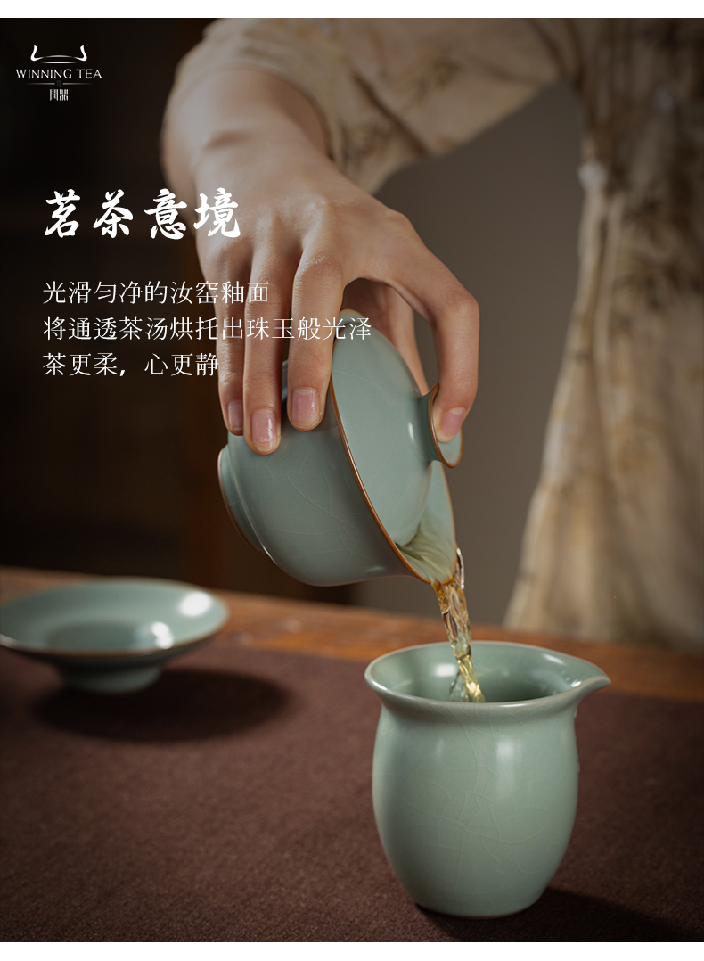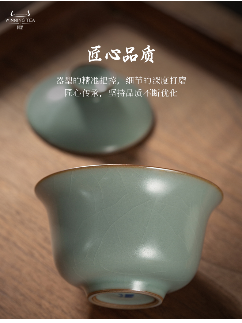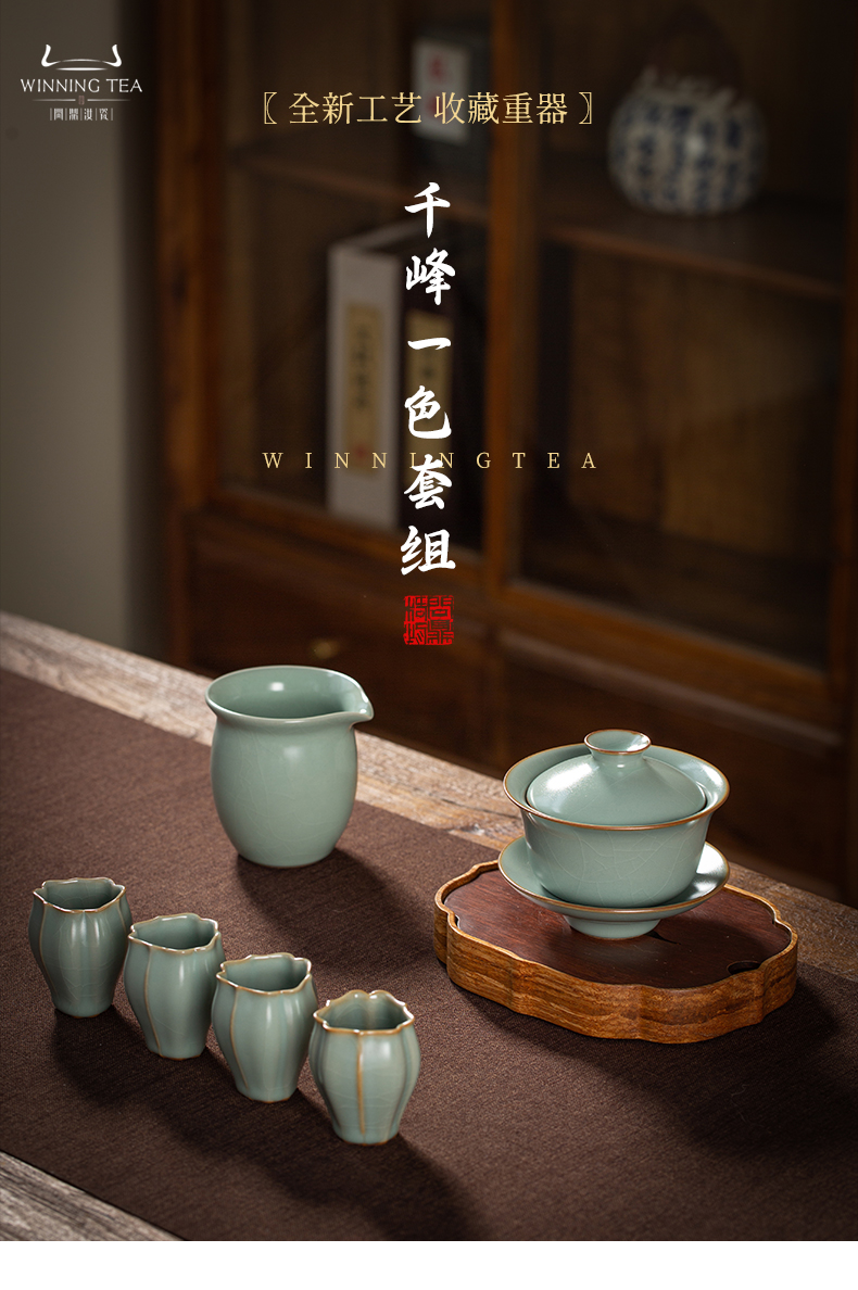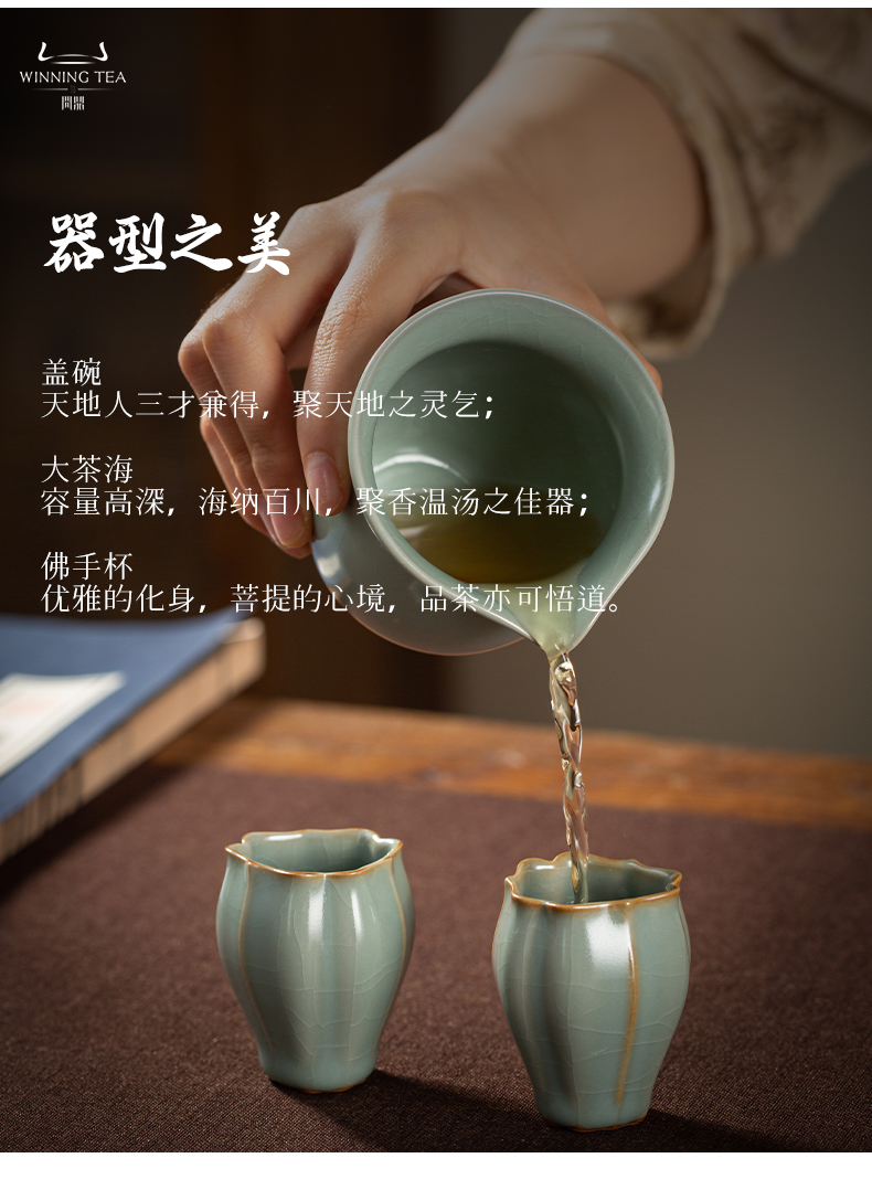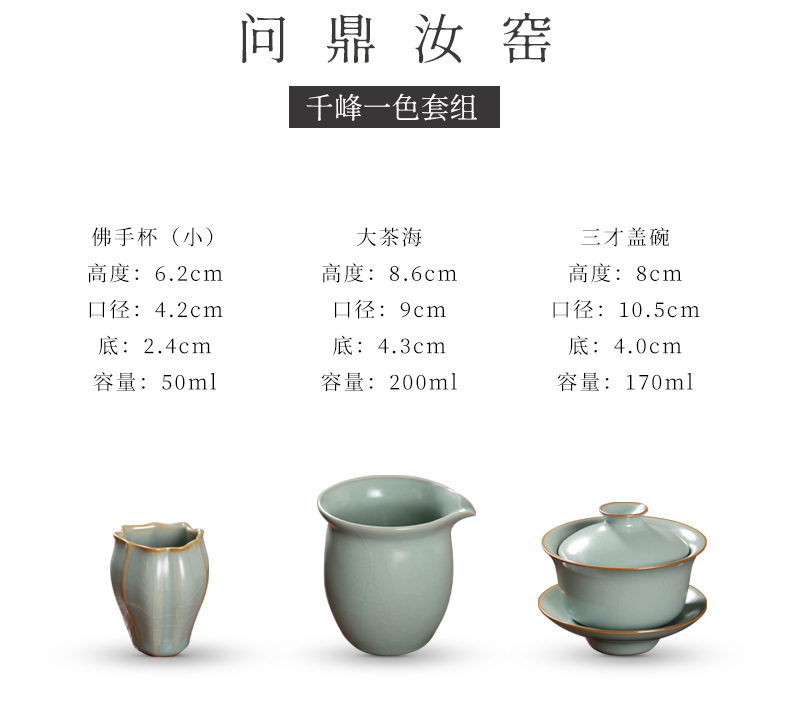 问鼎汝窑千峰一色套组(缺货)(三才盖碗 小佛手杯 大茶海 )