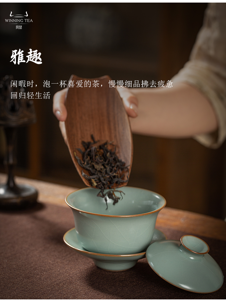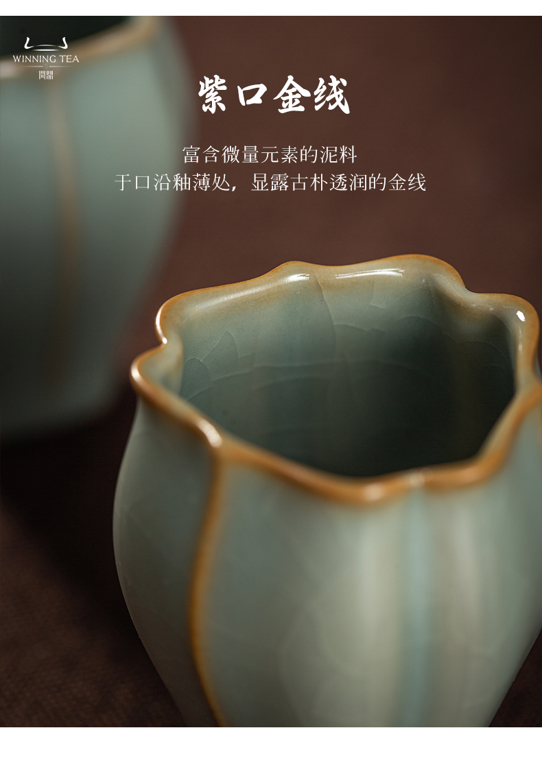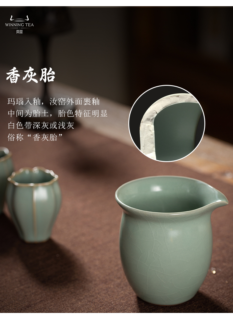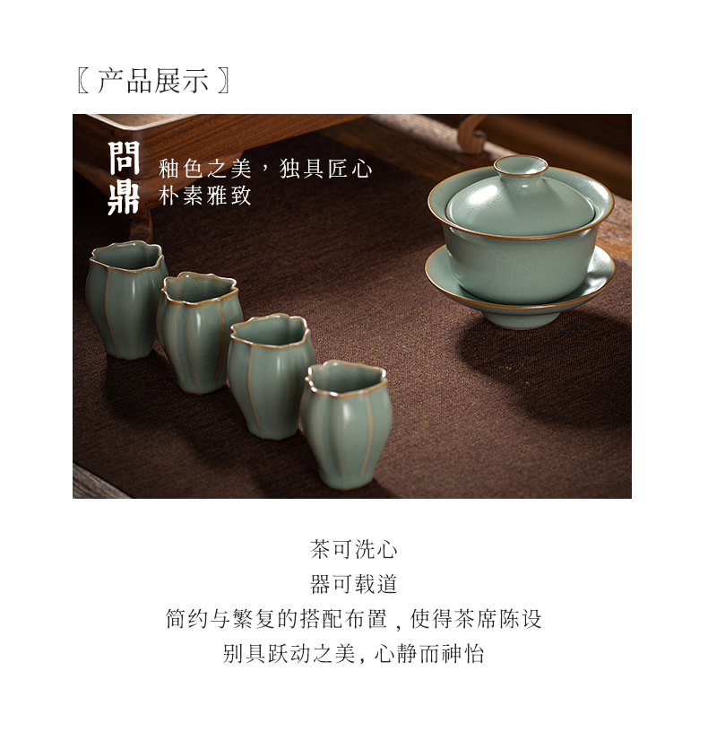问鼎汝窑千峰一色套组(缺货)(三才盖碗 小佛手杯 大茶海 )