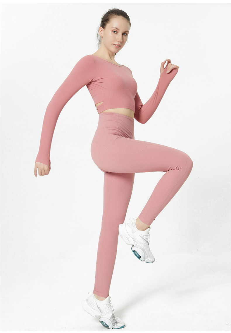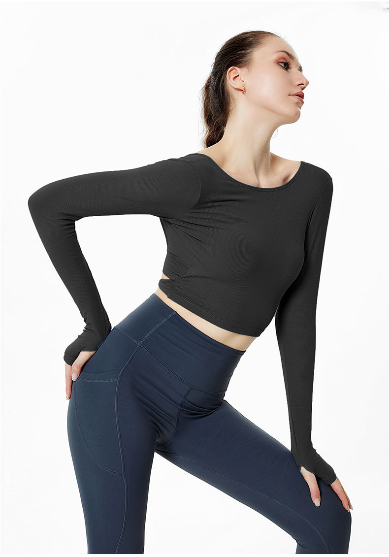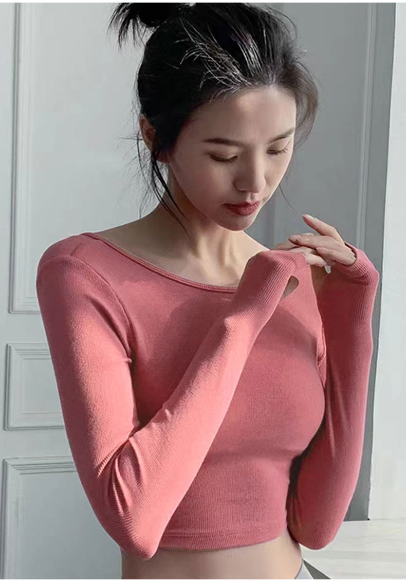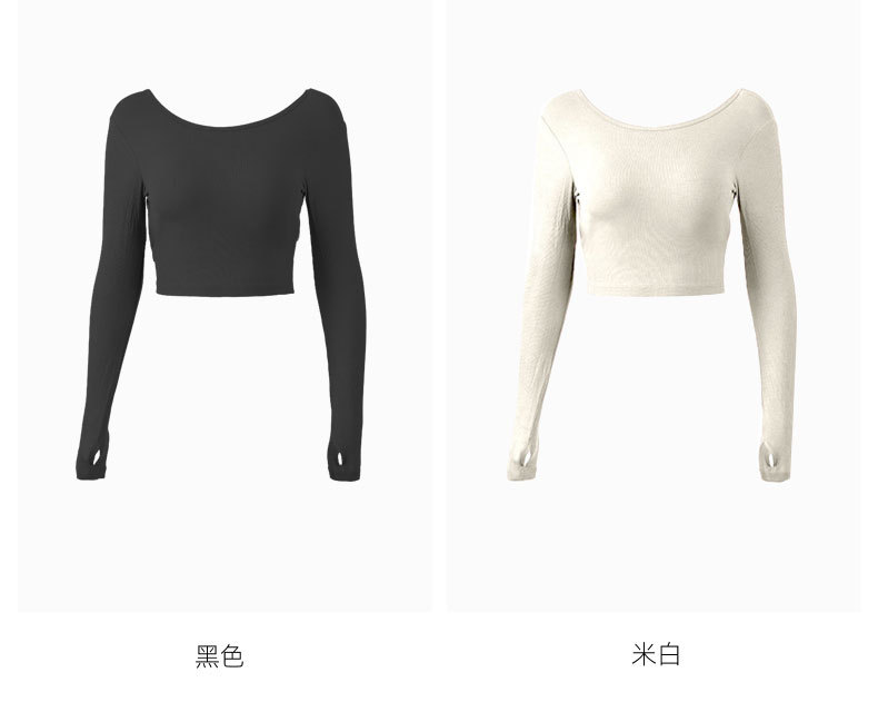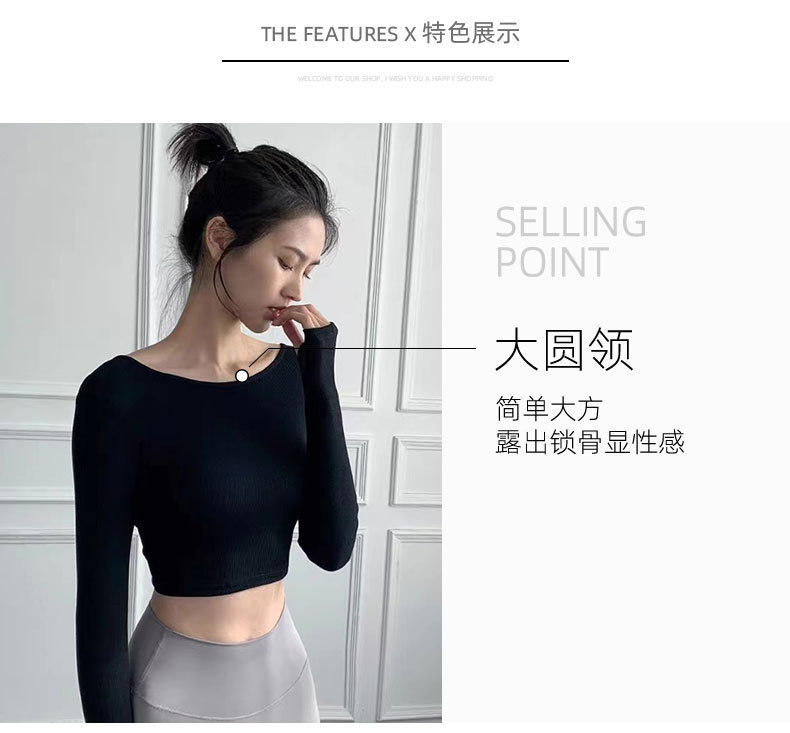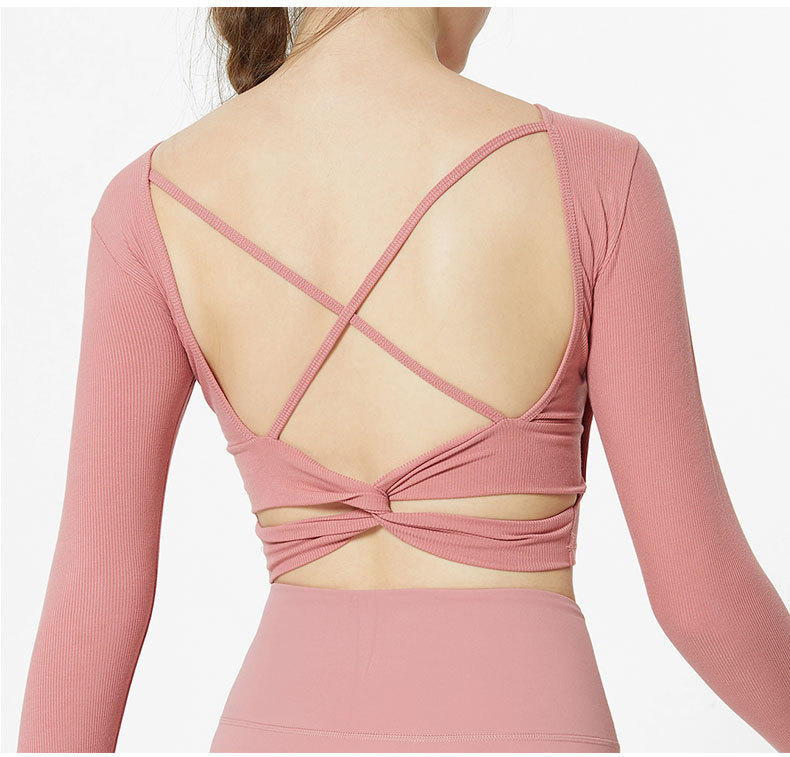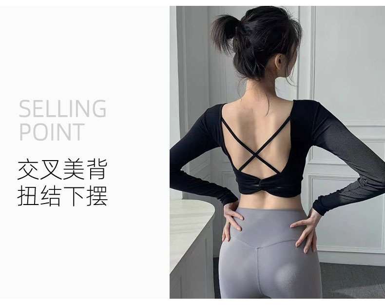 【交叉美背 扭结下摆】瑜伽服长袖上衣性感美背含胸垫长袖衫欧美运动健身内衣文胸瑜伽服