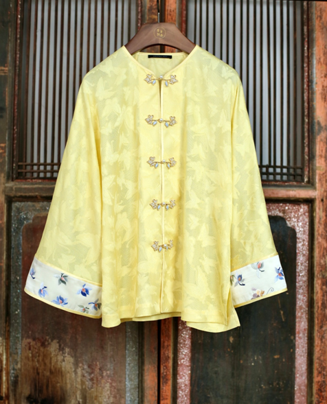 盛唐牡丹盛奢系列| 鹅黄色真丝四径绞罗手绣外套