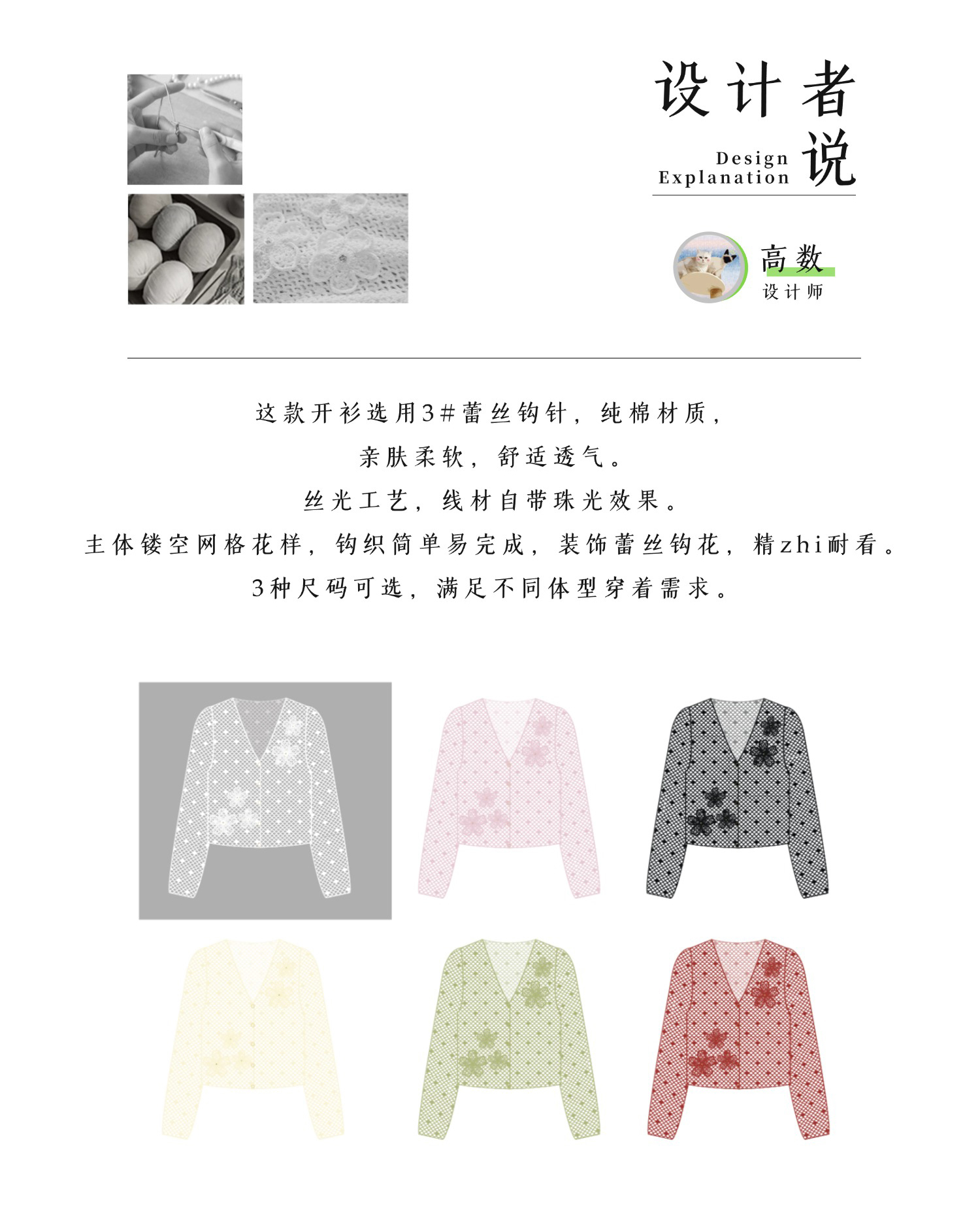 苏苏姐家细雨开衫手工DIY钩针蕾丝线毛线团自制材料包