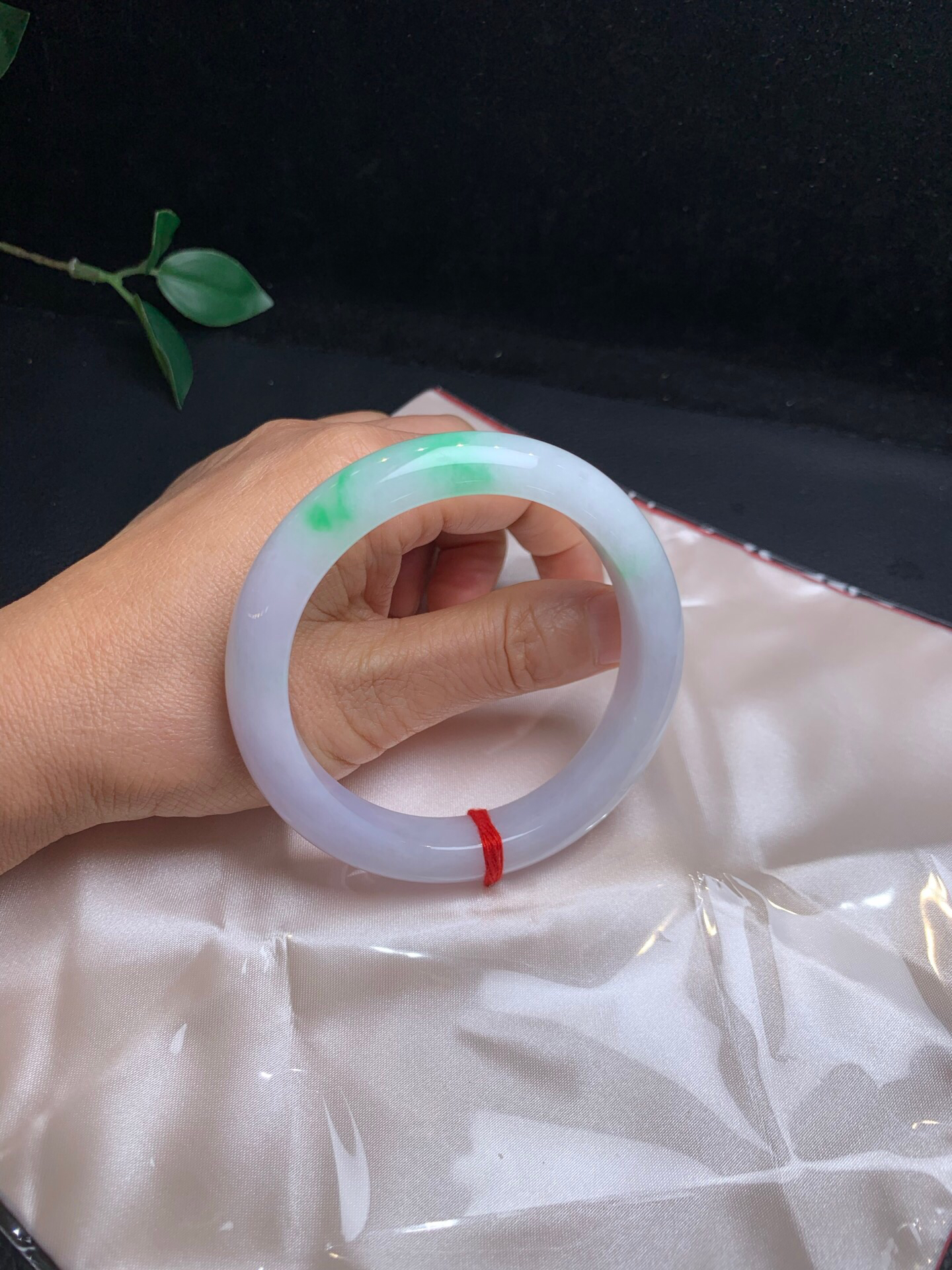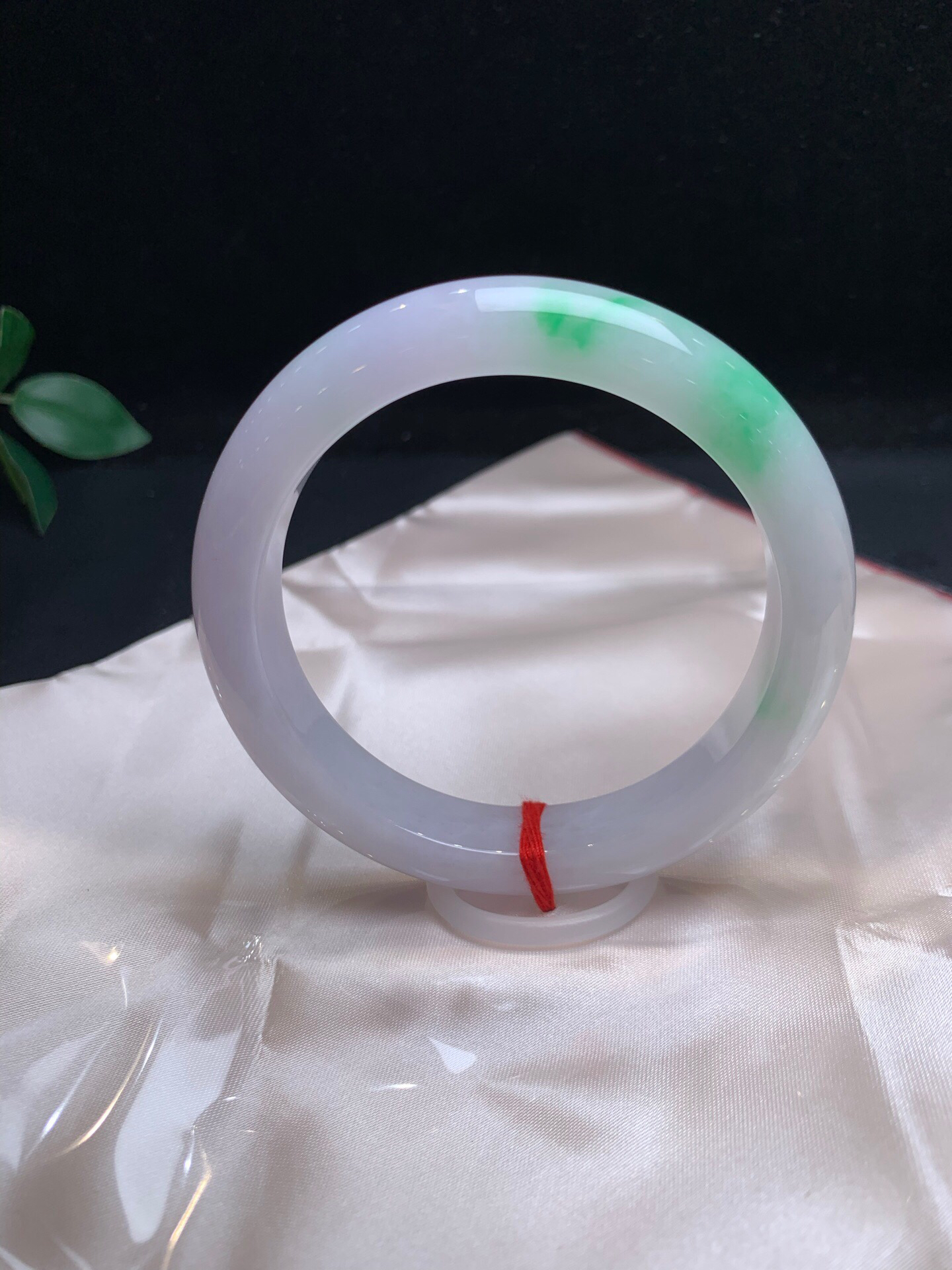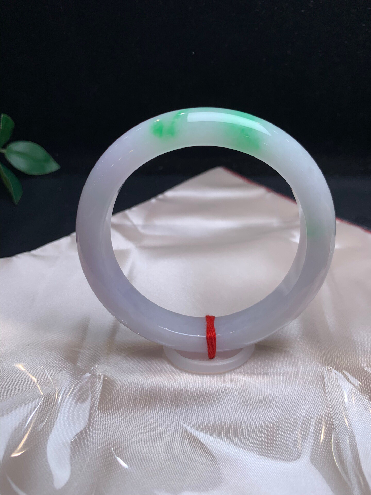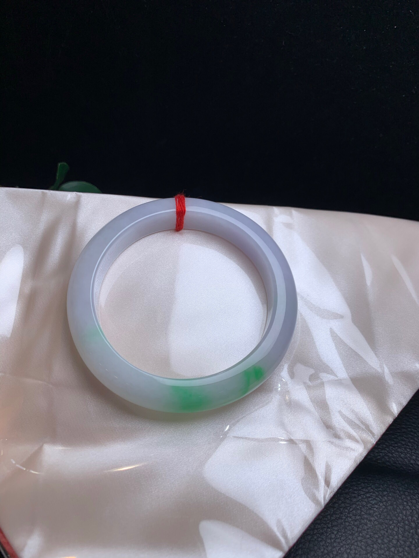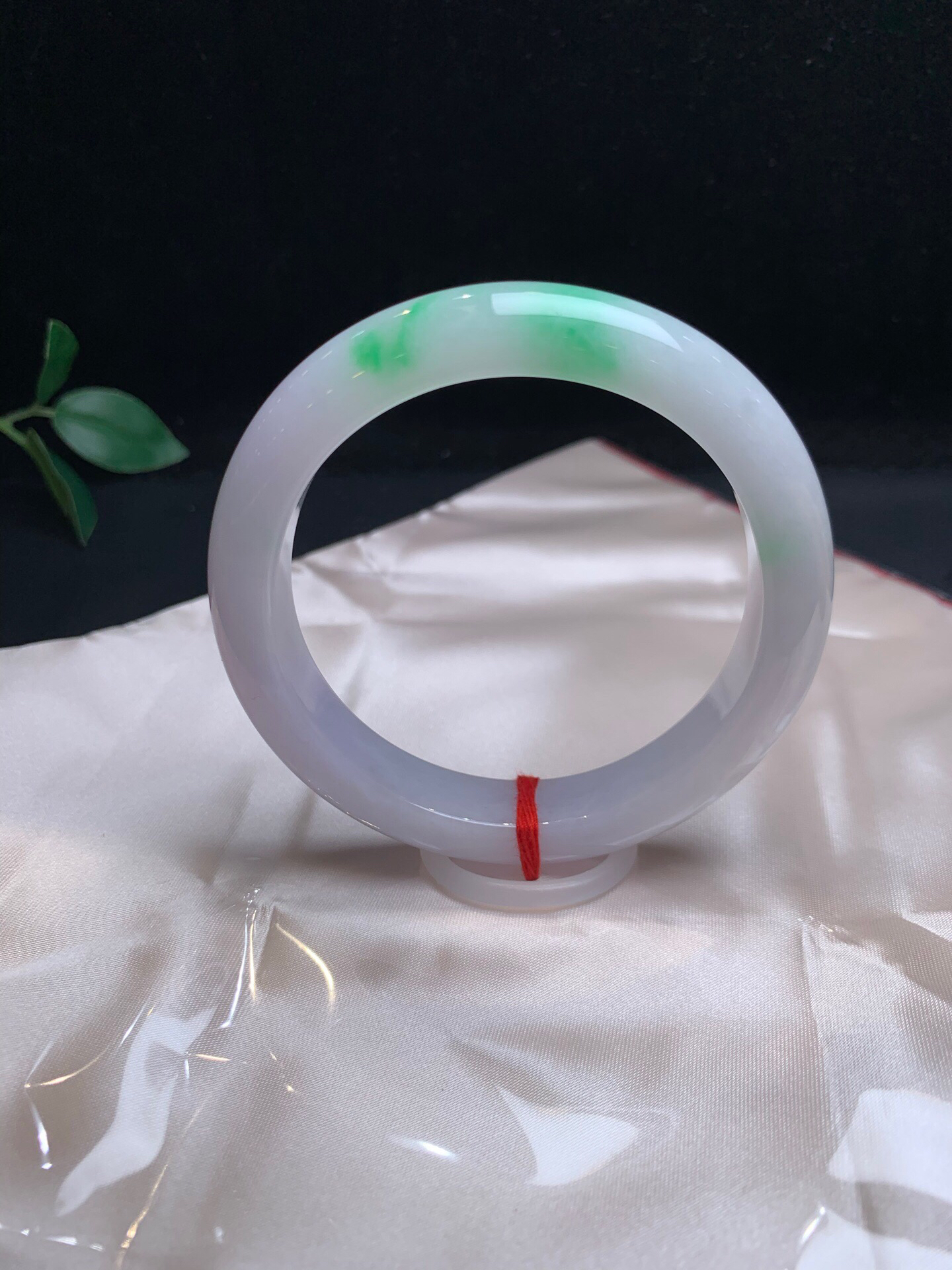 620450,60淡春彩手镯,12.5/8.mm,淡淡的紫底,在自然光下接近白月光,一截飘阳绿色,干净完美,很秀气 。超值价💰46500 #优石客珠宝#香玉荟萃