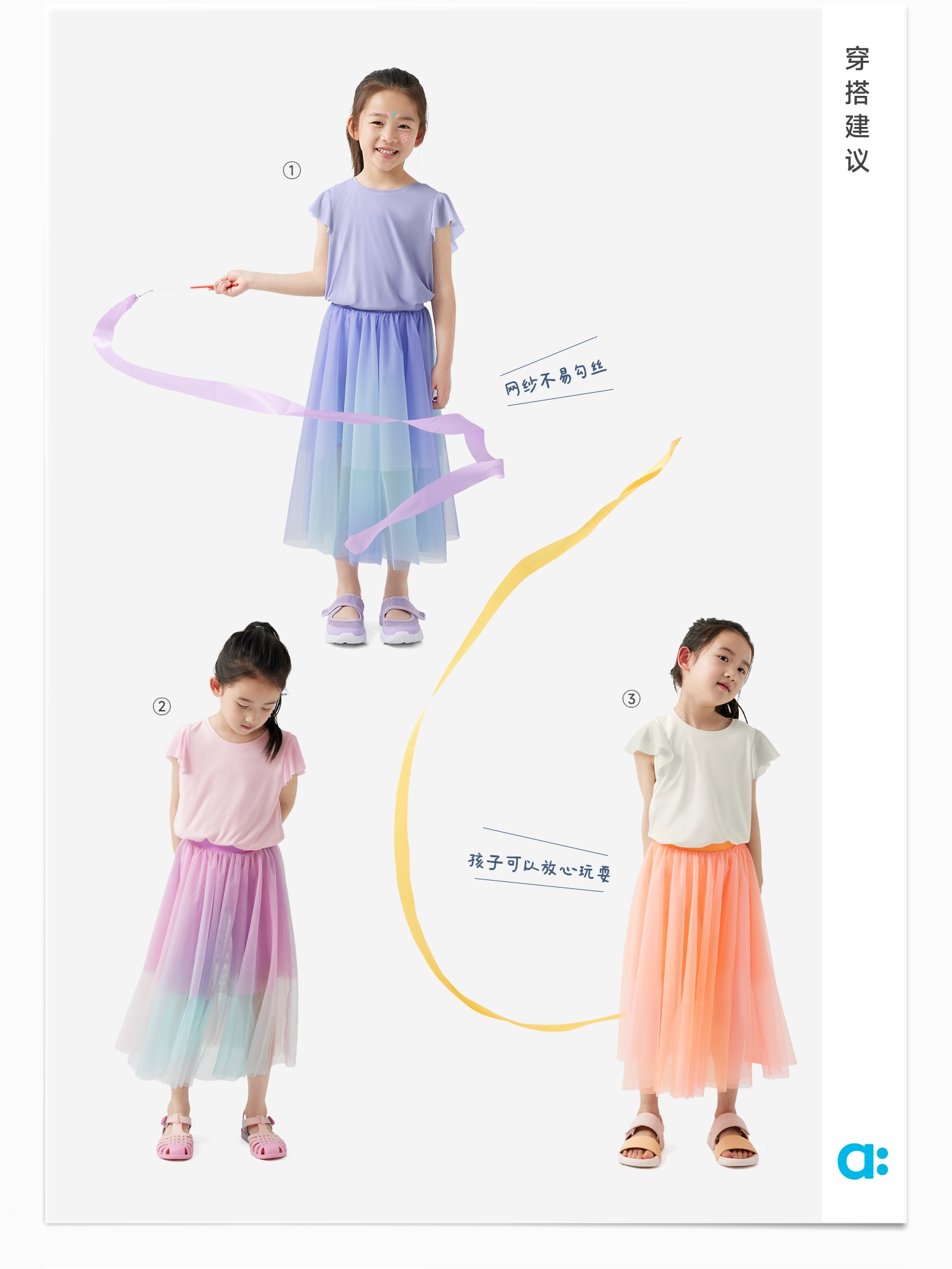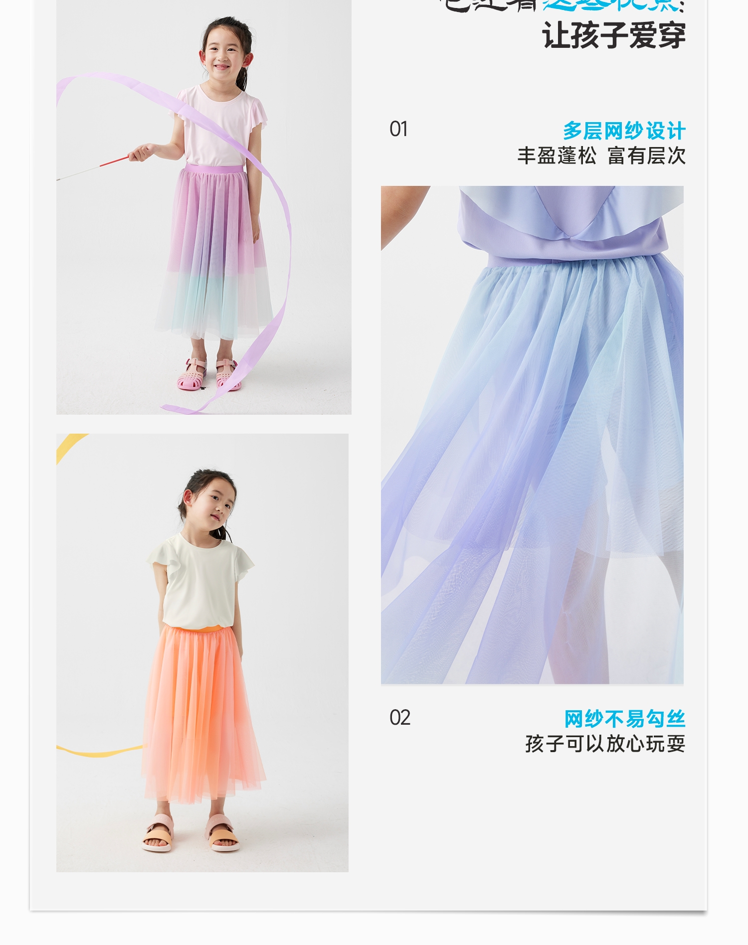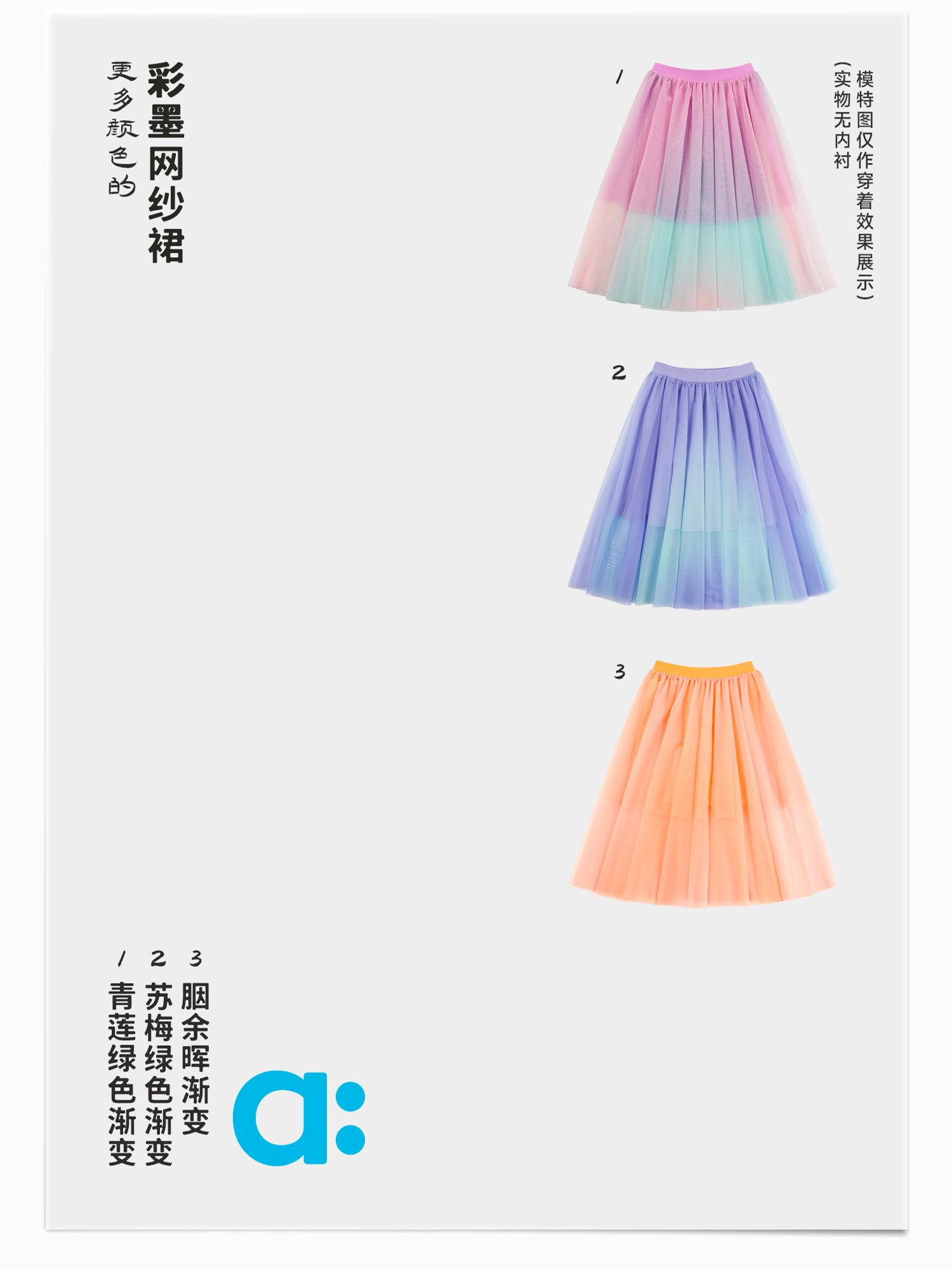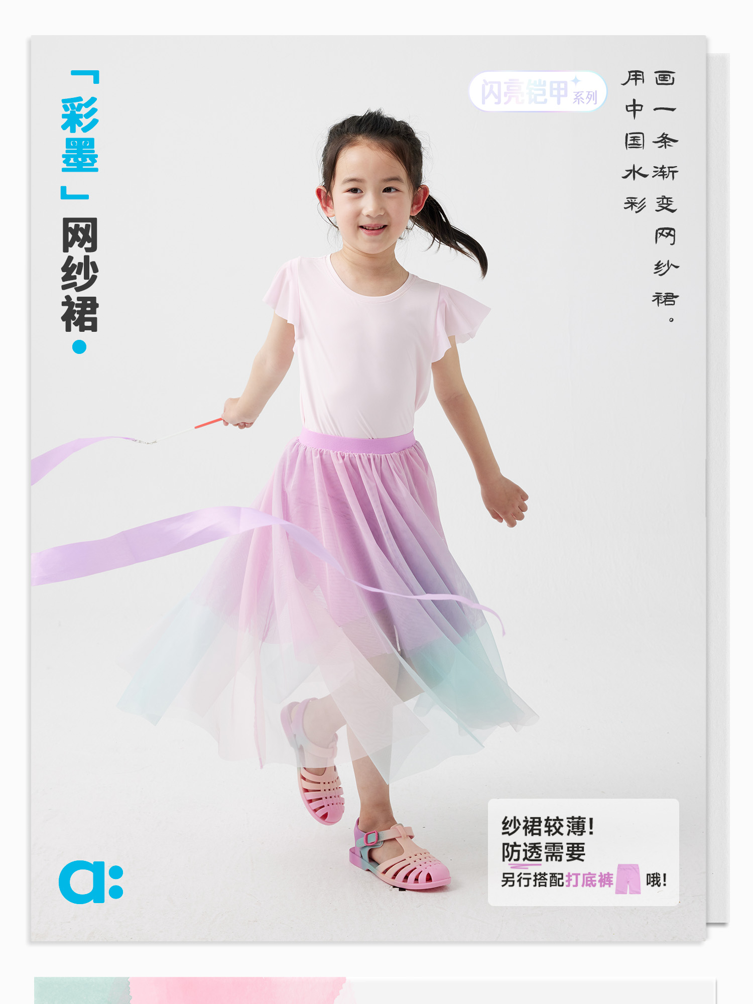【夏Vol.3-闪亮铠甲】幼岚「薄荷皮」彩墨网纱裙凉感透气新中式儿童半身裙ZY