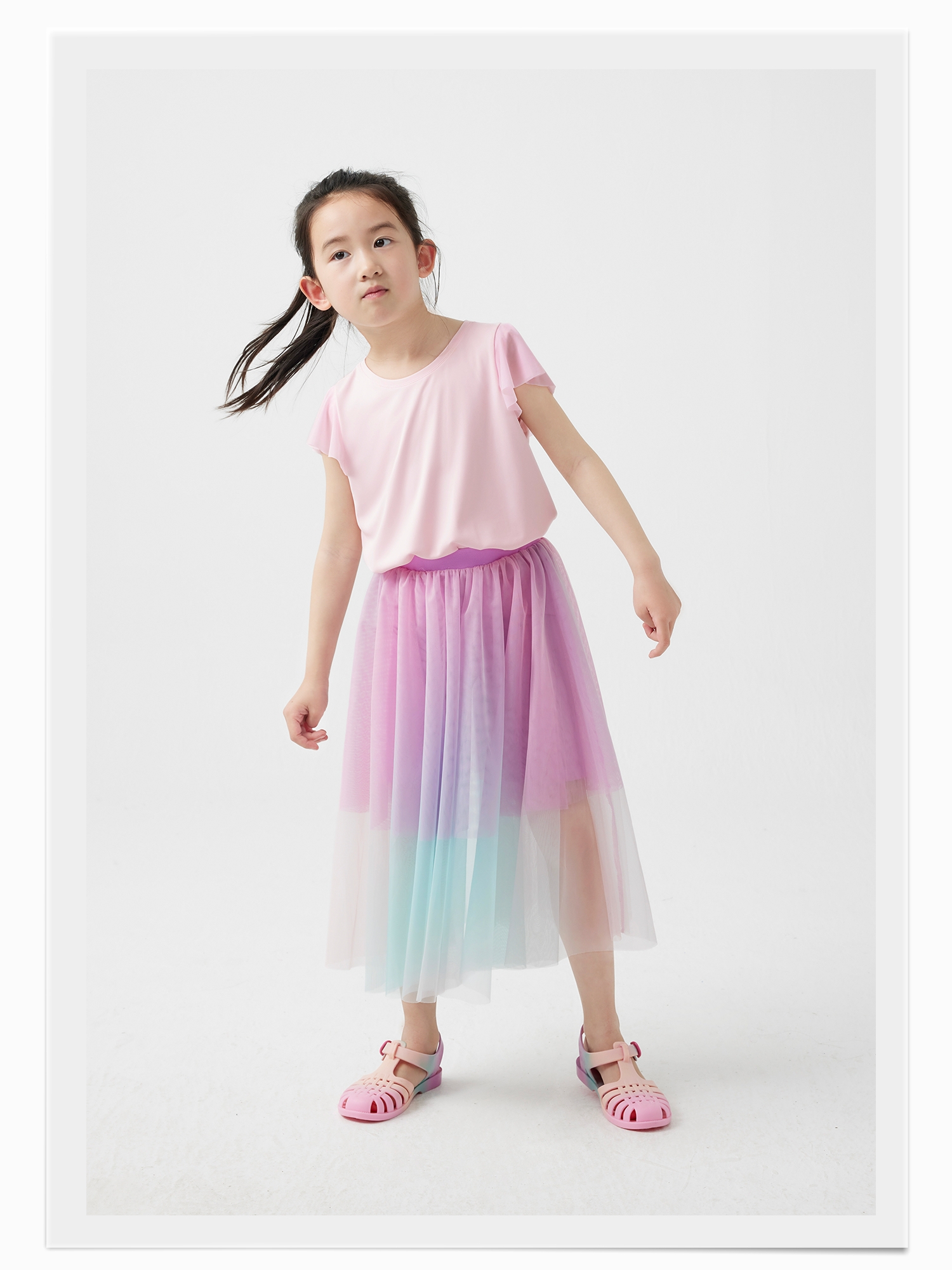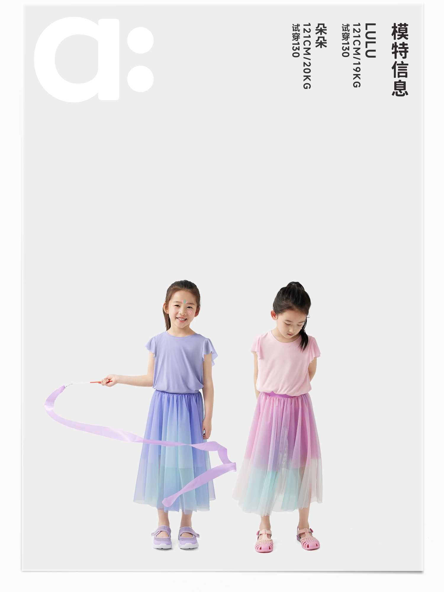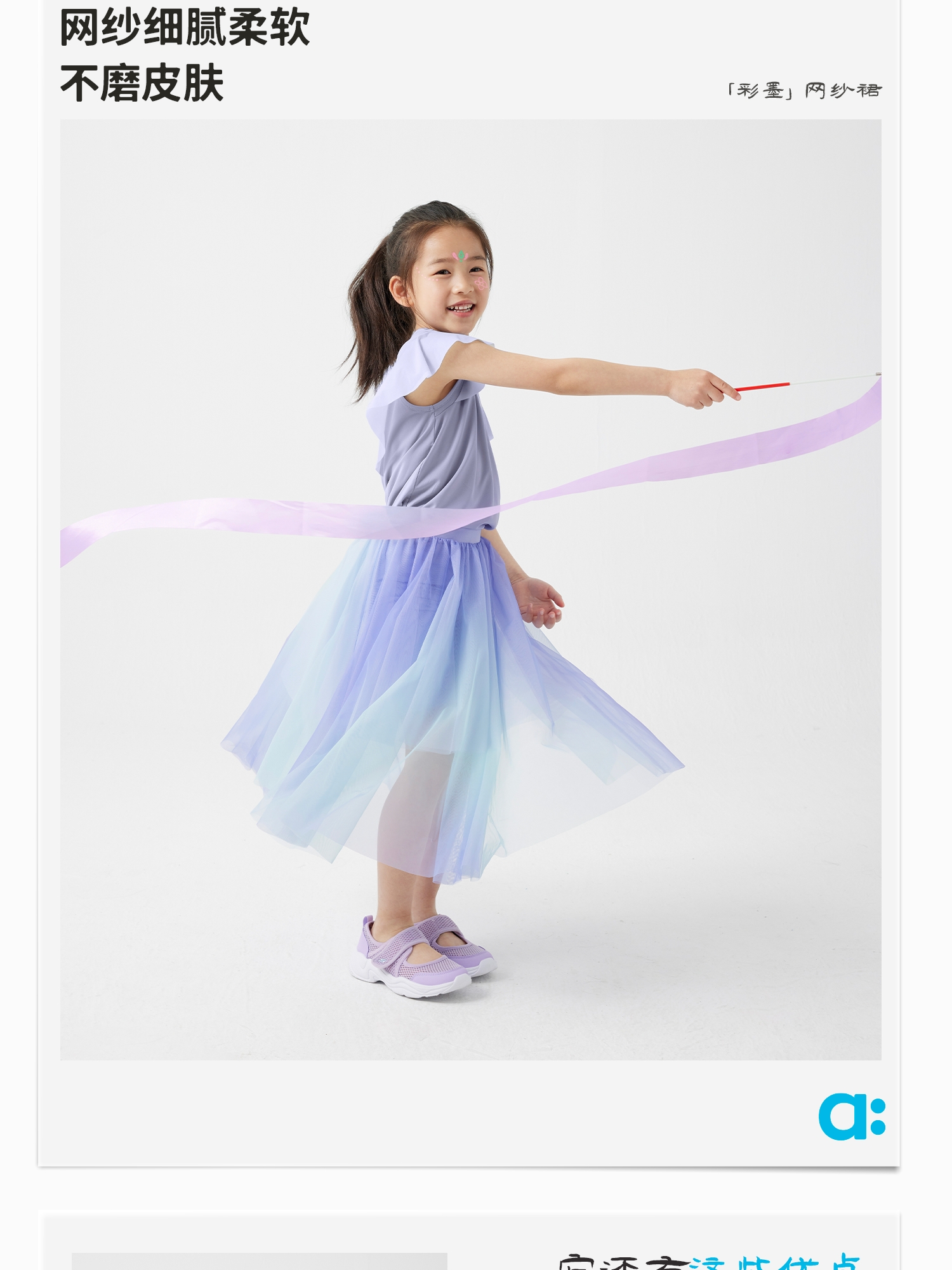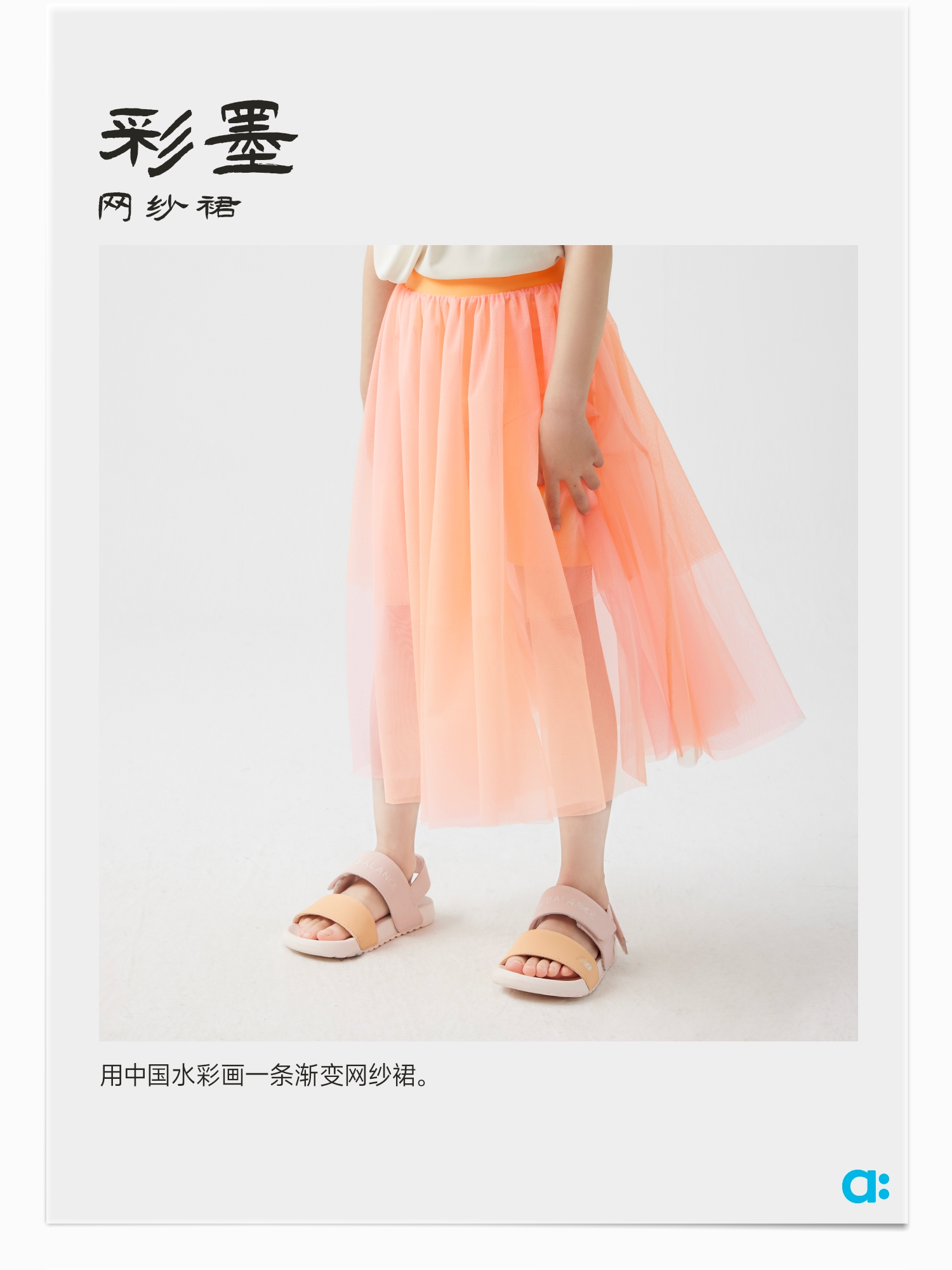 【夏Vol.3-闪亮铠甲】幼岚「薄荷皮」彩墨网纱裙凉感透气新中式儿童半身裙ZY